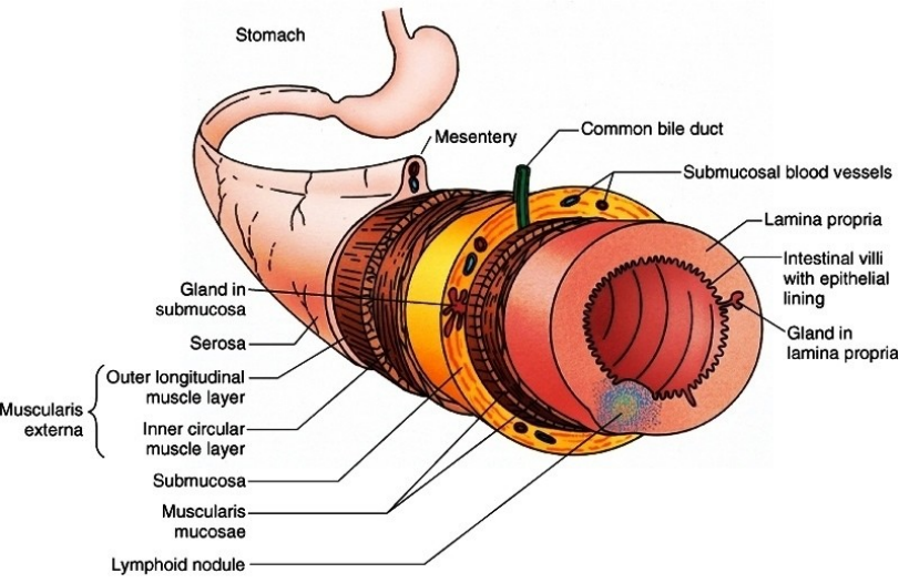 Sistema Digestório O sistema digestório tem 3 regiões : Cavidade oral, Tubo digestivo e glândulas anexas Funcionamento geral do tubo digestivo: Funções do sistema digestório: ingestão do alimento, mastigação do alimento, digestão do alimento, absorção e eliminar as substancias que não são absorvidas. Cavidade Oral: Tem lábios, vestíbulo (cavidade propriamente dita), dentes, língua, palato duro. Lábios constituem uma continuação do tegumento (Epitélio pavimentoso estratificado queratinizado _ é uma pele fina) na região interna é não queratinizado Músculos orbiculares (estriado esquelético) mucosa (epitélio + tecido conjuntivo frouxo) mucosa da boca Vestíbulo (entre o lábio e a arcada dentária) Formado por epitélio pavimentoso estratificado não queratinizado Vai haver queratinização na gengiva e na língua (porção dorsal) Dentes Formados por uma região externa (coroa) e externa (raiz) Dentro da gengiva osso alveolar dente está inserido nele (fibras colágenas do tipo I fazem essa ligação _ ligamento periodontal). O dente vai ter coroa: esmalte (por fora); dentina (por dentro) _ tem na região da coroa e raiz; polpa (no interior da dentina). Esmalte: região de tecido ósseo, assim como a dentina tecido ósseo compacto Na dentina polpa: região muito inervada e vascularizada formada por tecido conjuntivo frouxo. Na gengiva epitélio pavimentoso estratificado queratinizado associado a tecido conjuntivo. Língua Tem 2 superfícies: dorsal (queratinizada) e ventral (não queratinizada) O conjuntivo associado é inicialmente frouxo, a maior parte denso não modelado Na ventral é conjuntivo frouxo A musculatura da língua é estriada esquelética, tem muito tecido adiposo. Encontramos também glândulas serosas e mistas, é bastante vascularizada e inervada. Tem muito vaso, gânglio nervoso e feixe nervoso. Gânglio núcleo: estrutura encontrada em SNC neurônios juntos exercendo a mesma função. Isso no SNP é um gânglio No SNC existem tratos conjuntos de axônios exercendo a mesma função No SNP recebe o nome de nervo Cartilagem hialina na língua do equinos Papilas Linguais Na superfície dorsal possui projeções as papilas linguais Filiformes: bem finas, pontiagudas _ são de apreensão Fungiformes: sensorial. Corpúsculos gustativos associados _ superfície dorsal Circunvaladas: superfície dorsal porção anterior. Uma vala com projeção do epitélio Foliáceas ou folhadas: sensorial. Corpúsculos gustativos _ parte lateral da porção posterior. Aparece muito nos ruminantes. Nos felinos a papila filiforme tem função de limpeza, além da função de apreensão. A circunvalada tem glândulas serosas associadas (glândula de Von Ebner). A secreção é liquida, ela lava os resíduos que ficam acumulados nas valas. O conjuntivo associado a papila é cheio de glândula. O corpúsculo gustativo é formado por 3 células: basais (células tronco); células cilíndricas (dão sustentação) e células sensoriais (neurônios bipolares) convergem para uma região do corpúsculo pólos gustativo onde os dendritos vão ser sensibilizados Papilas de apreensão, mecânica cônica A superfície da língua dos carnívoros (principalmente dos felinos é muito vascularizada seve para fazer termorregulação por esses vasos o sangue que nos outro animais é feita pela pele Palato duro também é queratinizado. Tecido conjuntivo denso não modelado. É associado a osso e tem muitas glândulas mistas e mucosas. A língua o tempo todo leva o alimento para o palato duro, ele ajuda na formação do bolo alimentar. Palato mole: região da entrada. Epitélio pavimentoso estratificado não queratinizado. Tem glândulas mucosas. É só de passagem deglutição Tem conjuntivo frouxo e denso não modelado Tubo digestivo Descrição geral do Tubo digestivo: Mucosa: Epitélio + lamina própria (Tecido Conjuntivo Frouxo) + muscular da mucosa. É sempre formada por em epitélio sempre associado a um Tecido Conjuntivo Frouxo. Ao longo do tubo o epitélio da mucosa vai variar. A lamina própria é bastante vascularizada e tem muitas células de defesa, também tem muita glândula. Submucosa: Tecido Conjuntivo Denso Não Modelado (muito vascularizado com elementos de defesa). Glândula só no esôfago e duodeno (os outros órgãos não têm glândula); plexo submucoso de meissiner (estrutura nervosa do SNP) Muscular externa (A maioria é por músculo liso, mas alguns tem músculo estriado esquelético): plexo miontérico de Auebach (essa região é responsável pelo peristaltismo) Adventícia ou serosa: região externa do tubo · Adventícia: Quando está fora da cavidade peritoneal. Tecido conjuntivo que varia de frouxo a denso não modelado. · Serosa: Quando está dentro da cavidade. É conjuntivo associado ao mesotélio. O órgão tem a adventícia associada ao mesotélio (epitélio pavimentoso simples). Região/ cavidade interna do tubo: luz Faringe É a 1ª região A faringe vai ter mucosa e submucosa Mucosa: Epitélio pavimentoso estratificado (carnívoros em geral e ruminantes) e não queratinizado em outros animais Esôfago Tem mucosa: Epitélio estratificado pavimentoso não queratinizado (nos ruminantes é queratinizado) + Lamina própria (tecido conjuntivo frouxo) Muscular da mucosa de músculo liso(muito difícil de achar um corte que apareça o músculo liso) Importância do Epitélio ser pavimentoso estratificado: como passa o bolo alimentar tem que ser mais resistente. Submucosa: Tecido Conjuntivo Denso Não Modelado. Tem glândulas mistas (na maior parte da mucosa). São chamadas de glândulas esofagianas liberadas ma superfície da mucosa para proteger da passagem do alimento. Na região da muscular com plexo nervoso Divisão do esôfago em 3 partes: Superior Músculo estriado esquelético Ruminante e Canino é todo estriado esquelético Média Músculo Estriado Esquelético e Músculo liso Inferior Músculo Liso A parte do esôfago fora da cavidade peritone