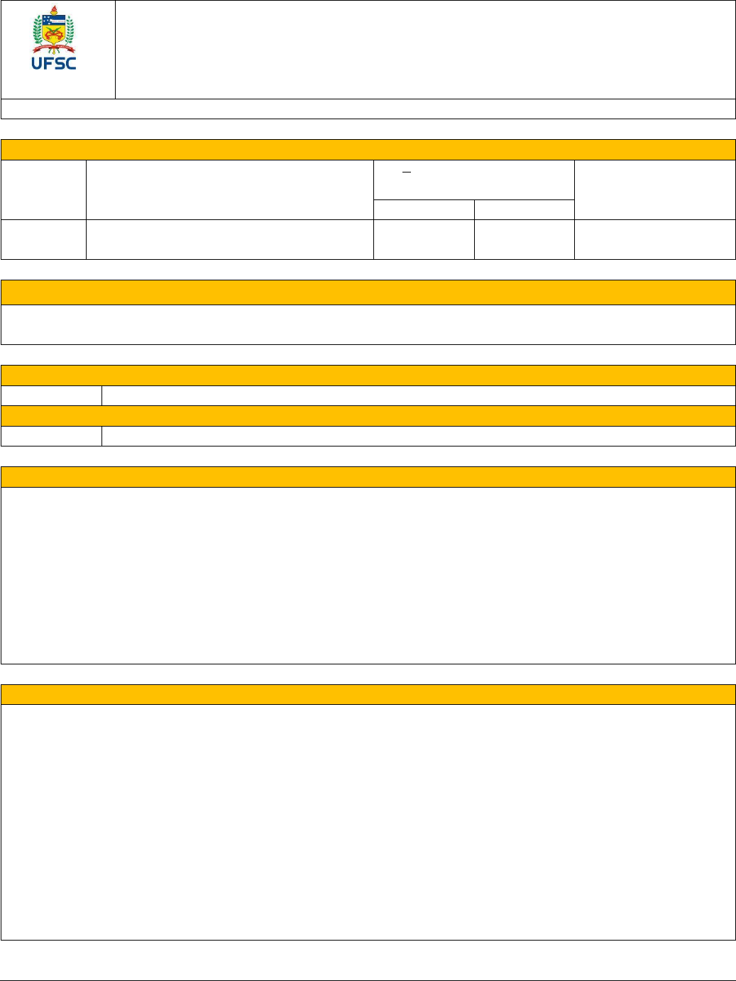 Plano de ensino adaptado, em caráter excepcional e transitório, para substituição de aulas presenciais por aulas em meios digitais, enquanto durar a pandemia do novo coronavírus – COVID-19, em atenção à Portaria MEC 344, de 16 de junho de 2020 e à Resolução 140/2020/CUn, de 24 de julho de 2020. UNIVERSIDADE FEDERAL DE SANTA CATARINA CENTRO DE CIÊNCIAS BIOLÓGICAS COORDENAÇÃO DO CURSO DE GRADUAÇÃO EM CIÊNCIAS BIOLÓGICAS Campus Trindade - CEP 88040-900 - Florianópolis SC Telefone: +55 (48) 3363 9243 PLANO DE ENSINO I. IDENTIFICAÇÃO DA DISCIPLINA: CÓDIGO NOME DA DISCIPLINA NO DE HORAS-AULA SEMANAIS TOTAL DE HORAS-AULA SEMESTRAIS TEÓRICAS PRÁTICAS BIO7240 Ciências Biológicas: formação e profissão 3 0 54 horas II. PROFESSOR(ES) MINISTRANTE(S) Profª Drª Maria Alice Neves (BOT/CCB) (maria.alice.neves@ufsc.br) Prof Dr Leandro Duso (MEN/CED) (leandro.duso@ufsc.br) III. PRÉ-REQUISITO(S) NÃO POSSUI VI. CURSO(S) PARA O(S) QUAL(IS) A DISCIPLINA É OFERECIDA (108) Ciências Biológicas – Licenciatura e Bacharelado. Disciplina Obrigatória V. EMENTA Acolhimento aos estudantes. Aspectos da estrutura acadêmica e administrativa da UFSC e do Centro de Ciências Biológicas (CCB). Instâncias formais de atuação dos acadêmicos no curso. Características e organização dos currículos dos cursos de bacharelado e de licenciatura. Regulamentação profissional do Biólogo. Áreas e linhas de pesquisa e extensão de interesse para o graduando. Campos de atuação profissional para o egresso dos cursos. Relações étnico-raciais, questões de gênero e educação ambiental na formação e na profissão. Inserção do profissional egresso no cenário sócio-cultural brasileiro. VI. OBJETIVOS ✓ Apresentar e discutir aspectos acadêmicos e organizacionais dos cursos de bacharelado e licenciatura e da UFSC. ✓ Apresentar e discutir áreas de pesquisa, ensino e extensão que oferecem possibilidades de atuação discente, bem como sobre os campos de futura atuação profissional. ✓ Discutir dificuldades, limites e possibilidades da atuação profissional do egresso do curso, no cenário sócio-cultural brasileiro contemporâneo. ✓ Apresentar e discutir panorama sobre a história e as perspectivas dos cursos, da profissão de biólogo e demais possibilidades formativas para um graduando em Ciências Biológicas, mediante visitas a departamentos, laboratórios, outros órgãos que oferecem possibilidades de atuação discente, além de palestras de profissionais egressos de cursos de Ciências Biológicas. ✓ Propiciar debates sobre linhas de pesquisa, extensão e palestras de profissionais egressos de cursos de Ciências Biológicas. Plano de ensino adaptado, em caráter excepcional e transitório, para substituição de aulas presenciais por aulas em meios digitais, enquanto durar a pandemia do novo coronavírus – COVID-19, em atenção à Portaria MEC 344, de 16 de junho de 2020 e à Resolução 140/2020/CUn, de 24 de julho de 2020. VII. CONTEÚDO PROGRAMÁTICO ✓ Estrutura e programas para discentes da Universidade Federal de Santa Catarina. ✓ Estrutura de graduação e pós-graduação do Centro de Ciências Biológicas. ✓ Estrutura dos cursos de licenciatura e bacharelado em Ciências Biológicas da UFSC. ✓ Estrutura e funcionamento de instâncias acadêmicas de atuação discente no CCB. ✓ Campos de formação e atuação profissional do egresso dos cursos. VIII. METODOLOGIA DE ENSINO / DESENVOLVIMENTO DO PROGRAMA As aulas teóricas serão na sua maioria assíncronas, com a utilização da plataforma Moodle e contando com recursos audiovisuais, como, filmes e palestras disponíveis nas redes sociais e youtube além de textos. As atividades serão discutidas nos fóruns de discussões. IX. PRÁTICA PEDAGÓGICA COMO COMPONENTE CURRICULAR (PPCC) Não há X AVALIAÇÃO ▪ Os alunos serão avaliados através de sua participação assíncrona nos fóruns e entrega das atividades escritas. ▪ A nota final da disciplina será auferida de acordo com os seguintes instrumentos e respectivos pesos: Produção e entrega de atividades escritas - participação individual nas discussões dos fóruns - atividade individual 1: Meu sonho de formação e profissão - atividade individual 2: Perspectivas de Formação e profissão - visita virtual aos laboratórios XI. LEGISLAÇÃO Não será permitido gravar, fotografar ou copiar as aulas disponibilizadas no Moodle. O uso não autorizado de material original retirado das aulas constitui contrafação – violação de direitos autorais – conforme a Lei nº 9.610/98 –Lei de Direitos Autorais. XII. BIBLIOGRAFIA BÁSICA Resolução Normativa de 21 de julho de 2020 Art.14, §2o A bibliografia principal das disciplinas deverá ser pensada a partir do acervo digital disponível na Biblioteca Universitária, como forma de garantir o acesso aos estudantes, ou, em caso de indisponibilidade naqueles meios, deverão os professores disponibilizar versões digitais dos materiais exigidos no momento de apresentação dos projetos de atividades aos departamentos e colegiados de curso. Cabe ainda lembrar que plágio é crime e nenhum material deve ser disponibilizado sem autorização. Associação Brasileira de Ensino de Biologia – www.sbenbio.org.br Centro Acadêmico de Biologia (CABio) – www.cabio.ufsc.br Conselho Federal de Biologia – www.cfbio.org.br Curso de Graduação em Ciências Biológicas da UFSC – www.cienciasbiologicas.ufsc.br Legislações da UFSC (links no site do Curso: www.cienciasbiologicas.ufsc.br). XIII. BIBLIOGRAFIA COMPLEMENTAR http://www.assespro-rj.org.br/publique/media/lei961098.pdf http://www.assespro-rj.org.br/publique/media/lei961098.pdf http://www.assespro-rj.org.br/publique/media/lei961098.pdf http://www.assespro-rj.org.br/publique/media/lei961098.pdf http://www.cabio.ufsc.br/ http://www.cfbio.org.br/ http://www.cienciasbiologicas.ufsc.br/ Plano de ensino adaptado, em caráter excepcional e tr