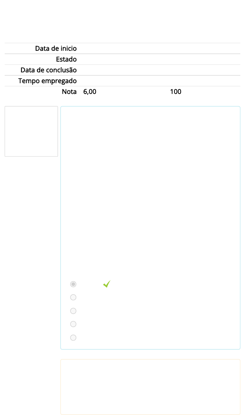 Questão 1 Correto Atingiu 0,60 de 0,60 Planejamento Estratégico e Participação v.3 ► AVALIAÇÃO ► PROVA Data de inicio quarta, 31 Mai 2023, 22:10 Estado Finalizada Data de conclusão quarta, 31 Mai 2023, 22:36 Tempo empregado 26 minutos 22 segundos Nota 6,00 de um máximo de 6,00(100%) “Os indicadores de desempenho são essenciais para o planejamento e administração dos processos da organização, permitindo acompanhar de maneira mais ágil e eficiente as metas e objetivos da empresa. Ela se torna um apoio fundamental para a tomada de decisões estratégicas e importantes, como a destinação de recursos para determinados setores ou corte de gastos, por exemplo.” Fonte: Sebrae (2019). Indicadores de desempenho: por que adotar na sua empresa? Disponível em: < https://atendimento.sebrae- sc.com.br/blog/indicadores-de-desempenho/>. Ao elaborar seu planejamento estratégico, uma organização analisou as seguintes perspectivas: FINANÇAS, MERCADO, PROCESSOS INTERNOS e APRENDIZADO E CRESCIMENTO. Essas perspectivas fazem parte do: Escolha uma: a. BSC. b. PDCA. c. SWOT. d. VRIO. e. SMART. Sua resposta está correta. Finanças, mercado, processos internos e aprendizado e crescimento são pilares do BSC. A resposta correta é: BSC.. https://moodle.universoead.com.br/course/view.php?id=908 https://moodle.universoead.com.br/mod/quiz/view.php?id=22375 http://blog.sebrae-sc.com.br/como-criar-metas-desafiadoras-e-medir-os-resultados-reais/ Questão 2 Correto Atingiu 0,60 de 0,60 Utilizado para definir estratégias, o conceito S.M.A.R.T, da sigla que sintetiza as palavras: specific, measurable, achievable, relevant e time- bound, em português, se refere a específico, mensurável, alcançável, relevante e temporal. Fonte: Autor do livro (2021). De acordo com essa definição, qual dos objetivos melhor se encaixa com o conceito de objetivo SMART? Escolha uma: a. Ser a maior empresa no nosso segmento de atuação na cidade de São Paulo/SP até dezembro de 2022. b. Atingir o faturamento de R$ 500.000,00 (mensal) das vendas através da plataforma de e-commerce até janeiro de 2021. c. Ser reconhecida como a melhor marca do Brasil até abril de 2020. d. Ser a maior empresa do mundo. e. Aumentar a satisfação do cliente conforme o índice de NPS até agosto de 2020. Sua resposta está correta. A alternativa que mais se aproxima do conceito Smart é atingir o faturamento de R$ 500.000,00 (mensal) das vendas através da plataforma de e- commerce até janeiro de 2021, neste exemplo a empresa cumpre o atributo de específico, mensurável e temporal.. A resposta correta é: Atingir o faturamento de R$ 500.000,00 (mensal) das vendas através da plataforma de e-commerce até janeiro de 2021.. Questão 3 Correto Atingiu 0,60 de 0,60 “O planejamento estratégico é o pensamento sistêmico estruturado, organizado para que a empresa alcance seus objetivos. É a ferramenta física para que o empresário possa colocar no papel ou no computador as estratégias, monitorando e avaliando constantemente os resultados. O planejamento é o detalhamento de como a empresa vai atuar para alcançar os objetivos gerais e funcionais, cumprindo sua missão e realizando a visão de futuro.” Fonte: Sebrae (2016). Como elaborar e implementar estratégias empresariais. Disponível em: < https://www.sebrae.com.br/sites/PortalSebrae/artigos/como- elaborar-e-implementar-estrategias- empresariais,b99c634889357510VgnVCM1000004c00210aRCRD>. Sendo assim, o planejamento estratégico serve para: Escolha uma: a. Multinacionais ou empresas maiores com capital humano qualificado. b. Startup ou empresas iniciando uma atividade. c. Para empreendedores com pouca experiência que precisem de um instrumento que oriente a gestão. d. Para pequenas empresas. e. Todas as alternativas estão corretas. Sua resposta está correta. Como vimos em nossas aulas, o planejamento é aplicável a qualquer tipo de organização. A resposta correta é: Todas as alternativas estão corretas.. Questão 4 Correto Atingiu 0,60 de 0,60 Questão 5 Correto Atingiu 0,60 de 0,60 Existem vários métodos que auxiliam no processo de criação de metas. Um dos métodos divide as metas em quatro categorias: cliente, finanças, processos internos e aprendizado. Fonte: Autor do livro (2021). Assinale a metodologia que divide as metas nas quatro categorias descritas: Escolha uma: a. PDCA. b. ORK. c. KPI. d. SMART. e. BSC. Sua resposta está correta. Feedback: BSC dividem as metas em quatro categorias: cliente, finanças, processos internos e aprendizado, e tem como objetivo visualizar de maneira balanceada as métricas de negócio de uma organização, agrupadas em objetivos estratégicos e que tenham uma relação de causa e efeito entre elas. A resposta correta é: BSC.. O planejamento estratégico dever ser feito e ter o envolvimento: Escolha uma: a. Apenas da alta administração. b. Do dono da empresa ou diretores. c. Dos gerentes. d. De todas as lideranças. e. De todos na organização. Sua resposta está correta. O engajamento de todos pode potencializar a efetividade do planejamento estratégico. Portanto, todos na organização devem ser envolvidos. A resposta correta é: De todos na organização.. Questão 6 Correto Atingiu 0,60 de 0,60 O Balanced Scorecard (BSC) é uma metodologia utilizada pelas empresas para a implementação de seu planejamento estratégico e possui como uma de suas principais características: Escolha uma: a. Converter em ações para realização do planejamento, estipulando metas para a empresa. b. Definir a missão a empresa. c. Conhecer os valores de uma organização. d. O conjunto de metas do BSC leva em consideração apenas a área financeira da organização. e. O BSC é formado por objetivos e resultados- chave. Sua resposta está correta. BSC dividem as metas em quatro categorias: cliente, finanças, processos internos e aprendizado, e tem como objetivo visualizar de maneira balanceada as métricas de negócio de uma o