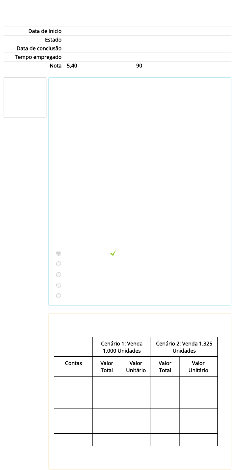Gestão de Custos V.2 ► AVALIAÇÃO ► PROVA