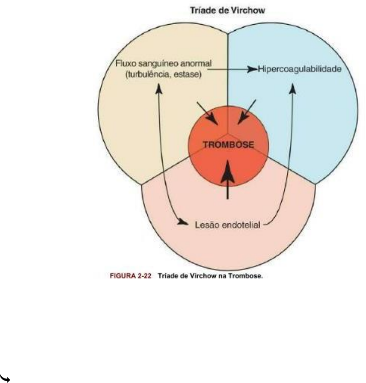 Distúrbios Hemodinâmicos (aula do dia 13/03/23) Trombose É o termo usado para definir um processo patológico que há formação de um trombo em um vaso sanguíneo ou do coração, no indivíduo vivo. já o trombo é a formação de uma massa sólida de sangue coagulado excessivo ou inadequado no endotélio de um vaso. Principais fatores envolvidos na trombose são: lesões do endotélio e dos vasos sanguíneos, atividade excessiva dos fatores de coagulação e das plaquetas (hipercoagulabilidade), alterações hemodinâmicas e dinâmicas do fluxo sanguíneo estase ou turbulência e a Tríade de Virchow; Trombo X Coágulo: Trombo: Seco, friável, inelástico -> Bem aderido à parede vascular ou cardíaca deixa uma superfície rugosa e sem brilho Coágulo: Gelatinoso, elástico, liso, brilhante -> Está sempre solto do sistema cardiovascular. Classificação dos Trombos: Localização: • Arteríolas: Geralmente brancos, oclusivos ou semi-ocludentes, secos, friáveis e inelásticos. • Capilares: Geralmente hialinos, aspecto róseo homogêneo ou granuloso. • Venosos: Geralmente vermelhos e oclusivos, de aspecto úmido e gelatinoso, fortemente aderido ao endotélio. • Cardíacos: Murais ou valvulares, podendo ser brancos ou vermelhos. Estrutura: • Vermelho: Hemácias • Branco: Plaquetas e fibrinas • Hialino: Fibrina • Misto: Hemácias, plaquetas e fibrinas. Trombose é a formação de coágulo sanguíneo (trombo) dentro de vasos intactos. Tanto a hemostasia como a trombose envolvem três elementos: parede vascular, plaquetas e cascata de coagulação. fator III ou tromboplastina), uma glicoproteína pró-coagulante envolta por membrana sintetizada pelas células endoteliais. O fator tecidual exposto, agindo em conjunto com o fator VII, é o principal gatilho in vivo da cascata de coagulação, e sua ativação eventualmente culmina na ativação da trombina, que tem vários papéis na regulação da Coagulação. três principais anormalidades que levam à formação de trombo (chamada de tríade de Virchow): (1) lesão endotelial, (2) estase ou fluxo sanguíneo turbulento e (3) hipercoagulabilidade do sangue A lesão endotelial é uma causa importante de trombose, particularmente no coração e nas artérias, onde as altas taxas de fluxo poderiam, por outro lado, prevenir a coagulação impedindo a adesão plaquetária ou diluindo os fatores de coagulação Fluxo Sanguíneo Anormal A turbulência contribui para trombose arterial e cardíaca por causar lesão ou disfunção endotelial, e também por formar contracorrentes e bolsas locais de estase. A estase é um fator importante no desenvolvimento de trombos venosos. Sob condições normais de fluxo sanguíneo laminar normal, plaquetas (e outras células sanguíneas) são encontradas principalmente no centro do lúmen do vaso, separadas do endotélio por uma camada plasmática em movimento lento. Em contrapartida, estase e fluxo sanguíneo turbulento (caótico) têm os seguintes efeitos deletérios: • Ambos promovem a ativação das células endoteliais e aumentam a atividade pró- coagulante, em parte por meio de alterações induzidas pelo fluxo na expressão genética endotelial. • A estase permite que plaquetas e leucócitos entrem em contato com o endotélio quando o fluxo é lento. A estase também torna lenta a eliminação dos fatores de coagulação ativados e impede o influxo de inibidores de fator de coagulação. Hipercoagulabilidade É infrequente a contribuição da hipercoagulabilidade para a trombose arterial ou intracardíaca, mas é um importante fator de risco subjacente para trombose venosa. É definida livremente como qualquer alteração das vias de coagulação que predisponha as pessoas afetadas à trombose, e pode ser dividida em desordens primárias (genéticas) e secundárias (adquiridas). A hipercoagulabilidade primária (herdada) com mais frequência é causada por mutações no fator V e nos genes da protrombina: • Aproximadamente 2-15% dos brancos são portadores de uma mutação específica do fator V (chamada mutação de Leiden, segundo a cidade holandesa onde foi descrita pela primeira vez). A mutação altera um resíduo de aminoácido no fator V e o torna resistente à proteína C. Assim é perdido um importante mecanismo antitrombótico. Os heterozigotos são portadores de um risco cinco vezes maior de trombose venosa, tendo os homozigotos um risco 50 vezes maior. • A substituição de um único nucleotídeo (G para A) na região não traduzida 39 do gene da protrombina é um alelo bastante comum (encontrado em 1-2% da população geral). Essa variante resulta em aumento da transcrição de protrombina e está associada a um risco quase três vezes maior de tromboses venosas. • Os estados hipercoaguláveis primários menos comuns incluem deficiências herdadas de anticoagulantes, como antitrombina III, proteína C ou proteína S; os pacientes afetados tipicamente apresentam trombose venosa e tromboembolismo recorrente na adolescência ou no início da vida adulta Trombo X Coágulo: Classificação dos Trombos: Localização: Estrutura: