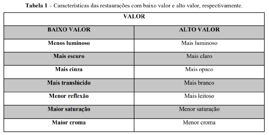 A cor possui três dimensões que correspondem à matiz, croma e valor. A matiz corresponde ao nome real da cor, pode ser interpretada como a cor base do dente ou tonalidade. Na escala Vita Classic), a matiz é representada pelas letras A, B, C e D. O matiz A tem dominância nas cores vermelho-marrom. O matiz B nas cores laranja-amarelo. O matiz C nas cores verde-cinza. O matiz D tem dominância rosa-cinza. O croma é definido como a saturação ou intensidade da matiz. Varia com a quantidade de pigmento incorporado numa matiz e determina a intensidade da cor, isto é, se forte ou fraca. O croma e o valor estão inversamente proporcionais visto que quando o croma é aumentado, o valor é diminuído. Na escala Vita Classic números mais altos na guia de cores representam um aumento de croma, assim as letras representam o matiz e os números o croma. É importante enfatizar que o matiz e o croma estão presentes na dentina, pois são propriedades dessa estrutura O valor é determinado como a luminosidade do objeto. A luminosidade de qualquer objeto é uma consequência direta da quantidade de energia de luz que o objeto reflete ou transmite. O valor pode ser descrito como uma escala de cinza, de branco a preto. Objetos brilhantes possuem alto valor, e por isso têm quantidades mais baixas de cor cinza e os objetos de baixo valor, mais escuros, têm quantidades maiores de cinza. Dentre todas as dimensões, na odontologia, o valor é a dimensão mais importante para a seleção cromática do dente, já que é essa a qualidade que define o claro e o escuro, e, segundo algumas metodologias, deve ser a primeira dimensão a ser determinada visto que as discrepâncias de valor são mais facilmente identificáveis esteticamente do que as discrepâncias de croma e matiz. A translucidez pode ser definida pela quantidade de luz que é transmitida através de determinado material, é caracterizada por ser um gradiente entre a completa transparência e a opacificação, em que se tem a reflexão completa da luz. Varia de indivíduo para indivíduo e possui variados graus de MATIZ: Nome das cores. CROMA: Intensidade dos pigmentos. VALOR: Quantidade de branco. MATERIAIS APLICADOS quarta-feira, 7 de dezembro de 2022 12:26 Página 1 de Nova Seção 1 se tem a reflexão completa da luz. Varia de indivíduo para indivíduo e possui variados graus de translucidez. Apesar da dentina ser mais opaca que o esmalte, sua translucidez aumenta com a idade. Nos dentes, o terço incisal é a região mais translúcida, pois a espessura de dentina é menor que a do terço médio e cervical. Dentes mais jovens tendem a apresentar pouca translucidez, por possuírem maior quantidade de dentina, já dentes mais velhos são mais translúcidos pelo desgaste natural do dente. A maior parte das resinas compostas que são utilizadas para a reconstrução da dentina, possuem características de baixa translucidez, enquanto que as usadas para o esmalte são altamente translúcidas. A fluorescência é uma propriedade da dentina que confere aos dentes naturais o aspecto de vitalidade e luminosidade. Página 2 de Nova Seção 1
