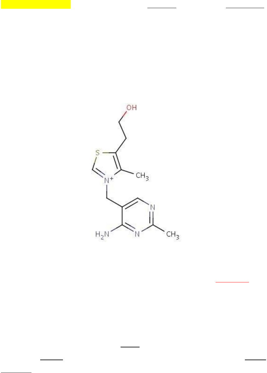 Vitamina B1 (tiamina) faz parte do grupo de vitaminas que formam o complexo B. Anteriormente ela era categorizada como uma vitamina a parte e era chamada de vitamina F, no entanto posteriormente devido suas características químicas e funções biológicas, foi agrupada no conjunto vitamínico do complexo B. Estruturalmente é composta por um grupamento tiazol e uma pirimidina formando a vitamina Tiamina. Certos microrganismos são capazes de sintetiza-la naturalmente, como algumas bactérias, protozoários e fungos. Algumas plantas também têm maquinaria necessária para sua biossíntese. Mólecula de vitamina B1 (tiamina) A absorção da tiamina acontece no intestino delgado, onde ela geralmente é liberada conjugada a grupamentos fosfato (Tiamina-difosfato). Após ser hidrolisada pelas enzimas fosfatases, a tiamina livre é capaz de se ligar a receptores específicos e ser internalizada ativamente pelas células entéricas. Quando em concentração muito alta é possível que elas também entrem passivamente, no entanto em quantidades diárias acima de 5 mg, a eficiência de absorção cai substancialmente. A maior parte a tiamina é estocada no fígado, mas também há estoques nos músculos, ossos, rins e cérebro. A forma livre da tiamina também pode ser encontrada no plasma sanguíneo. As fontes de vitamina B1 são: grãos integrais como arroz, cereal, trigo; carne de porco, fígado, peixe, ovo, queijo; couve-flor, espinafre e beterraba. http://www.infoescola.com/biologia/vitaminas/ http://www.infoescola.com/bioquimica/vitaminas-do-complexo-b/ http://www.infoescola.com/reino-monera/bacterias/ http://www.infoescola.com/reino-protista/protozoarios/ http://www.infoescola.com/biologia/reino-fungi/ http://www.infoescola.com/anatomia-humana/intestino-delgado/ http://www.infoescola.com/reacoes-quimicas/hidrolise/ http://www.infoescola.com/anatomia-humana/figado/ http://www.infoescola.com/anatomia-humana/cerebro/ http://www.infoescola.com/sangue/plasma-sanguineo/ http://www.infoescola.com/sangue/plasma-sanguineo/