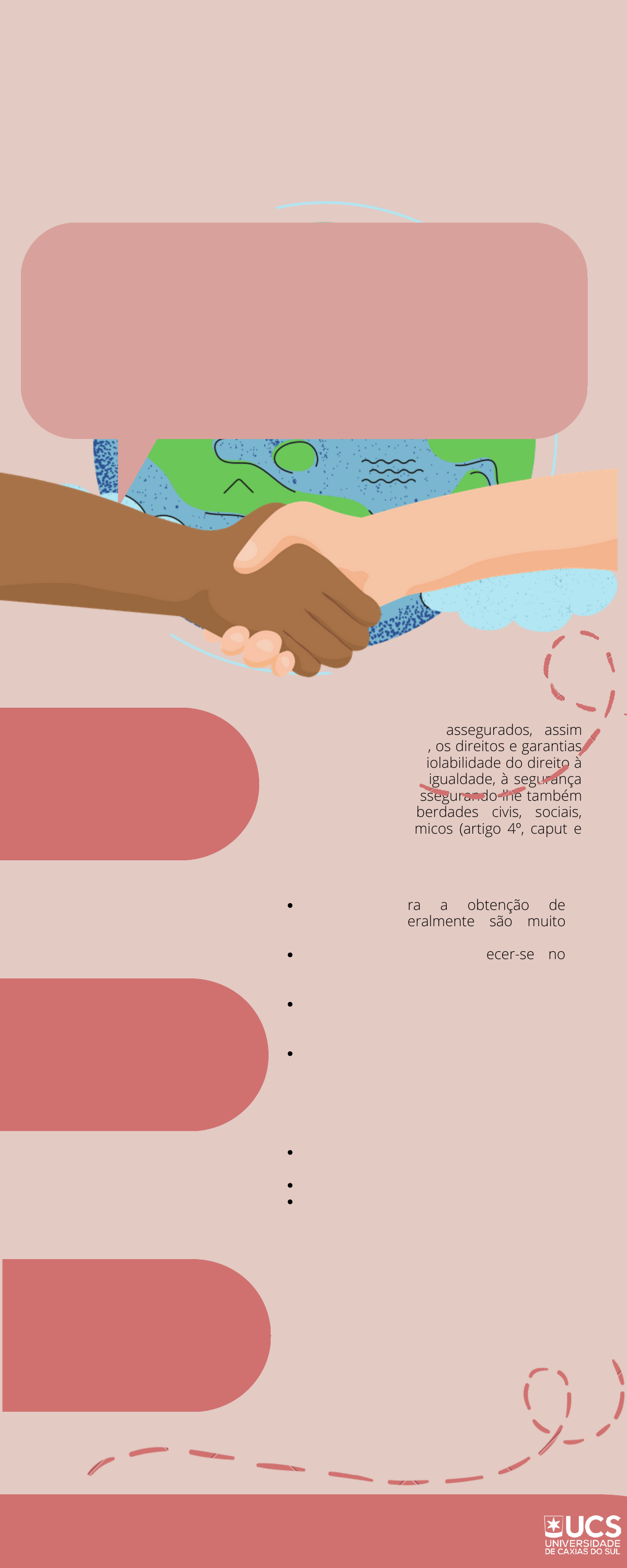 REDE DE APOIO A IMIGRANTES É importante que existam locais capacitados que ajudem os migrantes e refugiados para iniciar uma vida nova em segurança, com apoio principalmente para poderem ter empregos dignos e acesso à moradia e saúde básica, algo que geralmente é muito difícil ter nos países vizinhos, uma vez que, quando estes chegam à serra gaúcha se encontram em extrema vulnerabilidade já pelo contexto que estavam inseridos no seu próprio país, vivendo com poucas condições. Aos migrantes são assegurados, assim como aos nacionais, os direitos e garantias fundamentais: a inviolabilidade do direito à vida, à liberdade, à igualdade, à segurança e à propriedade, assegurando-lhe também os direitos e liberdades civis, sociais, culturais e econômicos (artigo 4º, caput e inciso I, CF). As taxas para a obtenção de documentos geralmente são muito altas; Dificuldade para restabelecer-se no país, vivendo como apátridas e, às vezes, na clandestinidade; Adaptação quanto à língua falada e a cultura da cidade, distinta daquela do seu país natal; Problemas para acessar e conseguir auxílio dos serviços públicos, aos quais estão garantidos pela Constituição Federal e pela Lei n.º 13.445/2017, acerca dos serviços básicos como saúde e educação; Preconceito e discriminação, aumentam a dificuldade de inserção na sociedade; Precariedade das condições laborais; Não conhecimento dos seus direitos como imigrantes. QUAIS SÃO OS DIREITOS DOS IMIGRANTES? DIFICULDADES ENFRENTADAS PELOS IMIGRANTES CAXIAS DO SUL RS ALUNAS: AMANDA EILLEN QUOOS RODRIGUES E LETÍCIA DA SILVA ATIVIDADE DE EXTENSÃO DA UNIVERSIDADE DE CAXIAS DO SUL DISCIPLINA: DIREITO INTERNACIONAL PROFESSOR: FÁBIO SCOPEL VANIN QUAL A FUNÇÃO DA DEFENSORIA PÚBLICA NA PROTEÇÃO AOS IMIGRANTES? Atua coletivamente na defesa das pessoas migrantes através da assistência jurídica integral e gratuita a migrantes, por meio da promoção dos direitos de migrantes e refugiados, articulação com órgãos governamentais e a sociedade civil em prol dos direitos destas pessoas, e expedição de documentos, auxílio para encontrar moradia e conseguir documentos, bem como ajuda para encontrar emprego. 5. CAM - Centro de Atendimento ao Migrante Caxias do Sul: • Serviço: Orientação sobre assuntos diversos relacionados à migração. • Endereço: Rua Professor Marcos Martini, n.º 1600 - Bairro Marechal Floriano • Rede social: facebook.com/Centro-de-Atendimento- aoMigrante-Caxias-do-Sul-CAM-967768573277446/ • E-mail: aesc.cam@terra.com.br • Telefone: (54) 3027-3360. • Atendimento: Segunda, terça, quinta e sexta-feira, das 08h às 11h30min e das 13h30min às 17h. 3. Defensoria Pública do Estado do Rio Grande do Sul: • Serviço: Assessoria jurídica para pessoas hipossuficientes. • Endereço: Av. Independência, 2393, bairro Panazzolo. • Telefone: (54) 3228-2298. • Atendimento: de segunda à quinta-feira, das 9h às 12h e das 13h às 18h. 1. Associação dos Imigrantes Haitianos de Caxias do Sul: • Rede social: facebook.com/Associação- Haitianos-Caxias-DoSul • E-mail: haitianoscaxias@gmail.com • Encontros: no último domingo de cada mês, das 14h às 16h, em local a ser divulgado na rede social. 4. Delegacia da Polícia Federal: • Serviço: Documentação migratória (solicitação de refúgio, emissão e renovação da cédula de identidade de estrangeiro, protocolo de pedido de naturalização, etc). • Endereço: Av. Júlio de Castilhos, n.º 150, Bairro Nossa Senhora de Lourdes. • E-mail: dpf.cm.cxs.srrs@dpf.gov.br • Telefones: (54) 3213-9000 e (54) 3213- 9090. • Atendimento: Segunda à sexta-feira, das 10h às 15h. 2. Gerência Regional do Trabalho e Emprego: • Serviço: emissão de carteira de trabalho e denúncia de irregularidades trabalhistas. • Endereço: Rua Bento Gonçalves, n.º 2621, Bairro São Pelegrino. • Telefones: (54) 3221-3116 e (54) 3221- 3306 • Atendimento: Segunda a sexta-feira, das 08h30min às 16h. Além de todo suporte com ações e atendimentos, o CAM, disponibiliza doações de roupas e cestas básicas realizadas no local e também projetos que visam a inclusão social dos imigrantes, como por exemplo oficinas voltadas ao desenvolvimento profissional e ao trabalho. Atualmente o CAM também se tornou referência no quesito de regularização das documentações dos imigrantes e conjuntamente com a Polícia Federal, tentam agilizar esse processo. Acima de tudo, o CAM busca a interação dos imigrantes para com a sociedade e a cultura da cidade de Caxias do Sul, com o intuito de proporciona-lhes uma estádia leve, acesso à informação e a cultura na qual estão inseridos na atualidade, com a finalidade de ajudar a manter seus direitos intactos e protegido com a força da Lei, amenizando assim dizendo, qualquer tipo de preconceito e discriminação. ORGANIZAÇÕES DE APOIO AOS IMIGRANTES NA CIDADE DE CAXIAS DO SUL: ALUNAS: AMANDA EILLEN QUOOS RODRIGUES E LETÍCIA DA SILVA ATIVIDADE DE EXTENSÃO DA UNIVERSIDADE DE CAXIAS DO SUL DISCIPLINA: DIREITO INTERNACIONAL PROFESSOR: FÁBIO SCOPEL VANIN Foto: Reprodução/RBS TV Foto: Thiago Oliveira – Ascom DPE/RS Foto: Emmanuel Denauí / Brun Filmes Foto: Suzana Firmiano