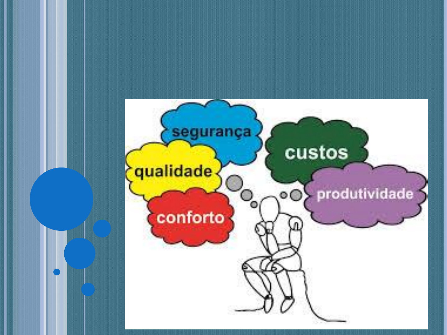 ERGONOMIA O QUE É ERGONOMIA ? Etimologia: ERGOS = TRABALHO NOMOS = LEIS, REGRAS O trabalho tem todo um pano de fundo de sofrimento: * Em latim: trabalho = tripalium trabalhar= tripaliare (torturar com o tripalium) * Na bíblia: “ganharás o pão com o suor de teu rosto” "Conjunto de conhecimentos científicos relativos ao homem e necessários para conceber as ferramentas, as máquinas e os dispositivos que podem ser utilizados com o máximo de conforto, segurança e eficiência” Alain Wisner ERGONOMIA ERGONOMIA Definição: é o estudo do relacionamento do homem e o seu trabalho, equipamento e ambiente. Particularmente a aplicação dos conhecimentos da anatomia, fisiologia e psicologia na solução dos problemas surgidos desse relacionamento. (Ergonomics Research Society) Inglaterra “A ergonomia é o estudo da adaptação do trabalho às características fisiológicas e psicológicas do ser humano”. Associação Brasileira de Ergonomia (ABERGO) OBJETIVO DA ERGONOMIA Adaptar o trabalho ao homem (não o contrário) Estuda o complexo formado pelo operador humano e seu trabalho ORIGEM E EVOLUÇÃO DA ERGONOMIA o O termo ergonomia foi utilizado pela primeira vez, em 1857, pelo polonês W. Jastrzebowski, que publicou um artigo intitulado “Ensaio de ergonomia ou ciência do trabalho baseada nas leis objetivas da ciência da natureza”. o Quase cem anos mais tarde, em 1949, um engenheiro inglês chamado Murrel criou na Inglaterra a primeira sociedade nacional de ergonomia, a “Ergonomic Research Society”. o Posteriormente, a ergonomia desenvolveu-se em numerosos países industrializados, como a França, Estados Unidos, Alemanha, Japão e países escandinavos. Em 1959 foi fundada a “International Ergonomics Association”. o Em 31 de agosto de 1983 foi criada a “Associação Brasileira de Ergonomia”. Em 1989 foi implantado o primeiro mestrado do país no PPGEP/UFSC. DESENVOLVIMENTO ATUAL DA ERGONOMIA Caracterizado por quatro níveis de exigências: 1. Exigências tecnológicas: técnicas de produção; 2. Exigências econômicas: qualidade e custo de produção; 3. Exigências sociais: melhoria das condições de trabalho; 4. Exigências organizacionais: gestão participativa; POR QUE USAR A ERGONOMIA ? Novas tecnologias, competitividade de mercado, produtividade x qualidade Necessidade de melhoria das práticas das tarefas com: ✓ Eficácia ✓ Segurança ✓ Qualidade ABORDAGEM DE QUESTÕES RELATIVAS AO TRABALHO: ✓ Alto índice de acidentes de trabalho; ✓ Problemas associados a doenças do trabalho; ✓ Redução da produtividade no local de trabalho, alto índice de absenteísmo, retrabalhos, diminuição de motivação, etc; ✓ Qualidade de Vida no Trabalho (QVT), proporcionando mais do que um posto de trabalho melhor, mas também uma vida melhor no trabalho. A ergonomia se esforça para conhecer o comportamento do operador Diferença entre: trabalho prescrito = TAREFA trabalho real = ATIVIDADE Atividade é a expressão do “funcionamento do homem” na execução de sua tarefa. ABORDAGEM ERGONÔMICA Considera as capacidades humanas e seus limites: ✓ Capacidade física; ✓ Força muscular; ✓ Dimensões corporais; ✓ Possibilidades de interpretação das informações pelo aparelho sensorial (visão e audição); ✓ Capacidade de tratamento das informações em termos de rapidez e de complexidade; Analisa as exigências das tarefas e os diferentes fatores que influenciam as relações Homem x Trabalho Características materiais do trabalho: (apresentação espacial e temporal) ✓Peso dos instrumentos; ✓Forças a exercer; ✓Disposição dos comandos; ✓Dimensões dos diferentes elementos constituintes do posto e do sistema; ABORDAGEM ERGONÔMICA Existem vários tipos de sinais de alarme ou indicadores para um estudo ergonômico: Fisiológicos ✓ Aceleração dos batimentos cardíacos; ✓ Quantidade de ar respirado; ✓ Atividade elétrica cerebral; ✓ Temperatura corporal; SINAIS DE ALARME SINAIS DE ALARME TRABALHO: ✓Repetitividade de erros cometidos em uma tarefa; ✓Baixas na produtividade e na qualidade da performance do operador; ✓Aumento do índice de retrabalhos; ✓Incidentes de trabalho; ✓Acidentes de trabalho (importância vital); Subjetivos: ➢ Queixas eventuais dos trabalhadores (contraste entre a percepção objetiva e a subjetiva) ➢ Mudanças de comportamento (ansiedade e irritação) ANÁLISE DE CUSTO/BENEFÍCIO É a forma predominante, entre outras existentes, para justificar os gastos com mudanças propostas pela ergonomia. diminuição de custos Benefícios melhoria de desempenho Limitada quando necessita quantificar custos e benefícios intangíveis REDUÇÃO DE CUSTOS ➢ Diminuir custos com horas extras (trabalhadores substitutos); ➢ Custos de seguros e/ou custos de compensação relacionados a acidentes ou lesões; ➢ Melhorar a qualidade e a quantidade da produção, ➢ Prover treinamento adicional; BENEFÍCIOS ➢ Ganhos de fácil mensuração: • Aumentos de produtividade e de qualidade; • Redução dos desperdícios; • Economias de energia, mão-de-obra, manutenção, etc ➢ Ganhos de difícil mensuração: • Redução do absenteísmo devido a acidentes e doenças ocupacionais; BENEFÍCIOS INTANGÍVEIS ✓ Satisfação do trabalhador; ✓ Conforto; ✓ Redução do turnover; ✓ Aumento da motivação dos trabalhadores; • No lar • No transporte • No lazer • Na escola Onde aplicamos a Ergonomia ? • No trabalho Você já pensou ? Certas atividades rotineiras, podem causar problemas, tanto para homens como para mulheres ? Por exemplo: ✓ Lavar roupas (no tanque); ✓ Lavar louça (arear panelas); ✓ Trocar botijão de gás. Que um dia de faxina em casa pode ser tão ou mais desgastante que seu trabalho na empresa, e que você vir a preferir seu trabalho na empresa. Que durante toda nossa vida nos movimentamos, fazendo diversas tarefas ? Que algumas tarefas e movimentos realizados em nossas casas