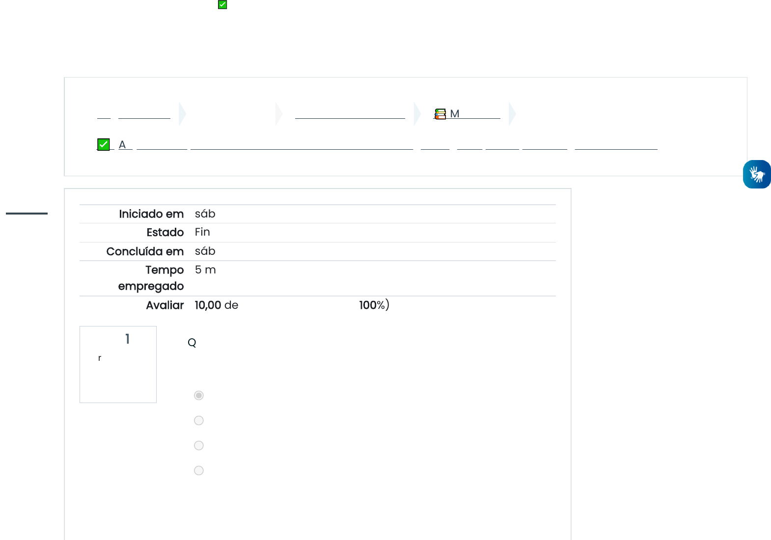 06/06/2023, 19:11 ✅ [A2] – Avaliação do Módulo 2 – Ferramentas e tecnologias digitais para aprendizagem a distância: Revisão da tentativa https://ava.ufms.br/mod/quiz/review.php?attempt=573058&cmid=570272 1/6 Página inicial Meus cursos 32010001488-2023-1 📚 Módulo 2 ✅ [A2] – Avaliação do Módulo 2 – Ferramentas e tecnologias digitais para aprendizagem a distância Questão 1 Correto Atingiu 1,00 de 1,00 Iniciado em sábado, 25 mar 2023, 11:33 Estado Finalizada Concluída em sábado, 25 mar 2023, 11:38 Tempo empregado 5 minutos 2 segundos Avaliar 10,00 de um máximo de 10,00(100%) Qual é o nome do conjunto de ferramentas que a UFMS oferece em parceria com o Google para uso educacional? a. Google Workspace for Education. b. Blackboard. c. Moodle. d. Microsoft Teams. https://ava.ufms.br/ https://ava.ufms.br/course/view.php?id=44470 https://ava.ufms.br/course/view.php?id=44470#section-3 https://ava.ufms.br/mod/quiz/view.php?id=570272 javascript:void(0); https://ava.ufms.br/user/index.php?id=44470 https://ava.ufms.br/admin/tool/lp/coursecompetencies.php?courseid=44470 https://ava.ufms.br/grade/report/index.php?id=44470 https://ava.ufms.br/ https://ava.ufms.br/my/ https://ava.ufms.br/calendar/view.php?view=month&course=44470 javascript:void(0); https://ava.ufms.br/user/files.php 06/06/2023, 19:11 ✅ [A2] – Avaliação do Módulo 2 – Ferramentas e tecnologias digitais para aprendizagem a distância: Revisão da tentativa https://ava.ufms.br/mod/quiz/review.php?attempt=573058&cmid=570272 2/6 Questão 2 Correto Atingiu 1,00 de 1,00 Questão 3 Correto Atingiu 1,00 de 1,00 Qual é o software do Ambiente Virtual de Aprendizagem da UFMS? a. Microsoft Teams. b. Google Classroom. c. Moodle. d. Blackboard. Dentro do Ambiente Virtual das disciplinas, é possível visualizar as pessoas que estão on-line e conversar com elas via mensagens. Escolha uma opção: Verdadeiro Falso javascript:void(0); https://ava.ufms.br/user/index.php?id=44470 https://ava.ufms.br/admin/tool/lp/coursecompetencies.php?courseid=44470 https://ava.ufms.br/grade/report/index.php?id=44470 https://ava.ufms.br/ https://ava.ufms.br/my/ https://ava.ufms.br/calendar/view.php?view=month&course=44470 javascript:void(0); https://ava.ufms.br/user/files.php 06/06/2023, 19:11 ✅ [A2] – Avaliação do Módulo 2 – Ferramentas e tecnologias digitais para aprendizagem a distância: Revisão da tentativa https://ava.ufms.br/mod/quiz/review.php?attempt=573058&cmid=570272 3/6 Questão 4 Correto Atingiu 1,00 de 1,00 Questão 5 Correto Atingiu 1,00 de 1,00 Qual é a ferramenta que permite o compartilhamento de vídeos em um canal personalizado dentro do Google Workspace for Education? a. YouTube. b. Jamboard. c. Google Drive. d. Google Meet. O acesso ao AVA-UFMS é realizado com passaporte institucional. Escolha uma opção: Verdadeiro Falso javascript:void(0); https://ava.ufms.br/user/index.php?id=44470 https://ava.ufms.br/admin/tool/lp/coursecompetencies.php?courseid=44470 https://ava.ufms.br/grade/report/index.php?id=44470 https://ava.ufms.br/ https://ava.ufms.br/my/ https://ava.ufms.br/calendar/view.php?view=month&course=44470 javascript:void(0); https://ava.ufms.br/user/files.php 06/06/2023, 19:11 ✅ [A2] – Avaliação do Módulo 2 – Ferramentas e tecnologias digitais para aprendizagem a distância: Revisão da tentativa https://ava.ufms.br/mod/quiz/review.php?attempt=573058&cmid=570272 4/6 Questão 6 Correto Atingiu 1,00 de 1,00 Questão 7 Correto Atingiu 1,00 de 1,00 Questão 8 Correto Atingiu 1,00 de 1,00 Qual é a ferramenta que permite o armazenamento e criação de arquivos colaborativos no Google Workspace for Education? a. Google Drive. b. Agenda. c. YouTube. d. Jamboard. É possível instalar complementos no Google Drive utilizando o Google Workspace Marketplace. Escolha uma opção: Verdadeiro Falso O contato com a tutoria deve ser feito pelo WhatsApp. Escolha uma opção: Verdadeiro Falso javascript:void(0); https://ava.ufms.br/user/index.php?id=44470 https://ava.ufms.br/admin/tool/lp/coursecompetencies.php?courseid=44470 https://ava.ufms.br/grade/report/index.php?id=44470 https://ava.ufms.br/ https://ava.ufms.br/my/ https://ava.ufms.br/calendar/view.php?view=month&course=44470 javascript:void(0); https://ava.ufms.br/user/files.php 06/06/2023, 19:11 ✅ [A2] – Avaliação do Módulo 2 – Ferramentas e tecnologias digitais para aprendizagem a distância: Revisão da tentativa https://ava.ufms.br/mod/quiz/review.php?attempt=573058&cmid=570272 5/6 Questão 9 Correto Atingiu 1,00 de 1,00 Questão 10 Correto Atingiu 1,00 de 1,00 No AVA-UFMS é possível inserir uma foto e descrição no perfil. Escolha uma opção: Verdadeiro Falso O contato com a tutoria deve ser feito no Fórum “Fale com a Tutoria”, disponível no AVA de cada disciplina. Escolha uma opção: Verdadeiro Falso Atividade anterior ◄ 📍 [Checkout de Presença] Módulo 2 – Ferramentas e tecnologias digitais para aprendizagem a distância Seguir para... Próxima atividade ▶ [Videoaula] Apresentação do Módulo 3 ► https://ava.ufms.br/mod/assign/view.php?id=570270&forceview=1 https://ava.ufms.br/mod/url/view.php?id=570273&forceview=1 javascript:void(0); https://ava.ufms.br/user/index.php?id=44470 https://ava.ufms.br/admin/tool/lp/coursecompetencies.php?courseid=44470 https://ava.ufms.br/grade/report/index.php?id=44470 https://ava.ufms.br/ https://ava.ufms.br/my/ https://ava.ufms.br/calendar/view.php?view=month&course=44470 javascript:void(0); https://ava.ufms.br/user/files.php 06/06/2023, 19:11 ✅ [A2] – Avaliação do Módulo 2 – Ferramentas e tecnologias digitais para aprendizagem a distância: Revisão da tentativa https://ava.ufms.br/mod/quiz/review.php?attempt=573058&cmid=570272 6/6 Manter contato Suporte Técnico ao Usuário https://suporteagetic.ufms.br (67) 3345-7613 suporte.agead@ufms.br https://suporteagetic.ufms.br/ tel:(67) 3345-7613 mailto:suporte.agead@ufms.br https://api.whatsapp.com/send?phone=5567334576