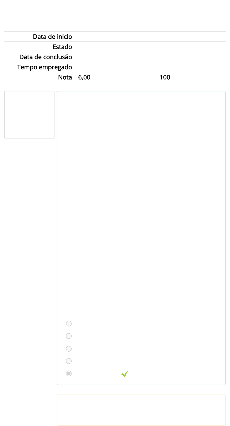 Questão 1 Correto Atingiu 0,60 de 0,60 Gestão Estratégica da Informação v.2 ► AVALIAÇÃO ► PROVA Data de inicio segunda, 6 Mar 2023, 16:33 Estado Finalizada Data de conclusão segunda, 6 Mar 2023, 18:10 Tempo empregado 1 hora 37 minutos Nota 6,00 de um máximo de 6,00(100%) O estudo das oportunidades está ligado aos eventos positivos, que podem ocorrer no ambiente externo e podem trazer benefícios competitivos à organização. As oportunidades estão ligadas a fatores como: mudanças econômicas, governamentais, reguladoras, legislativas, climáticas, demográ�cas etc. Leia as asserções e assinale a alternativa que corresponda a exemplos de oportunidade: I. Economia favorável, redução de impostos e subsídios governamentais. II. Aumento da concorrência no segmento de atuação, invasão de produtos oriundos de mercados internacionais. III. Redução da população e do público-alvo da organização, redução na demanda dos produtos. IV. Aumento na demanda dos produtos, mudanças favoráveis nas necessidades e expectativas dos clientes. Está correto o que se a�rma em: Escolha uma: a. III e IV apenas. b. II, III e IV apenas. c. II e III apenas. d. I, II, III e IV. e. I e IV apenas. Sua resposta está correta. A resposta correta é: I e IV apenas.. https://moodle.universoead.com.br/course/view.php?id=806 https://moodle.universoead.com.br/mod/quiz/view.php?id=18140 Questão 2 Correto Atingiu 0,60 de 0,60 Podemos de�nir os sistemas de informação como o conjunto integrado de procedimentos para transformar dados em informação, esta que resulta em conhecimento. Todo sistema de informação é composto pela etapa de entrada de dados brutos, que serão validados, armazenados e transformados em informação na etapa de processamento, oferecidos ao usuário da informação na etapa da saída e da retroalimentação. Assinale a alternativa que corresponda à etapa da retroalimentação: Escolha uma: a. Etapa referente à descrição primária de objetos, de eventos, de atividades e de transações que são gravados, classi�cados e armazenados na organização. b. Etapa de obtenção das informações geradas por meio de relatórios impressos pelos estagiários e levados à direção da empresa para a tomada de decisões. c. Etapa de captura de dados por meio de mecanismos eletrônicos, como leitor de código de barras ou, até mesmo, os teclados disponíveis nos terminais da empresa. d. Etapa na qual é possível avaliar a qualidade da informação oferecida e a necessidade de adaptação ou de melhoria do sistema como um todo. e. Etapa de descontrole dos sistemas de informação, na qual o volume de dados é tão alto, que é impossível avaliar a qualidade da informação. Sua resposta está correta. A resposta correta é: Etapa na qual é possível avaliar a qualidade da informação oferecida e a necessidade de adaptação ou de melhoria do sistema como um todo.. Questão 3 Correto Atingiu 0,60 de 0,60 Quando pensamos em nossas realidades pessoais, mesmo que inconscientemente, sempre buscamos informações para tomar decisões, seja no trabalho, na família, na escola ou na vida social. É muito difícil tomarmos qualquer decisão sem informações prévias, que podem ser, inclusive, aquelas que temos registradas em nossa memória, resultado de experiências anteriores. Pensando na importância da informação para as organizações, é correto o que se a�rma em: Escolha uma: a. A informação é matéria-prima para a disseminação de fofocas nas empresas. b. A informação é matéria-prima para todo o processo decisório nas empresas. c. A informação é essencial para a empresa fazer espionagem industrial. d. A informação é desnecessária para o processo decisório nas empresas. e. A informação confunde o processo decisório nas empresas. Sua resposta está correta. A resposta correta é: A informação é matéria- prima para todo o processo decisório nas empresas.. Questão 4 Correto Atingiu 0,60 de 0,60 Os sistemas de CRM (Gestão do Relacionamento com o Cliente) tem como foco estabelecer interação permanente entre a empresa e seus clientes. Aliado à tecnologia da informação, o CRM promove a empresa, a oportunidade de atender e, ao mesmo tempo, coletar informações em tempo real dos clientes para, em seguida, transformar esses dados em informações valiosas a serem disseminadas por toda a organização. Considerando esse contexto, avalie as seguintes asserções e a relação proposta entre elas. I. O sistema de CRM facilita a obtenção de informações adequadas e consistentes sobre os clientes, o que auxilia a empresa na qualidade do atendimento ao cliente de ponta a ponta. PORQUE II. Os sistemas de CRM permitem que as organizações tomem decisões com base no aqui e no agora, valorizem mais as opiniões do que os dados e foquem nas ações de vendas agressivas. Escolha uma: a. As asserções I e II são proposições verdadeiras, mas a II não é justi�cativa da I. b. A asserção I é proposição falsa, e a II é proposição verdadeira. c. A asserção I é proposição verdadeira, e a II é proposição falsa. d. As asserções I e II são proposições falsas. e. As asserções I e II são proposições verdadeiras, e a II é justi�cativa da I. Sua resposta está correta. A resposta correta é: A asserção I é proposição verdadeira, e a II é proposição falsa.. Questão 5 Correto Atingiu 0,60 de 0,60 São bilhões de dispositivos conectados à internet, que vão desde computadores pessoais e smartphones, servidores de grandes corporações e estados, a dispositivos públicos e privados, que geram dados por meio de sensores, tais como scanner, leitores de radiofrequência e câmeras de tráfego, que geram essa avalanche de dados complexos, estruturados e não estruturados. Nesse cenário cada vez mais dinâmico, ter acesso, antes dos concorrentes, às mudanças de mercado provocadas pelas novas tecnologias é o limiar inc