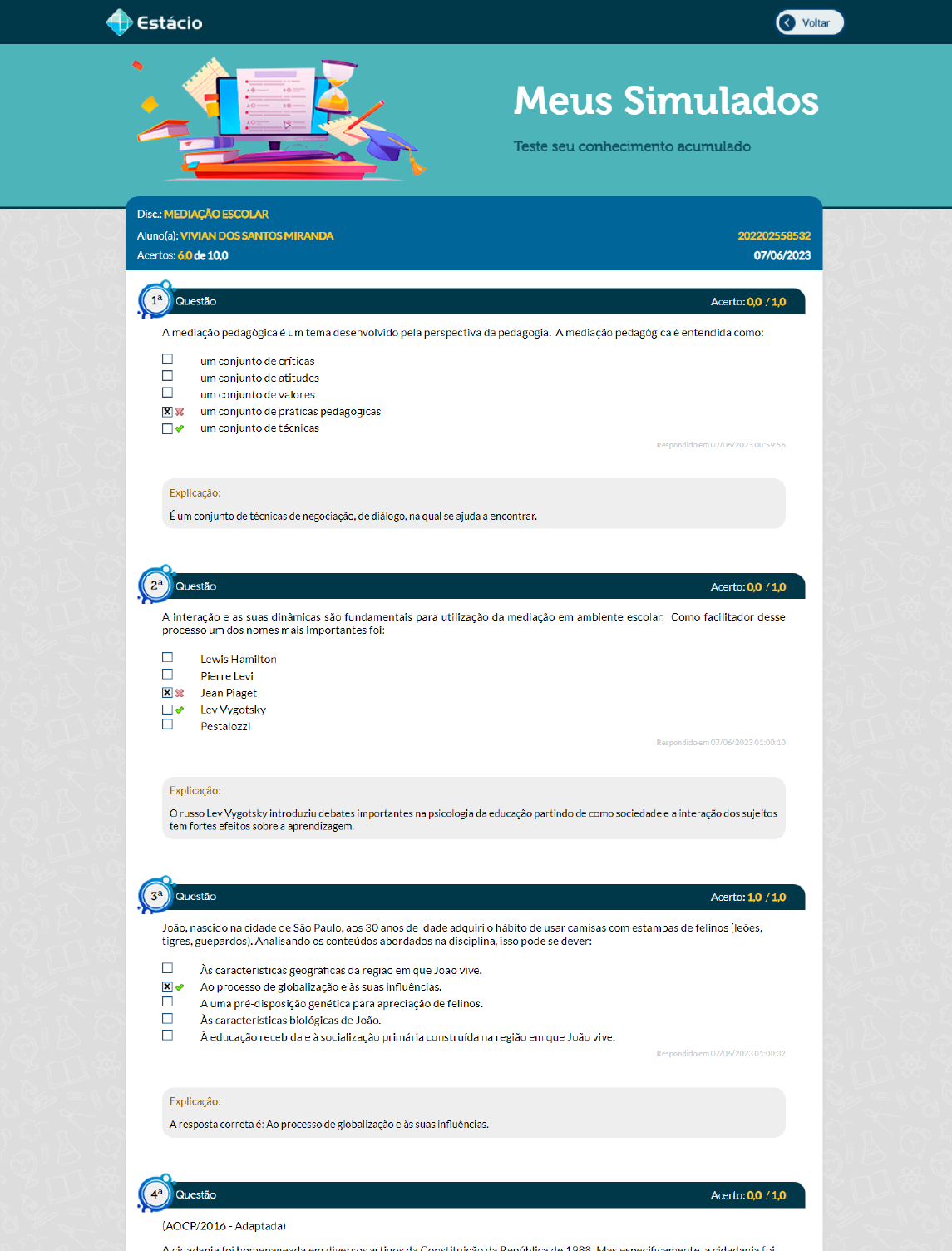 Uma escola fez um simulado de matemática com questões, dos estudantes acertaram do simulado e os demais estudantes acertaram do total de questões. ...