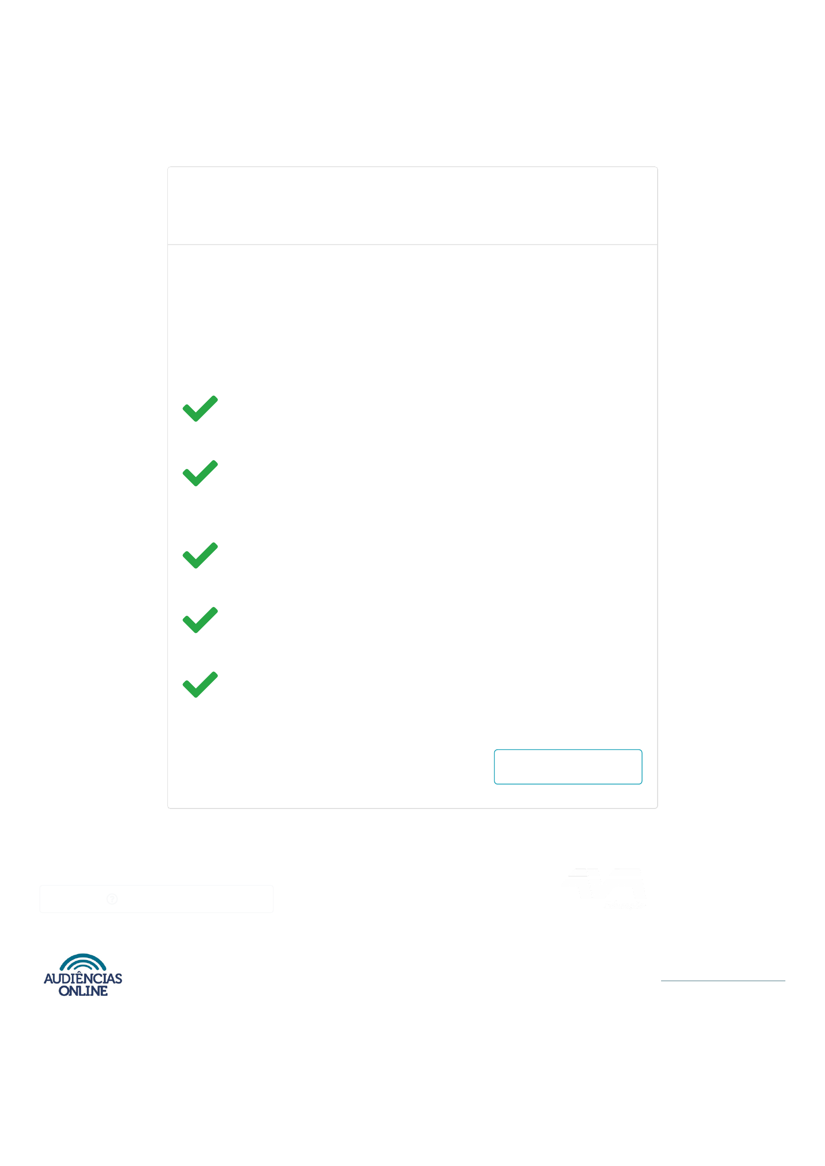 05/10/2022 14:26 Audiências online https://audienciasonline.com.br/#/avaliacao/5c82c08878b3e14e47219082 1/1 Avaliação de Conhecimento : Justiça do Trabalho Audiências de Conciliação Audiência Trabalhista de Conciliação 02 Audiência Trabalhista de Conciliação 02 Processo: 0025349-34.2016.5.24.0007 Voltar para a home Parabéns, você atingiu a pontuação necessária para a emissão do certificado. Dentro de no máximo 5 minutos você poderá acessar o seu certificado na opção "Meus Certificados", existente no Menu. Quantas testemunhas foram ouvidas na audiência? nenhuma Conforme pode ser observado na audiência e na leitura das peças do processo a reclamante ajuizou ação trabalhista contra uma empresa Segundo o observado na audiência: a empresa requerida teve a iniciativa de apresentar proposta de acordo Segundo disse o magistrado, em audiência: a controvérsia dos autos estava adstrita à causa da dispensa da reclamante Podemos observar na audiência: as partes realizaram acordo, ficando o reclamado obrigado a pagar à reclamante a quantia de 8 mil reais, em 7 parcelas contato@avaeducacao.com.br CENTRAL DE DUVIDAS contato@avaeducacao.com.br Central de ajuda CONECTE-SE Apoio ©2022 Audiencias Online. Política de Privacidade Certificado Emitido Seu Certificado já está disponivel em "Meus Certificados" Usuário logado com sucesso! mailto:contato@audienciasonline.com.br mailto:contato@audienciasonline.com.br https://www.facebook.com/joseandradeaudienciasonline/ https://www.youtube.com/channel/UC0VPVc46sgqyslyCuEOk0Lw https://www.instagram.com/joseandradeao/?hl=pt https://t.me/juizjoseandrade