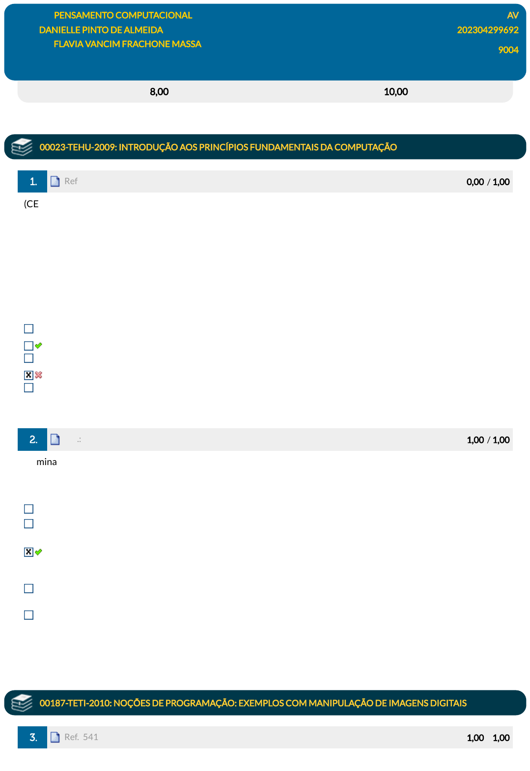 Avaliação: 8,00 pts Nota SIA: 10,00 pts