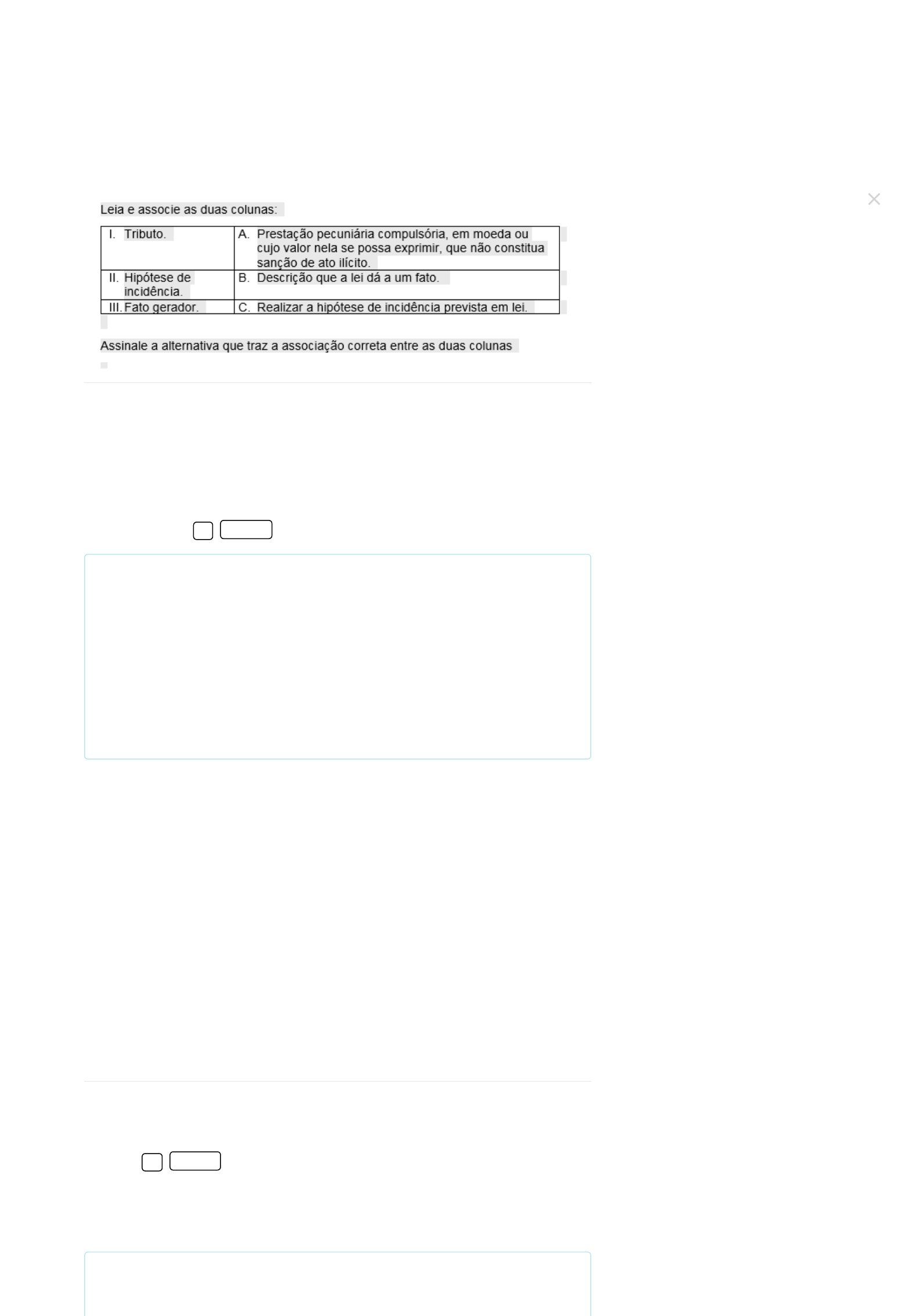 10/06/2023, 14:27 Cosmos · Cosmos https://kroton.platosedu.io/lms/m/aluno/disciplina/index/2813616/6018071 1/5 Tributação aduaneira e competitividade Professor(a): João Alfredo Lopes Nyegray (Mestrado acadêmico) 1) 2) Prepare-se! Chegou a hora de você testar o conhecimento adquirido nesta disciplina. A Avaliação Virtual (AV) é composta por questões objetivas e corresponde a 100% da média final. Você tem até cinco tentativas para “Enviar” as questões, que são automaticamente corrigidas. Você pode responder as questões consultando o material de estudos, mas lembre-se de cumprir o prazo estabelecido. Boa prova! Alternativas: I – B; II – A; III – C. I – C; II – B; III – A. I – C; II – A; III – B. I – A; II – C; III – B. I – A; II – B; III – C. CORRETO Código da questão: 53766 Sobre os regimes aduaneiros, podemos afirmar que: I. Produtos importados na Zona Franca de Manaus não pagam Imposto de Importação e Imposto sobre Produto Industrializado. II. A Zona de Processamento de Exportações é um regime aduaneiro especial que busca reduzir os tributos de exportação em algumas cidades específicas. III. Os regimes aduaneiros especiais possuem a desvantagem da burocracia que cerca sua concessão. IV. A suspensão de tributos para mercadorias em regime aduaneiro especial é por prazo indeterminado. V. A suspensão de tributos para mercadorias em regime aduaneiro especial é por prazo de um a cinco anos. São verdadeiras: Alternativas: III – IV. I – III – V. CORRETO I – II – III – IV – V. IV – V. III – IV – V. Resolução comentada: de acordo com o Código Tributário Nacional (CTN), art. 3º, tributo é toda prestação pecuniária compulsória, em moeda ou cujo valor nela se possa exprimir, que não constitua sanção de ato ilícito, instituída em lei e cobrada mediante atividade administrativa plenamente vinculada. Por outro lado, uma hipótese de incidência é a descrição que a lei dá a um fato: importar, exportar, auferir renda. Por fim, fato gerador é realizar a hipótese de incidência prevista em lei. Toda vez que alguém realiza a hipótese de incidência, surge a necessidade e a obrigação de pagar o respectivo tributo. Resolução comentada: Avaliação enviada com sucesso 10/06/2023, 14:27 Cosmos · Cosmos https://kroton.platosedu.io/lms/m/aluno/disciplina/index/2813616/6018071 2/5 3) 4) Código da questão: 53776 A respeito dos regimes aduaneiros, considere as seguintes afirmações: ( ) São regimes aduaneiros especiais aqueles em que a regra de tributação é suspensa por algum motivo. ( ) Convencionalmente, quando a mercadoria será utilizada no Brasil e terá o país como seu destino final, chama-se o despacho aduaneiro de “despacho para consumo”. ( ) Trânsito aduaneiro, lojas francas e drawback são exemplos de regimes aduaneiros especiais. ( ) Trânsito aduaneiro, lojas francas e drawback não são exemplos de regimes aduaneiros especiais. ( ) Mercadorias que chegam ao país em regimes aduaneiros especiais pagam os tributos da importação normalmente. Assinale a alternativa que contenha a sequência correta: Alternativas: V – V – F – V – F. V – V – V – F – F. CORRETO F – F – V – V – V. F – V – F – V – F. V – V – V – F – V. Código da questão: 53773 O documento emitido pelo transportador que comprova que uma determinada mercadoria está em sua posse para entrega chama-se de: Alternativas: Documento de transporte. Declaração de posse. Conhecimento de carga. CORRETO Manifesto de carga. Contrato aduaneiro de transporte. as Zonas de Processamento de Exportações são benefícios locais para que cidades da Região Norte troquem mercadorias de forma mais fácil com as cidades fronteiriças de outros países. As exportações não são tributadas, o que torna incorreta a afirmação II. Outro regime aduaneiro aplicado a área especial é a Zona Franca de Manaus (ZFM), para a qual as importações não pagam II ou IPI, o que torna correta a opção I. Os regimes aduaneiros possuem prazo de suspensão de tributos que variam entre um e cinco anos, o que torna correta a afirmação V e incorreta a afirmação IV. A grande desvantagem de tais regime é, justamente, a demora e burocracia em sua concessão, o que torna correta a afirmativa III. Resolução comentada: enquanto nos despachos de mercadorias para consumo os produtos que chegam ao Brasil ficarão aqui em definitivo, nos regimes aduaneiros especiais, a tributação é suspensa. Trânsito aduaneiro, lojas francas, drawback, entreposto aduaneiro e exportação temporária são alguns exemplos desses regimes. As mercadorias em regimes aduaneiros especiais não são tributadas na exportação, pois não ficarão em nosso país. Resolução comentada: quando uma carga será transportada internacionalmente, é necessário que o transportador emita um conhecimento de carga, que é um documento que comprova que uma determinada mercadoria está em sua posse para entrega num determinado lugar. Avaliação enviada com sucesso 10/06/2023, 14:27 Cosmos · Cosmos https://kroton.platosedu.io/lms/m/aluno/disciplina/index/2813616/6018071 3/5 5) 6) 7) Código da questão: 53779 Sobre o valor aduaneiro, podemos afirmar que: I. O primeiro método de valoração é o de mercadoria idêntica. II. O segundo método de valoração é o de mercadoria semelhante. III. O primeiro método de valoração aduaneira é o valor da transação. IV. O terceiro método de valoração é o valor mercadoria semelhante. V. O quinto método de valoração é baseado em critério razoável. São verdadeiras: Alternativas: I – II – IV. I – II – III – IV – V. III – IV – V. III – IV. CORRETO IV – V. Código da questão: 53767 O regime aduaneiro especial de loja franca é o que permite a um estabelecimento instalado em zona primária de porto ou de aeroporto alfandegado vender mercadoria nacional ou estrangeira sem tributo