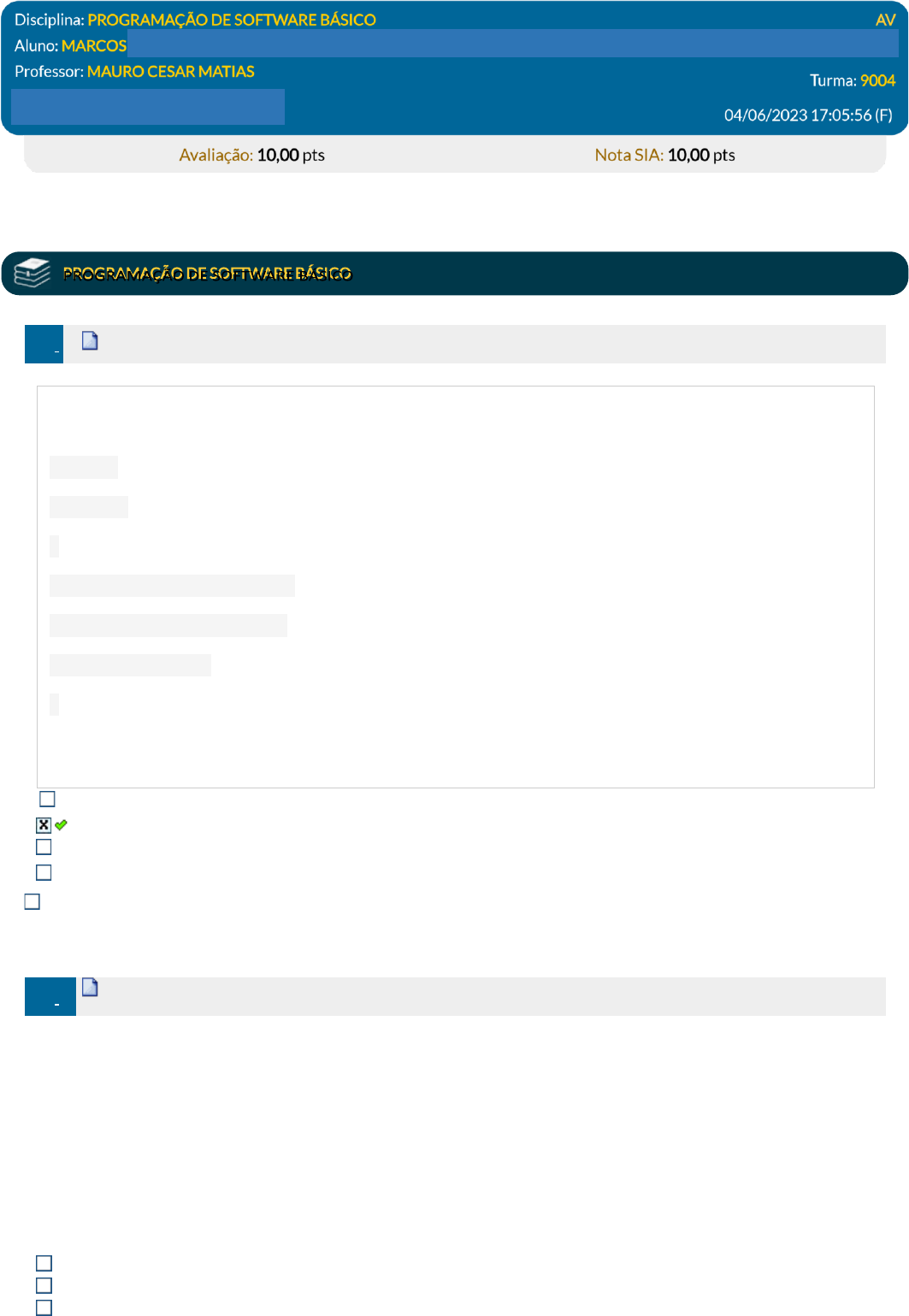 Ref.: 3380013 2. Pontos: 1,00 / 1,00