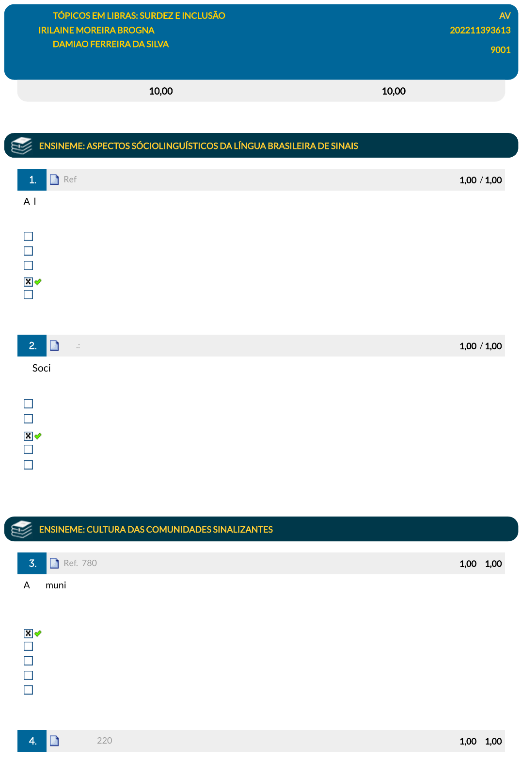 Disciplina: TÓPICOS EM LIBRAS: SURDEZ E INCLUSÃO AV