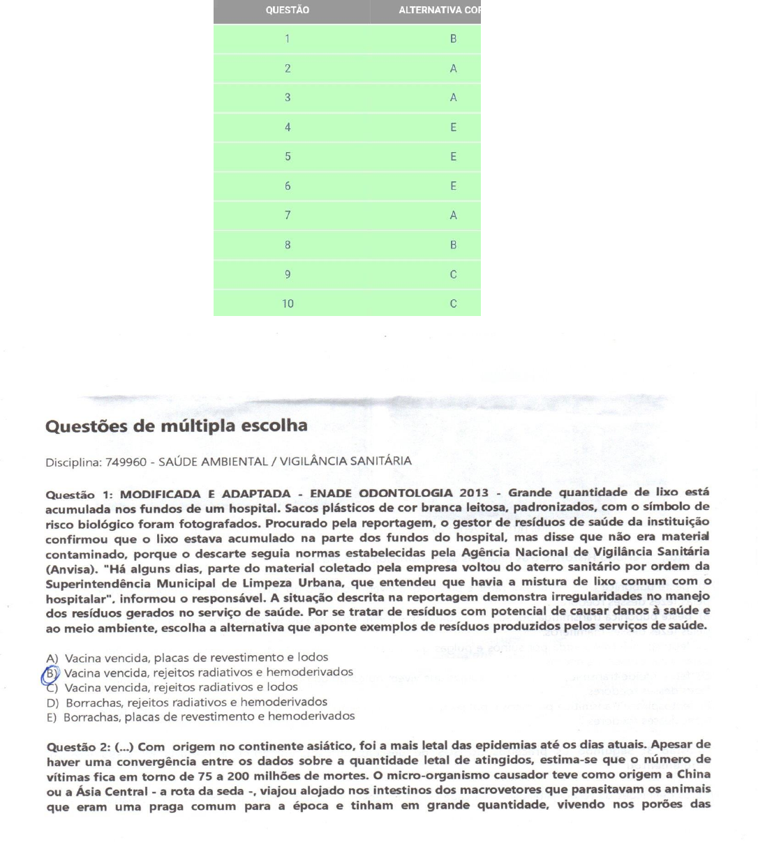 SAUDE AMBIENTAL/ VIGILANCIA SANITARIA – PROVA