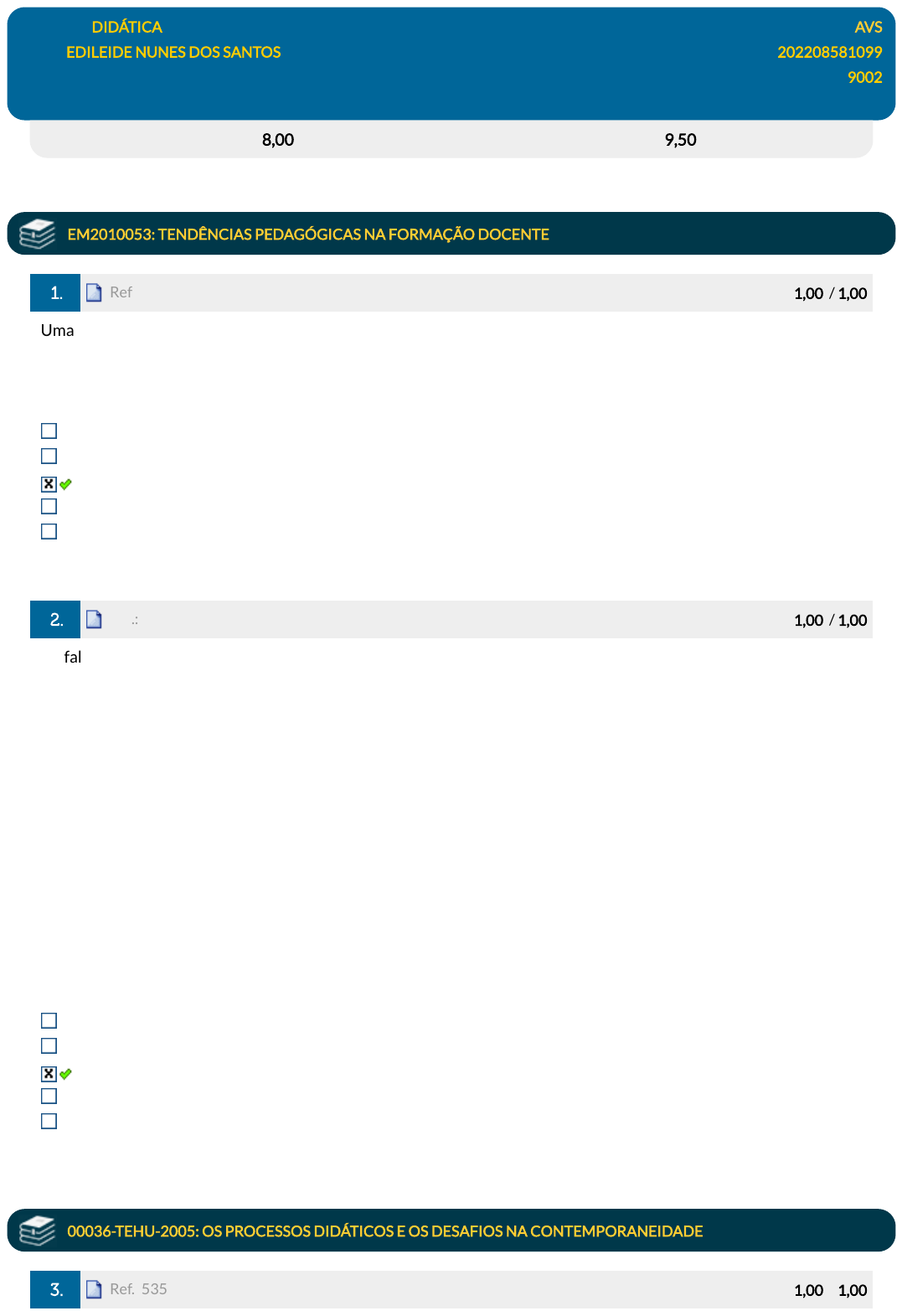 Avaliação: 8,00 pts Nota SIA: 9,50 pts