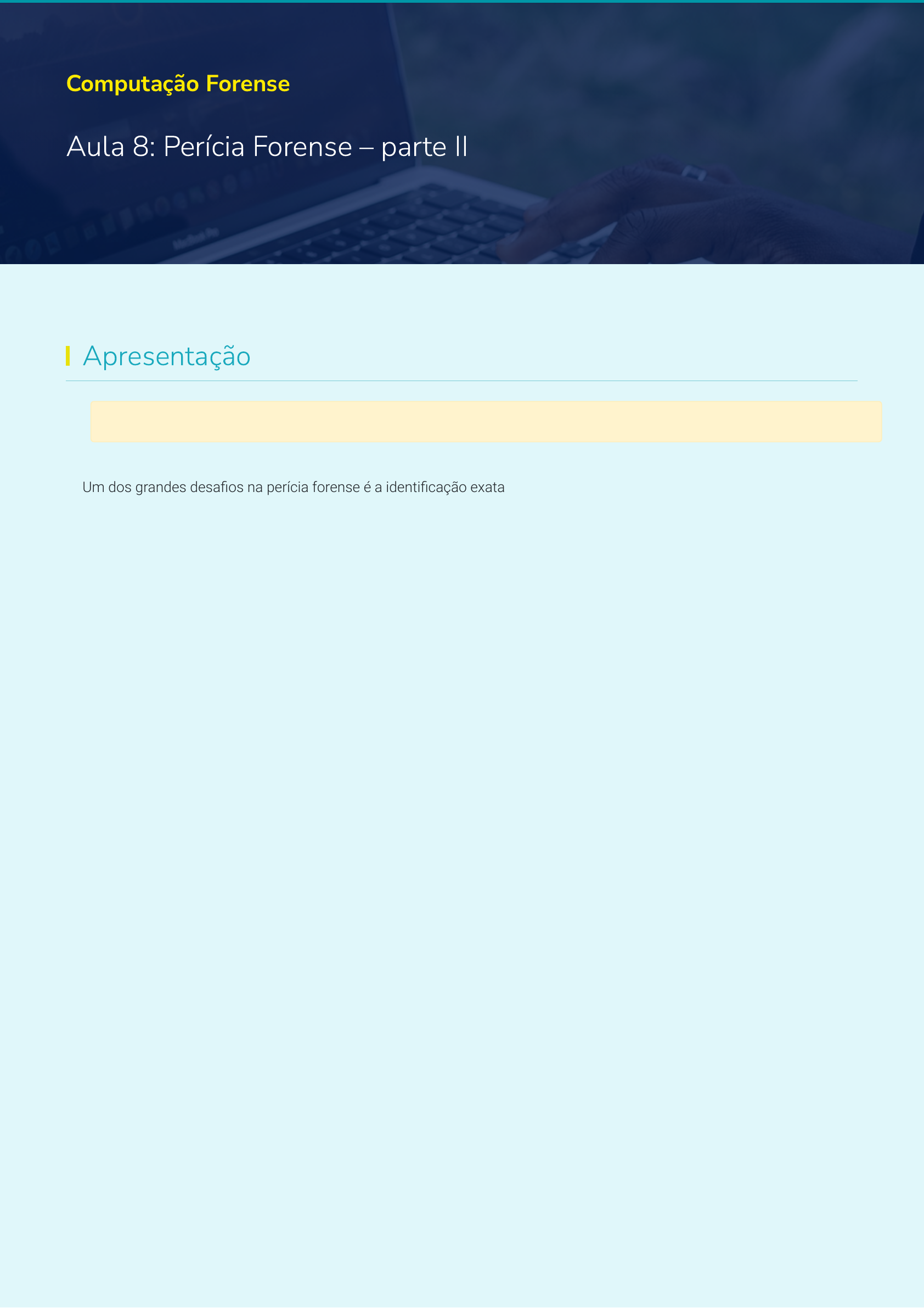 Computação Forense Aula 8: Perícia Forense – parte II Apresentação Um dos grandes desa�os na perícia forense é a identi�cação exata dos locais abrangidos em um cenário de crime, cuja principal evidência é a informação digital. A correta identi�cação, isolamento, coleta e preservação dos vestígios dessa natureza são fatores imprescindíveis para a perseguição da autoria e materialidade do crime. Os vestígios, geralmente, não estão con�nados em um perímetro bem de�nido, mas espalhados em uma série de ambientes que precisam ser devidamente tratados pelo perito para elucidação dos fatos. Atenção! Aqui existe uma videoaula, acesso pelo conteúdo online Objetivo Identi�car os procedimentos básicos de uma investigação forense; Conceituar os processos de investigação e padronização de obtenção das evidências; Identi�car as atribuições do perito forense. Perícia forense para obtenção de evidências Quando um indivíduo utiliza os sistemas computacionais, seja como meio ou como �m para o cometimento de atos ilícitos, ele produz vestígios de natureza lógica ou física. Esse conjunto de informações extraídas permite esclarecer os fatos por trás de um crime ou de um fato em apuração, bem como todos os seus elementos relacionados, sejam eles físicos ou lógicos, que sirvam de suporte para o armazenamento, produção ou trânsito da informação. Na busca incessante por essas evidências, o já consagrado princípio de Locard, ou o princípio da transferência, encontra abrigo na nossa realidade moderna da computação, seja pelo contato direto do indivíduo com o hardware, seja pelos vestígios deixados no mundo cibernético. Os ensinamentos de Edmond Locard, condensados nas palavras de Paul Kirk, independentemente do meio ao qual for aplicar, servem como inspiração para que a busca pelas evidências seja incessante: Quaisquer que sejam os passos, quaisquer objetos tocados por ele, o que quer que ele deixe, mesmo que inconscientemente, servirá como uma testemunha silenciosa contra ele. Não apenas as suas pegadas ou dedadas, mas o seu cabelo, as �bras das suas calças, os vidros que ele porventura parta, a marca da ferramenta que ele deixe. Tudo isso, e muito mais, carrega um testemunho contra ele. Esta prova não se esquece. É distinta da excitação do momento. Não é ausente como as testemunhas humanas são. Constituem, per se, uma evidência factual. A evidência física não pode estar errada, não pode cometer perjúrio por si própria, não pode se tornar ausente. Cabe aos humanos procurá-la, estudá-la e compreendê-la, apenas os humanos podem diminuir o seu valor. - Paul Leland Kirk Os sistemas computacionais se enquadram como ferramentas indispensáveis ao homem moderno, já que estão presentes na grande maioria dos lares e também embutidas em quase todos os elementos do nosso cotidiano. Esses sistemas compostos por hardware e software encontram correspondência com o conceito de “ferramenta” adotado pelo renomado cientista francês e, como toda ferramenta, necessita de uma ação humana anterior ou concomitante para a produção de um resultado �nalístico contrário ou não ao ordenamento jurídico. Procedimentos e métodos aplicados à perícia forense computacional Segundo Freitas (2007), a perícia forense possui quatro procedimentos básicos: Fonte: O autor. No caso de crimes cometidos por meio de um computador, as evidências normalmente são dados lógicos e virtuais, cabendo ao perito identi�car de forma correta e aplicável ao meio que se encontra como preservar e armazenar essas provas. Comentário Não necessariamente devem-se utilizar todas as etapas descritas anteriormente. Pode-se utilizar somente uma etapa, a maioria ou todas elas. Existem inúmeros crimes virtuais e, consequentemente, há diversas evidências que o perito necessita avaliar para de�nir sua necessidade no laudo técnico pericial. Na identi�cação, o perito deve: 1 Atentar-se para o tipo de crime praticado. 2 Utilizar todos os meios disponíveis para auxiliar na elucidação do caso. 3 Buscar por evidências de logs, conexões e alteração de arquivos con�denciais, caso o crime seja de acesso não autorizado. 4 Caso o crime seja de pornogra�a com menores, deve identi�car imagens e vídeos no HD do usuário, veri�car o histórico e arquivos temporários do navegador. Portanto, ao identi�car uma evidência digital, a parte física, o “hardware”, do computador ou de qualquer equipamento digital é de muita importância para descobrir provas e pistas. Para garantir que dados não foram alterados, substituídos, perdidos ou corrompidos, utiliza-se a cadeia de custódia. Assim, a cadeia de custódia viabiliza o controle sobre o trâmite da amostra com a identi�cação nominal das pessoas envolvidas em todas as fases do processo, caracterizando as suas responsabilidades, as quais são reconhecidas institucionalmente, uma vez que, como já foi citado, as mesmas foram treinadas para estas atividades. Portanto, o fato de assegurar a memória de todas as fases do processo, constitui um protocolo legal que permite garantir a idoneidade do resultado e rebater as possíveis contestações (LOPES; GABRIEL; BARETA, 2008). Os vestígios cibernéticos podem e devem ser tratados com especial atenção, principalmente nos casos relacionados a atividades criminosas. Tomando-se os devidos cuidados no trato desses vestígios, dispomos de uma fonte valiosíssima de provas judiciais a serem utilizadas durante a persecução penal. Para que possamos abordar o tratamento dos vestígios cibernéticos, a norma ISSO/IEC 27037:2012 classi�ca-os por: Cabe, porém, ressaltar que, diante de um caso concreto, essas etapas podem não ser determinadas nesta ordem, uma vez que as condições climáticas e ambientais da cena do crime, bem como a urgência requerida para a realização dos exames in�uenciarão em seu sequenciamento e 