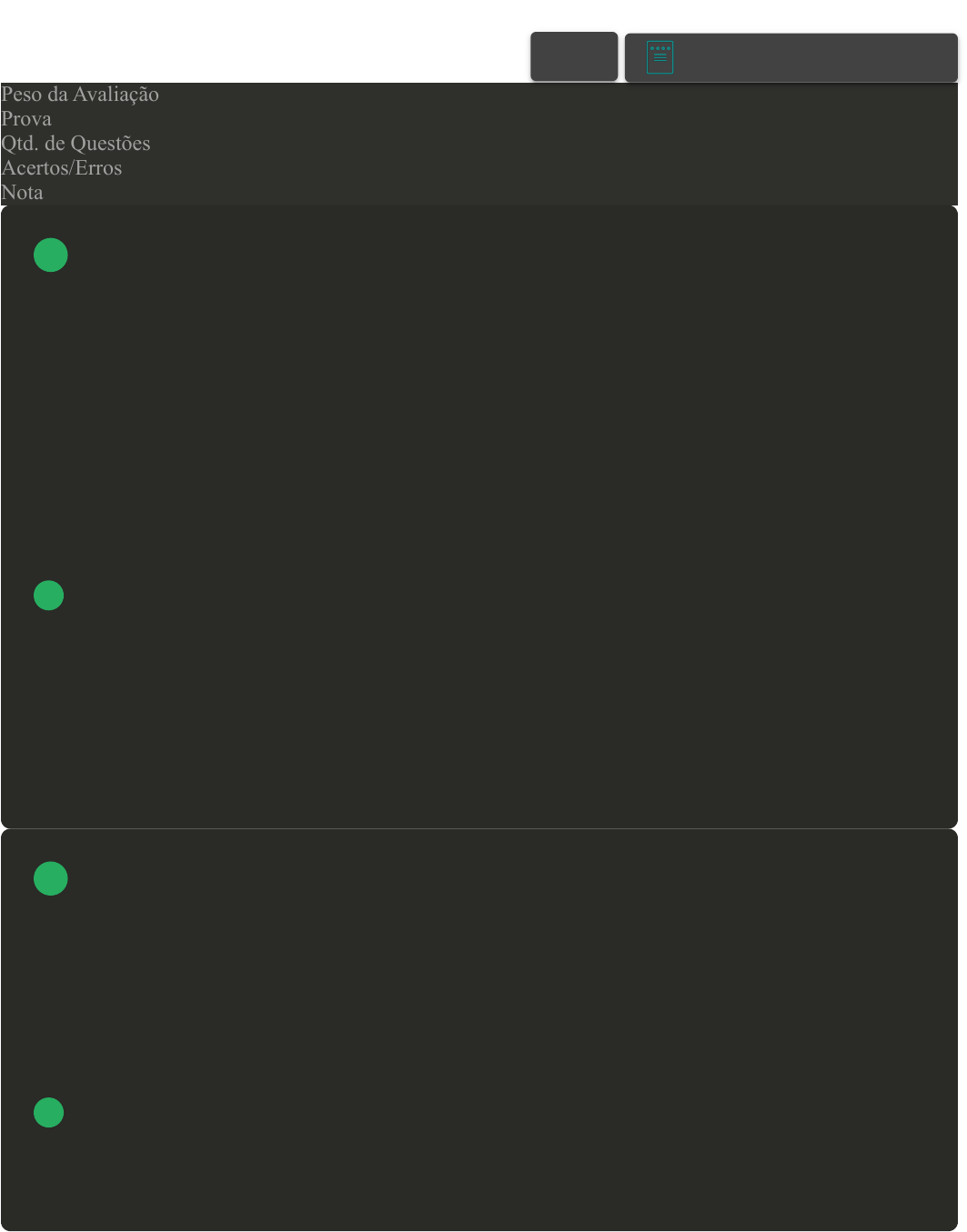 15/06/2023 14:28 Avaliação II - Individual about:blank 1/5 Prova Impressa GABARITO | Avaliação II - Individual (Cod.:827733) Peso da Avaliação 1,50 Prova 66956774 Qtd. de Questões 10 Acertos/Erros 10/0 Nota 10,00 As lipoproteínas são uma família de partículas cuja função é o transporte de lipídios para os tecidos e órgãos, elas evoluíram a fim de solucionar o problema de transporte de gordura no corpo em ambientes aquosos, por exemplo, o plasma sanguíneo. Sobre as principais apolipoproteínas humanas, encontradas na superfície das lipoproteínas, avalie as asserções a seguir e a relação proposta entre elas: I- A apolipoproteína B100 está relacionada apenas ao transporte de triglicerídeos. PORQUE II- A apolipoproteína B100 se liga ao receptor de LDL. Assinale a alternativa CORRETA: A A asserção I é uma proposição falsa, e a II é uma proposição verdadeira. B As asserções I e II são proposições verdadeiras, mas a II não é uma justificativa da I. C As asserções I e II são proposições falsas. D As asserções I e II são proposições verdadeiras, e a II é uma justificativa da I. A doença hepática é qualquer distúrbio da função hepática que causa doença. O fígado é responsável por muitas funções críticas dentro do corpo e, se ficar doente ou lesionado, a perda dessas funções pode causar danos significativos ao corpo. São considerados marcadores laboratoriais de doenças hepáticas e colestáticas: A Hb1Ac, TOTG e IDL. B Amilase, lipase e PSA. C AST, ALT e ALP. D VLDL, LDL e HDL. VOLTAR A+ Alterar modo de visualização 1 2 15/06/2023 14:28 Avaliação II - Individual about:blank 2/5 [Laboratório Virtual - Dosagem de Creatina Quinase] A creatina quinase (CK), também conhecida como creatina fosfoquinase (CPK) ou fosfocreatina quinase, é uma enzima expressa por vários tecidos e tipos celulares. A CK catalisa a conversão de creatina e usa trifosfato de adenosina (ATP) para criar fosfocreatina (PCr) e difosfato de adenosina (ADP). Com relação às observações feitas no experimento de dosagem de creatina quinase, assinale a alternativa CORRETA: A Para dosagem da creatina quinase, é necessário utilizar como amostra uma biópsia tecidual do paciente. B As isoformas raramente são determinadas para realização de diagnósticos específicos, como de infarto agudo do miocárdio. C A creatina quinase é composta pela associação das subunidades B e/ou M. D A dosagem da creatina quinase total é considerada como um marcador específico para lesões cardíacas. O ácido úrico é um resíduo natural da digestão de alimentos que contêm purinas. As purinas são encontradas em níveis elevados em alguns alimentos, como certas carnes, sardinhas, feijão seco e Cerveja. A hiperuricemia está relacionada a condição clínica conhecida como: A Diabetes B Hepatite C Pancreatite D Gota O exame dos sedimentos urinários por meio da microscopia nos permite identificar certos elementos, como células, cilindros e cristais. Sobre a avaliação do sedimento urinário no exame de urina, analise as sentenças a seguir: I- Os cilindros são formas modeladas no lúmen dos túbulos contorcidos distais e ductos coletores, e podem apresentar diferentes tipos, como hialinos e gordurosos. II- Os cristais podem ser formados na urina normal devido à variação de pH. III- Leucócitos ou glóbulos brancos encontrados na urina indicam certamente infecção no sistema renal. Assinale a alternativa CORRETA: A As sentenças II e III estão corretas. B As sentenças I e II estão corretas. C Somente a sentença I está correta. 3 4 5 15/06/2023 14:28 Avaliação II - Individual about:blank 3/5 D Somente a sentença II está correta. As doenças hepáticas crônicas são caracterizadas por processos inflamatórios que causam danos aos hepatócitos, normalmente estão relacionadas a processos de regeneração e cicatrização. Existem na clínica testes específicos para o diagnóstico das causas de algumas doenças hepáticas crônicas. Sobre as doenças descritas, associe os itens, utilizando o código a seguir: I- Hepatite B. II- Doença de Wilson. III- Hepatite C. ( ) Diminuição dos níveis da proteína ceruloplasmina. ( ) Anti-HCV. ( ) HBV DNA por PCR. Assinale a alternativa que apresenta a sequência CORRETA: A I - III - II. B III - II - I. C I - II - III. D II - III - I. Os líquidos corporais em excesso no nosso organismo, como água, resíduos do metabolismo e os eletrólitos e não eletrólitos são excretados na urina. A regulação do meio interno do nosso corpo se dá através de dois órgãos: os pulmões, que são responsáveis por controlar as concentrações de oxigênio e de CO2; e os rins, que mantêm a composição química dos líquidos corporais. Os rins participam do equilíbrio dinâmico do meio interno corporal através de alguns processos. Sobre o exposto, associe os itens, utilizando o código a seguir: I- Filtração. II- Reabsorção seletiva. III- Secreção. ( ) O rim seleciona as substâncias que devem voltar para o meio interno. ( ) O rim expulsa as substâncias que foram filtradas, mas devem ser excretadas em quantidade maior do que a filtrada. ( ) O rim filtra o plasma sanguíneo e retém a maioria das proteínas. Assinale a alternativa que apresenta a sequência CORRETA: A III - II - I. B II - III - I. C I - II - III. 6 7 15/06/2023 14:28 Avaliação II - Individual about:blank 4/5 D II - I - III. Enzimas são catalisadores proteicos responsáveis pela maioria das reações químicas do organismo, sendo encontradas em todos os tecidos. A determinação de enzimas no laboratório clínico tem uma grande aplicação para o diagnóstico, prognóstico e acompanhamento da terapia de diversas patologias. Sobre as enzimas comumente avaliadas em laboratórios clínicos, assinale a alternativa CORRETA: A São exemplos de aminotransferases de interesse clínico a aspartato aminotransferase (AST), também chamada de TGP e a alanina