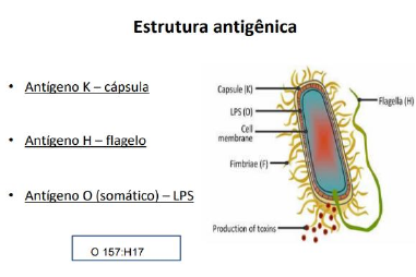 Enterobactérias - Classificados através das provas bioquímicas; - Reduzem nitrato a nitrito; - Banco de anticorpos que reconhecem antígenos da parede celular das bactérias. São eles: O, H e K (mudam a depender da espécie do microrganismo). Características gerais das Enterobactérias - Anaeróbios facultativos; -Bacilos gram-negativos não esporulados; - Móveis; Flagelo peritriquios (em toda parede celular, o que deixa a bactéria extremamente moveis) - Todas são fermentadoras de glicose e algumas são fermentadoras de lactose; - Reduzem o nitrato a nitrito; - Crescem em meios seletivos (Macconkey) e não seletivos (ágar- sangue); - Catalase-positiva e oxidase-negativa; - Não possuem citocromo oxidase (enzima utilizada para diferenciar enterobacteriaceae de outros bacilos gram-negativos); - Resistentes aos sais biliares; - Klebsiella e Shiguela NÃO possuem flagelos - Antígenos utilizados para reconhecimento e classificação dessas bactérias: • Antígeno O (somático - LPS) • Antígeno K (capsular) • Antígeno H (flagelar) Fatores de Virulência comum as enterobactérias - Toda bactéria gram-negativa possui LPS; - Cápsula: - Variação de fase antigênica: (os antígenos O, K e H, podem ou não serem expressos, dependendo da variação da fase. Esta é uma característica que protege a bactéria da morte mediada por anticorpo; consegue burlar o sistema imune; - Sistema de Secreção Tipo III: facilitam a transferência de fatores de virulência bacterianos para as células-alvo do hospedeiro. Na ausência do sistema secretório tipo III, a bactéria tem sua virulência diminuída; é um canal, onde a bactéria injeta proteínas que facilitam a transferência dos fatores de virulência; - Sideróforos: proteínas que podem estar presas na parede ou pode ser secretado, para que a bactéria consiga se ligar ao ferro do hospedeiro, utilizando-o para a sua nutrição; - Resistência ao efeito bactericida do soro; - Resistência aos antimicrobianos; Escherichia coli - Bacilos gram-negativos, anaeróbios facultativos; - Fermentadores; oxidase-negativos; - Podem causar gastroenterite e infecções extraintestinais, como ITU, meningites e sepse; - E. coli O157 é a causa mais comum de colite hemorrágica e síndrome hemolítico-urêmica); Fatores de virulência específicos a E. coli • EPEC: - E. coli enteropatogênica; - Ação no intestino delgado; - Não produz toxinas; - Fatores de virulência: Secretam os receptores intimina (parede celular da bactéria) e TI (membrana do enterócito), que se ligam para juntar a membrana do enterócito a parede celular da EPEC, quando ocorre a destruição das microvilosidades; - Intimina e TI, são provenientes da bactéria; saem pelo sistema secretório tipo III; - Diarreia aquosa, causada pela adesão da bactéria a parede do epitélio intestinal, formando microlônias e destruição das microvilosidades, o que causa má absorção e diarreia, fezes sem sangue e vômitos; - Diarreia autolimitada; - Formação de pedestal = esfacelamento/ destruição das microvilosidades. • ETEC - E. coli enterotoxigênica; - Ação no intestino delgado; - Causa da diarreia dos viajantes; - Fonte de infecção: consumo de alimentos e/ou água contaminada com fezes; - Não ocorre transmissão de pessoa a pessoa; - Período de incubação de 1 a dois dias, com persistência em média por 5 dias; - Diarreia aquosa, causada pela estimulação de enterotoxinas, termoestáveis (associada a doenças em humanos) e termolábeis (Sb), que provocam a hipersecreção de fluidos e eletrólitos, além de vômitos, cólicas, náuseas e febre baixa; - A toxina termoestável (St), se liga ao receptor transmembranar de guanilato ciclase C no epitélio intestinal, conduzindo a um aumento de monofosfato de guonosina cíclico, que tem como consequência a hipersecreção de fluidos ou a inibição de absorção de fluido; • EHEC: - E. coli enterohemorrágica; - Produtora de toxina Shiga; - Ação no intestino grosso; - Atrapalha a síntese proteica, o que leva a morte das células epiteliais que revestem o colón que a bactéria está infectando; - Tropismo pelos enterócitos, capilares do intestino, além de possuir o receptor GP; - Inicia com diarreia aquosa, evoluindo para colite hemorrágica; - Período de incubação 3 a 4 dias; - Alta infectividade • EAEC - E. coli enteroagregativa; - Ação no intestino delgado; - Produz, através do sistema secretório tipo III, várias enterotoxinas. Processo inflamatório mais exacerbado – estimulando a produção de muco nos glomérulos; - Síndrome hemolítica-urêmica; - Diarreia aquosa persistente, causada pelo encurtamento das microvilosidades, infiltração de mononucleares e hemorragia; diminuição da absorção de fluidos; além de vômitos, desidratação e febre; • EIEC - E. coli enteroinvasiva; - Ação no intestino grosso; - Utiliza filamentos de actina do enterócito para favorecer a sua motilidade e invasão a célula; - Produz enterotoxinas produzidas pelos plasmídeos; - Diarreia aquosa que pode progredir para disenteria com fezes sanguinolentas e muco, causada pela invasão e destruição das células epiteliais que revestem o cólon. Podem causar também febre e cólicas. Salmonella -