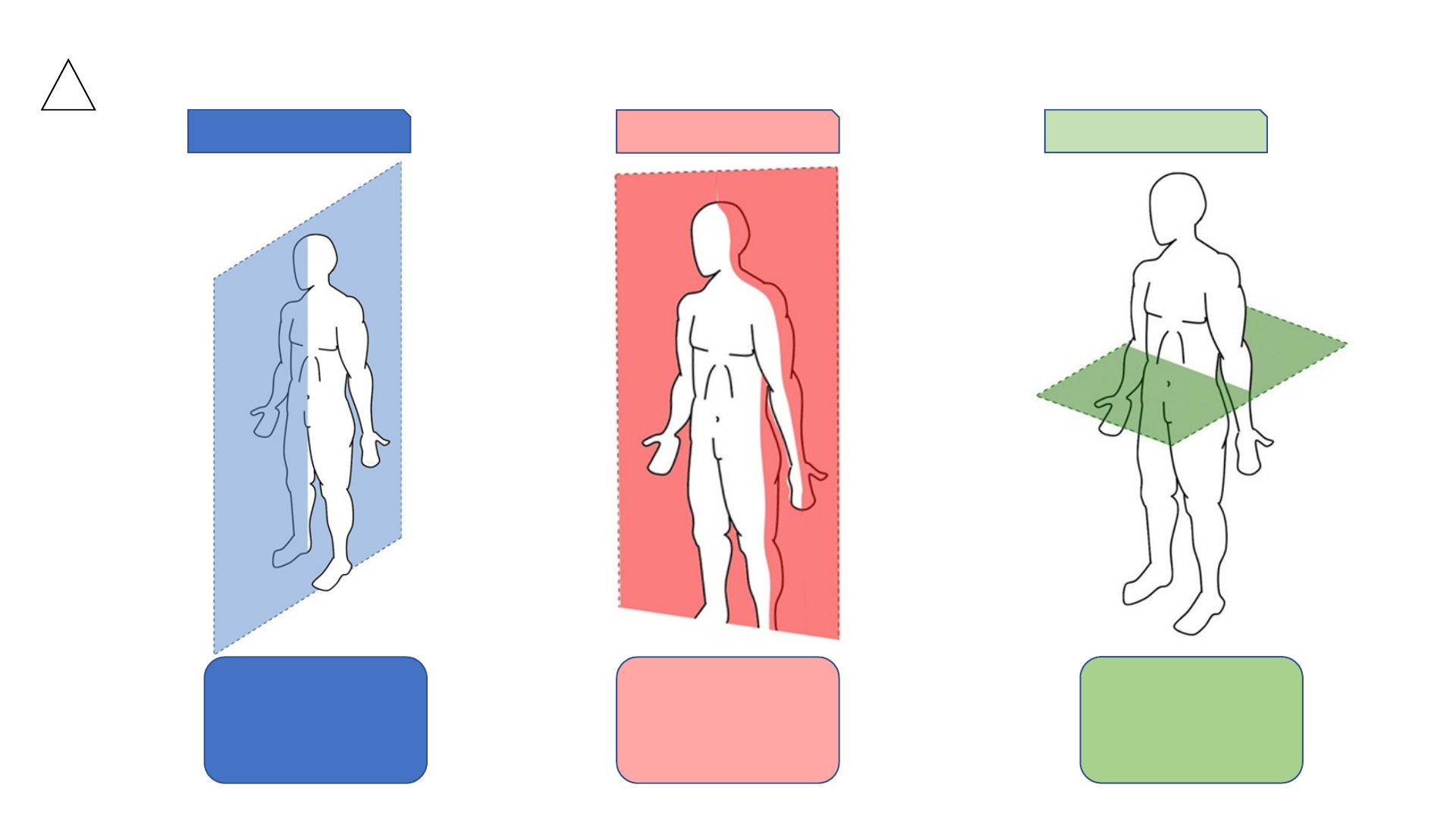 Planos e Eixos de Movimento Plano Sagital Ações no eixo horizontal ou transversal; Movimentos de flexão e extensão. Plano Coronal Ações no eixo anteroposterior; Movimentos de adução e de abdução. Plano Transversal Ações no eixo longitudinal ou vertical; Movimentos de rotação medial (interna) e rotação lateral (externa). 2