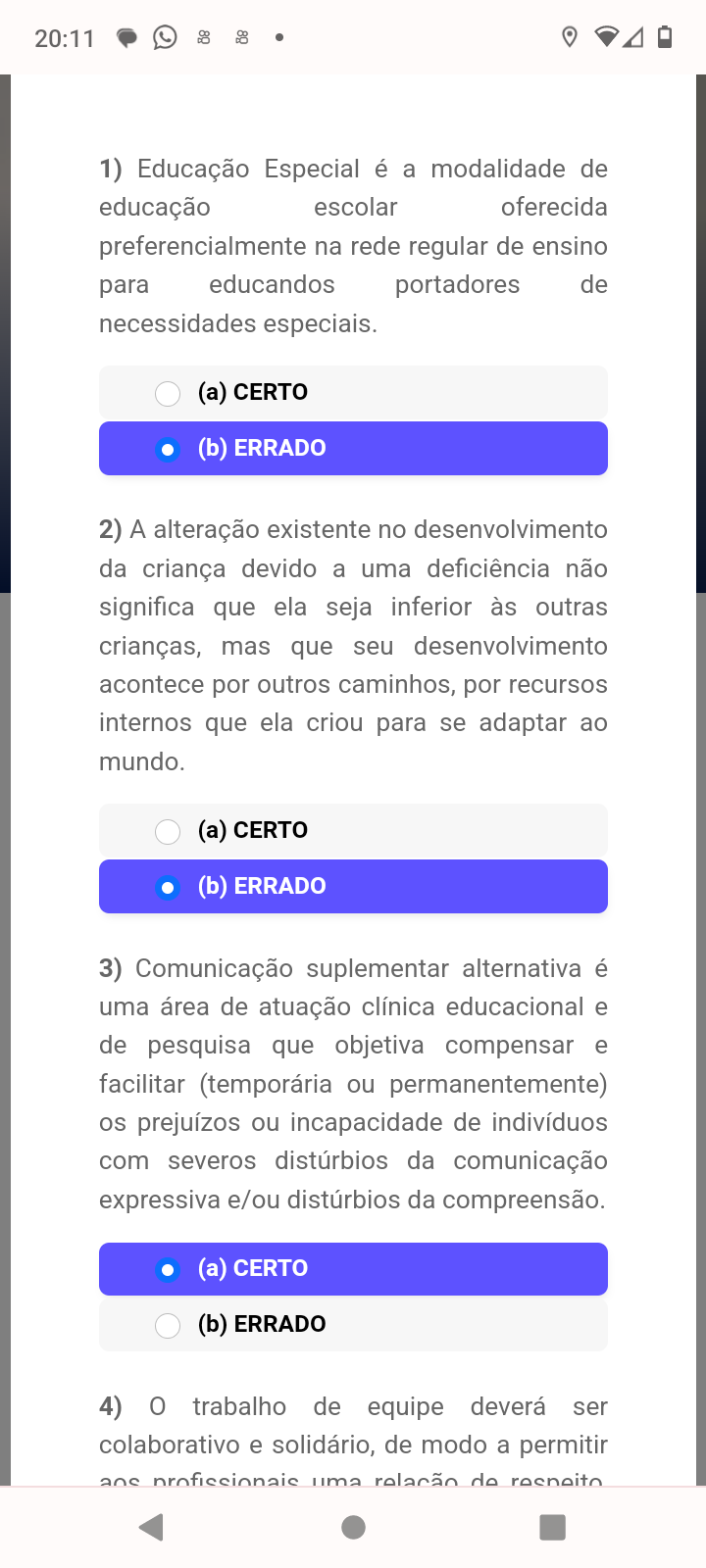 Educação Especial é a modalidade de educação escolar oferecida preferencialmente na rede regular de ensino para educandos portadores de necessidades especiais. (a) CERTO (b) ERRADO