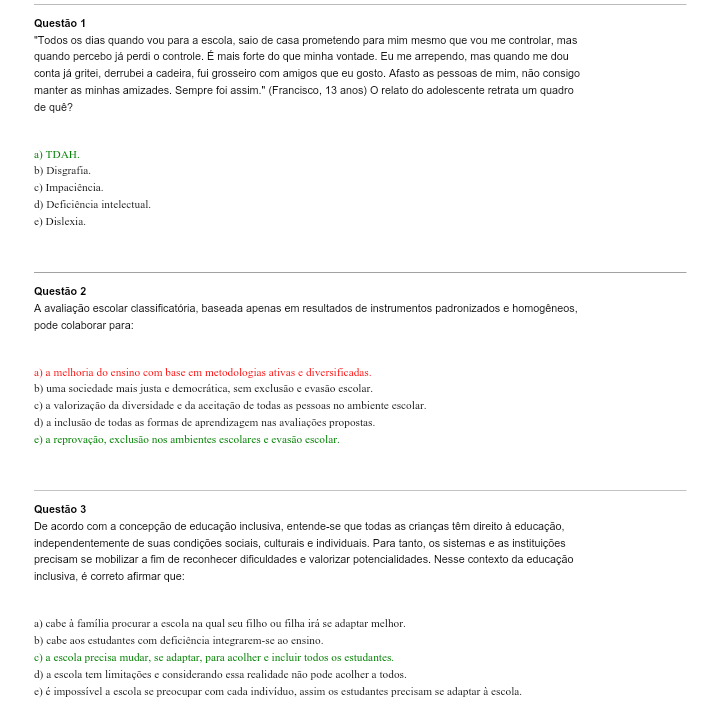 A avaliação escolar baseada apenas em resultados de instrumentos padronizados e homogêneos, pode colaborar para: a) a melhoria do ensino com base em metodologias ativas diversificadas b) uma sociedade mais justa sem exclusão evasão c) a valorização da diversidade da accitação de todas as pessoas no ambiente d) a inclusão de todas as formas de aprendizagem nas avaliações a reprovação, exclusão nos ambientes escolares evasão escolar.