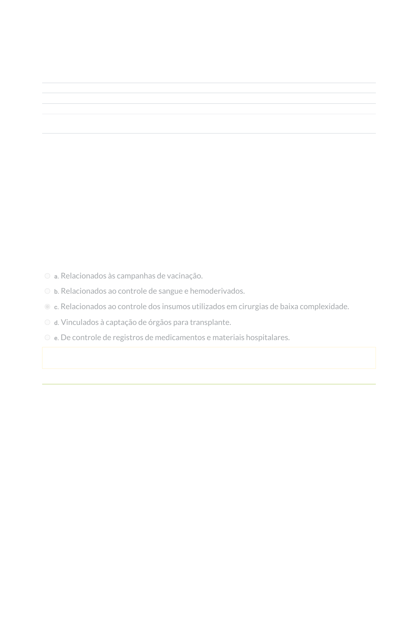 c. Relacionados ao controle dos insumos utilizados em cirurgias de baixa complexidade.