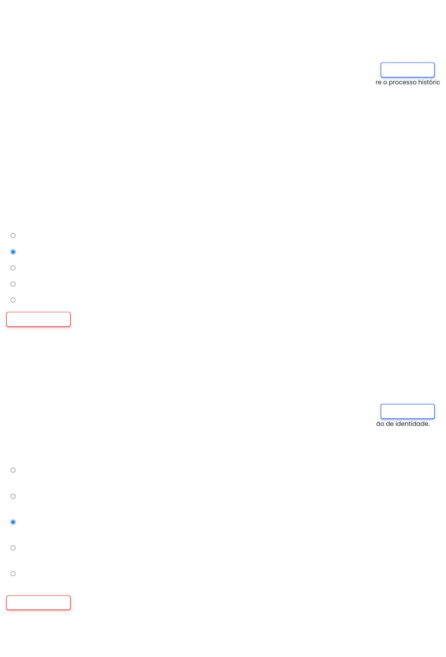 22/06/2023, 13:35 Questionário Online www.unipvirtual.com.br/avaunip/mod/quiz/attempt.php?attempt=1596605&cmid=143121 2/6 Segundo os Parâmetros Curriculares Nacionais (1997), o ensino e a aprendizagem de geografia envolvem as relações entre o processo histórico que regula a formação das sociedades humanas e o funcionamento da natureza, por meio da leitura do espaço geográfico e da paisagem. Dessa forma, o ensino de geografia deve: I - Priorizar o desenvolvimento de noções que os alunos já dominem, sejam porque trazem conhecimentos acumulados de outras etapas do processo de escolarização, seja porque sua inserção na escola é precedida por uma vida em sociedade. II - Considerar que a criança possui uma cultura própria, relaciona-se com o trabalho dos familiares e convive em ambientes onde a natureza está sempre presente. III - Abordar somente temas relacionados ao local de moradia do aluno. IV - Ajudar o aluno a compreender e identificar os tipos de paisagens que compõem o seu lugar de vivência. Está(ão) correta(s): Escolha uma opção: a. I, II, III e IV. b. I, II e IV, somente. c. Apenas II e III. d. I e IV, apenas. e. Somente a IV. Limpar minha escolha “O ensino de história possui objetivos específicos, sendo um dos mais relevantes o que se relaciona à constituição da noção de identidade. Assim, é primordial que o ensino de história estabeleça relações entre identidades individuais, sociais e coletivas, entre as quais se constituem como nacionais.” (PCNEF vol. 5.1, p. 26) Isso significa que: Escolha uma opção: a. O ensino de história exige o conhecimento da humanidade em todos os tempos, para que o aluno estabeleça relações com a atualidade. b. O ensino de história deve garantir, primeiramente, a noção de identidade nacional, e posteriormente se ater às individualidades particulares. c. A noção de identidade deve ser trabalhada nas múltiplas relações que possam ser estabelecidas no tempo e no espaço, para que o educando possa se tornar agente histórico. d. O ensino de história deve garantir a princípio a formação de identidades particulares, para que possa paulatinamente, chegar à noção de identidade nacional. e. O professor deve conceituar e explicar a importância da identidade, para que o aluno possa ter um caráter e uma conduta de acordo com os princípios da convivência social. Limpar minha escolha Marcar questão Questão 1 Ainda não respondida Vale 1,00 ponto(s). Marcar questão Questão 2 Ainda não respondida Vale 1,00 ponto(s). Questão 3 Ainda não respondida http://www.unipvirtual.com.br/avaunip/mod/quiz/attempt.php?attempt=1596605&cmid=143121 http://www.unipvirtual.com.br/avaunip/mod/quiz/attempt.php?attempt=1596605&cmid=143121 22/06/2023, 13:35 Questionário Online www.unipvirtual.com.br/avaunip/mod/quiz/attempt.php?attempt=1596605&cmid=143121 3/6 A abordagem dos conteúdos insere-se numa perspectiva de questionamentos da realidade, organizada no presente, desdobrando-se em conteúdos históricos, que envolvem explicitações e interpretações das ações de diferentes sujeitos, da seleção e organização de fatos e da localização de informações no tempo histórico. As explicações para os acontecimentos implicam, por sua vez, a exposição dos conflitos, das contradições e da diversidade de possibilidade de compreensão dessa realidade. Nesse sentido, é importante que o professor: I) Crie situações rotineiras, nas suas aulas, de atitudes questionadoras diante dos acontecimentos e das ações dos sujeitos históricos. II) Crie condições para que os alunos possam estabelecer relações (de contradição ou identidade) com outros sujeitos e outros acontecimentos do seu próprio tempo e de outros tempos e outros lugares. III) Estabeleça com os alunos explicações e interpretações baseadas no estabelecimento de relações, seja por suas semelhanças, diferenças, proximidades, dependências e continuidades. IV) Estabeleça com os alunos quais os fatos e os sujeitos históricos a serem estudados numa linha cronológica crescente e linear, para que possa construir a noção de progresso. Assinale a alternativa correta: Escolha uma opção: a. I e II. b. I, II e III. c. I, II e IV. d. I, II, III e IV. e. II e IV. Limpar minha escolha Indagando-se sobre o papel e o objetivo do conhecimento histórico, alguns autores afirmam que: “é para fazer com que o aluno produza uma reflexão de natureza histórica; para que pratique um exercício de reflexão que o encaminhe para outras reflexões, de natureza semelhante, em sua vida e não necessariamente só na escola (...)” Segundo o texto acima, pode-se inferir: I) O conhecimento histórico, assimilado pelo aluno durante os anos de escolarização, permite uma análise crítica sobre a realidade que o cerca. II) O conhecimento histórico, assimilado pelo aluno durante os anos de escolarização, não permite uma análise crítica sobre a realidade que o cerca, pois a história trata do passado, do acontecido e não o ajuda a refletir sobre o presente. III) A reflexão de natureza histórica em nada se assemelha aos problemas e dificuldades que o aluno enfrentará em sua vida. IV) O conhecimento histórico e a reflexão crítica são elementos indispensáveis no ensino de história, mas o aluno do Ensino Fundamental não possui pré-requisitos para exercitá-lo na escola, apenas quando completar sua escolarização. Assinale a alternativa correta: Escolha uma opção: a. I e II. b. I. c. II e III. d. IV. Marcar questão p Vale 1,00 ponto(s). Marcar questão Questão 4 Ainda não respondida Vale 1,00 ponto(s). http://www.unipvirtual.com.br/avaunip/mod/quiz/attempt.php?attempt=1596605&cmid=143121 22/06/2023, 13:35 Questionário Online www.unipvirtual.com.br/avaunip/mod/quiz/attempt.php?attempt=1596605&cmid=143121 4/6 e. I e IV. Limpar minha escolha O ensino de história participa na formação global do educando, desenvolvendo determinadas habilidades 