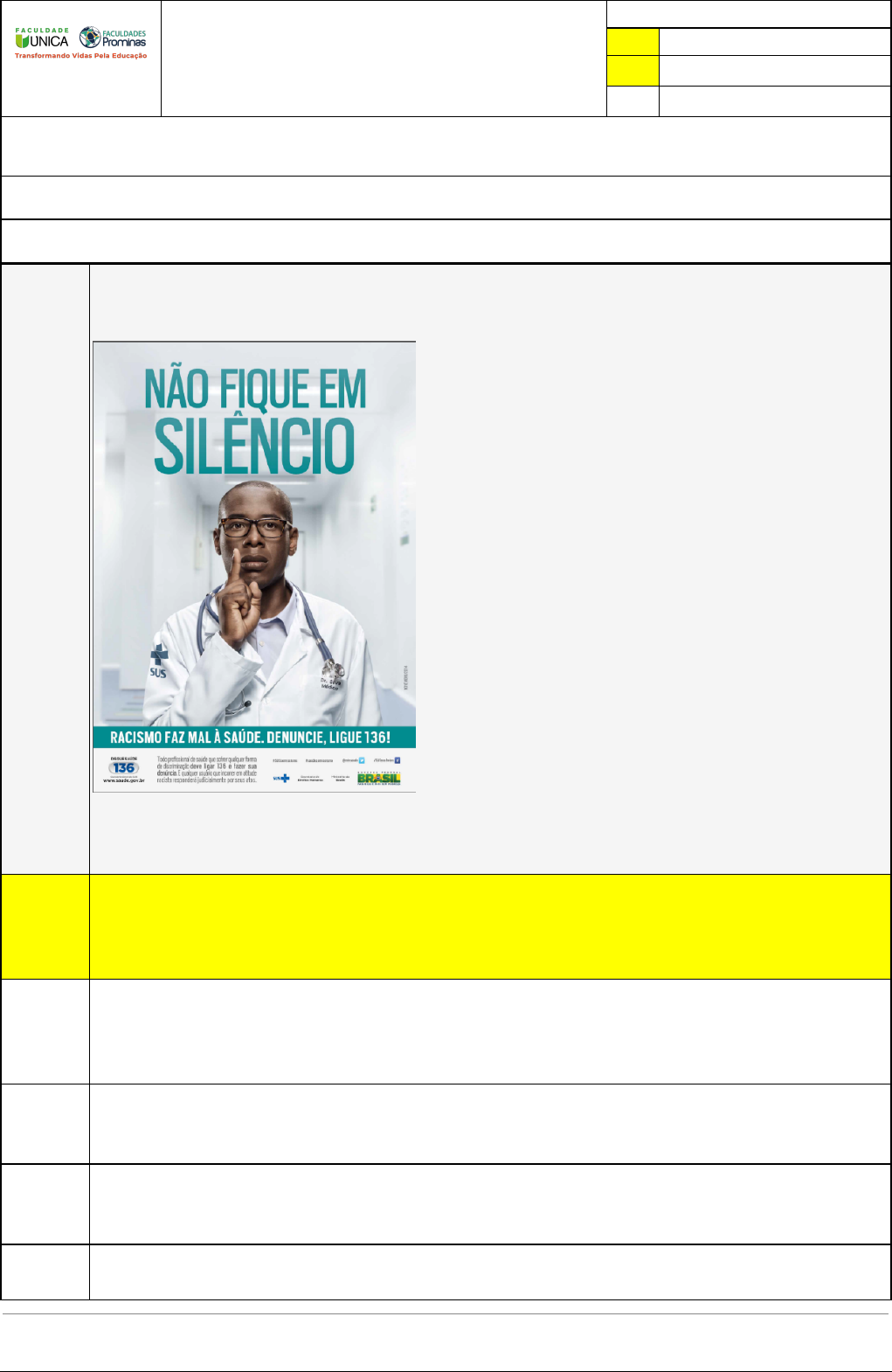 Pincel Atômico - 24/06/2023 15:15:27 1/6 JOSÉ RAIMUNDO SOARES MOTA Exercício Caminho do Conhecimento - Etapa 22 (23085) Atividade finalizada em 22/06/2023 15:58:28 (1042806 / 1) LEGENDA Resposta correta na questão # Resposta correta - Questão Anulada X Resposta selecionada pelo Aluno Disciplina: PRÁTICA PEDAGÓGICA INTERDISCIPLINAR: ANÁLISE E PRODUÇÃO DE TEXTOS [873317] - Avaliação com 8 questões, com o peso total de 1,67 pontos [capítulos - 5] Turma: Segunda Graduação: Segunda Graduação 6 meses - Licenciatura em Letras-Português - Grupo: FPD-MAIO2023 - SGegu0A300523 [93041] Aluno(a): 91209464 - JOSÉ RAIMUNDO SOARES MOTA - Respondeu 6 questões corretas, obtendo um total de 1,25 pontos como nota [359873_1529 40] Questão 001 Veja, a seguir, o cartaz da campanha intitulada “Racismo faz mal à Saúde” que foi produzido pelo Ministério da Saúde e Secretaria de Direitos Humanos: Figura 8: campanha “Racismo faz mal à Saúde” Fonte: Rocha (2016) A campanha se caracteriza por diversas ações e recursos para uma dada finalidade. Logo, é possível afirmar que o cartaz acima integra uma campanha publicitária, visto que: X O cartaz apresenta uma estrutura publicitária: uso de logomarcas (do SUS e Governo Federal); produção intersemiótica (palavras e imagens); mensagem passada de forma breve e objetiva (divulgação de canal de denúncias), em que expressa o próprio nome da campanha (“racismo faz mal à saúde”) O cartaz apresenta uma estrutura publicitária com foco político-partidária: uso de logomarcas (do SUS e Governo Federal); produção intersemiótica (palavras e imagens); mensagem passada de forma breve e objetiva contra o racismo nas unidades de saúde. O cartaz foi produzido na intenção de ser afixado nos corredores de clínicas, ambulatórios e hospitais com a finalidade de informar a importância do silêncio nesses espaços. O cartaz apresenta uma estrutura publicitária, pois se utiliza da ironia, figura de linguagem unicamente usada no meio publicitário, ao recorrer à imagem do “faça silêncio”, comum nas unidades de saúde. O cartaz é um gênero próprio do jornalismo, normalmente utilizado nas emissoras de rádio para fins de divulgação das campanhas publicitárias. Pincel Atômico - 24/06/2023 15:15:27 2/6 [359875_1521 50] Questão 002 Bay Bay Brasil Oi, coração Não dá pra falar muito não Espera passar o avião Assim que o inverno passar Eu acho que vou te buscar Aqui tá fazendo calor Deu pane no ventilador Já tem fliperama em Macau Tomei a costeira em Belém do Pará Puseram uma usina no mar Talvez fique ruim pra pescar Meu amor [...] No Tabaris o som é que nem os Bee Gees Dancei com uma dona infeliz que tem um tufão nos quadris Tem um japonês atrás de mim Eu vou dar um pulo em Manaus Aqui tá quarenta e dois graus O sol nunca mais vai se pôr Eu tenho saudades da nossa canção Saudades de roça e sertão Bom mesmo é ter um caminhão Meu amor Baby bye, bye Abraços na mãe e no pai Eu acho que vou desligar As fichas já vão terminar Eu vou me mandar de trenó pra Rua do Sol, Maceió Peguei uma doença em Ilhéus Mas já estou quase bom Em março vou pro Ceará Com a bênção do meu Orixá Eu acho bauxita por lá Meu amor [...] BUARQUE, Chico. Bay Bay Brasil. Disponível em: <http://www.vagalume.com.br/chico-buarque/bye-bye-brasil.html#ixzz 3nJz7BBE O>. Acesso em: 15 set. 2015. Considerando as caracterizações de gênero textual, depreende-se que o texto apresenta marcas que o caracterizam como pertencente ao gênero piada, tendo em vista o uso do humor em frases como “Tem um japonês atrás de mim”. um monólogo, tendo em vista a ausência da fala da pessoa a quem o interlocutor se dirige, o que permite classificá-lo como pertencente ao gênero carta informal. marcas de oralidade, como as que se observam nos três primeiros versos, o que permite classificá-lo como pertencente exclusivamente ao gênero telefonema. X marcas de oralidade comuns à situação comunicativa do gênero telefonema, ainda que isso seja uma construção ficcional permitida pelo gênero canção. Pincel Atômico - 24/06/2023 15:15:27 3/6 recursos expressivos comuns ao universo da poesia, como hipérboles e metáforas, o que permite caracterizá-lo como pertencente ao gênero bilhete. [359874_1521 48] Questão 003 Limites das cotas As regras anunciadas pela UnB (Universidade de Brasília) para seu programa de cotas raciais para negros e pardos dão bem a medida da inconsistência desse sistema. Os candidatos que pretendem beneficiar-se das cotas serão fotografados "para evitar fraudes". Uma comissão formada por membros de movimentos ligados à questão da igualdade racial e por "especialistas no tema" decidirá se o candidato possui a cor adequada para usufruir da prerrogativa. Para além do fato de que soa algo sinistra a criação de comissões encarregadas de avaliar a "pureza racial" de alguém, faz-se oportuno lembrar que, pelo menos para a ciência, o conceito de raça não é aplicável a seres humanos. Os recentes avanços no campo da genômica, por exemplo, já bastaram para mostrar que pode haver mais diferenças genéticas entre dois indivíduos brancos do que entre um branco e um negro. (...) Esta Folha se opõe à política de cotas por entender que nenhuma forma de discriminação, nem mesmo a chamada discriminação positiva, pode ser a melhor resposta para o grave problema do racismo. A filosofia por trás das cotas é a de que se pode reparar uma injustiça através de outra, manobra que raramente dá certo. (...) (Folha de S. Paulo. 22/03/2004, p. A-2) No verbete editorial, do dicionário Houaiss, lê-se a seguinte definição: Artigo em que se discute uma questão, apresentando o ponto de vista do jornal, da empresa jornalística ou do redator-chefe. Baseando-se nessa definição, é correto afirmar que o texto “Limites das cotas” é, de fato, um editorial, uma vez que se trata de uma matéria jornalística
