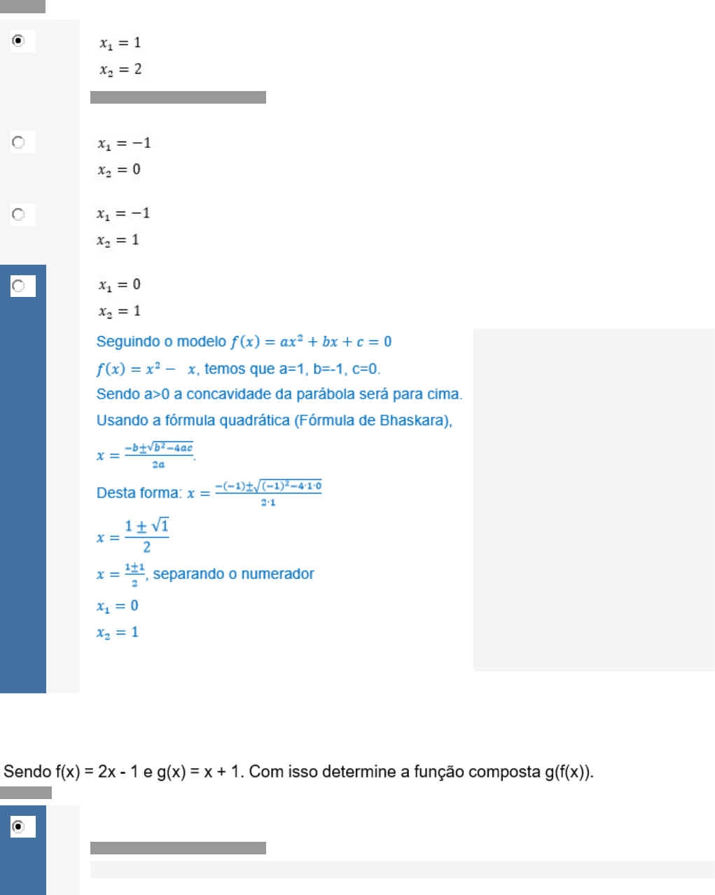 Dada função quadrática f(x) = x² - x, calcule as raízes.
