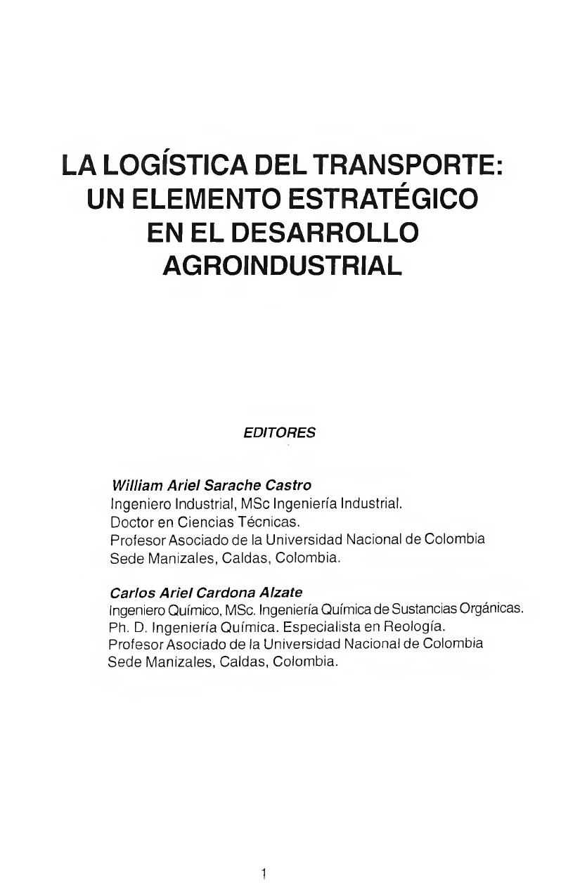 Palabras Claves: Logística, Transporte, Agroindustria,