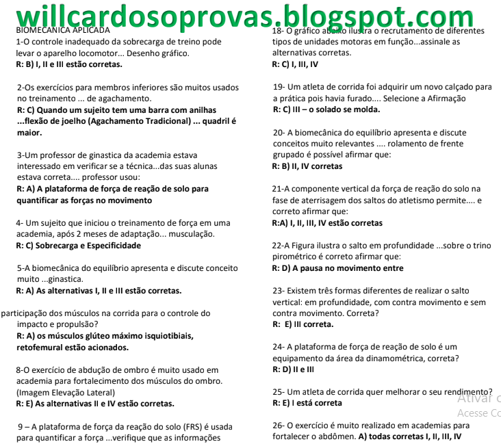 I - Os músculos glúteo máximo, isquiotibiais e retofemural estão acionados. II - O exercício de abdução de ombro é muito usado em academia para fortalecimento dos músculos do ombro (Imagem Elevação Lateral). III - A plataforma de força de reação do solo é um equipamento da área da dinamometria. IV - Um atleta de corrida pode melhorar seu rendimento ativando todas as alternativas. a) Todas as alternativas estão corretas. b) Apenas I, II e III estão corretas. c) Apenas II e IV estão corretas. d) Apenas II e III estão corretas. e) Apenas I está correta.