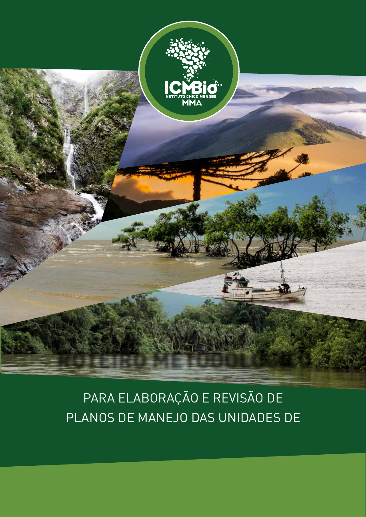 PARA ELABORAÇÃO E REVISÃO DE PLANOS DE MANEJO DAS UNIDADES DE CONSERVAÇÃO FEDERAIS ROTEIRO METODOLÓGICO Instituto Chico Mendes de Conservação da Biodiversidade - ICMBio República Federativa do Brasil Michel Miguel Elias Temer Lulia – Presidente Ministério do Meio Ambiente (MMA) Edson Gonçalves Duarte – Ministro Instituto Chico Mendes de Conservação da Biodiversidade (ICMBio) Paulo Henrique Marostegan e Carneiro – Presidente Diretoria de Criação e Manejo de Unidades de Conservação (DIMAN) Ricardo Brochado Alves da Silva – Diretor interino Coordenação Geral de Criação, Planejamento e Avaliação de Unidades de Conservação (CGCAP) Bernardo Ferreira Alves de Brito – Coordenador Geral interino Coordenação de Elaboração e Revisão de Planos de Manejo (COMAN) Ana Rafaela D'Amico – Coordenadora ROTEIRO METODOLÓGICO PARA ELABORAÇÃO E REVISÃO DE PLANOS DE MANEJO DAS UNIDADES DE CONSERVAÇÃO FEDERAIS ORGANIZADORES Ana Rafaela D'Amico – COMAN Erica de Oliveira Coutinho – COMAN Luiz Felipe Pimenta de Moraes – COMAN AUTORES Ana Rafaela D’Amico – COMAN Andréa Ximenes Mitozo – COMAN Carina Tostes Abreu – COMAN Carolina Fritzen – COMAN Cirineu Jorge Lorensi – COMAN Denis Helena Rivas – COMAN Desireé Cristiane Barbosa da Silva – COMAN Edilene Oliveira de Menezes – COMAN Eduardo Henrique de Menezes Silva Barros – CR 4 (equipe ampliada – COMAN) Erica de Oliveira Coutinho – COMAN Leide Jane Vieira Abrantes – COMAN Lílian Leticia Mitiko Hangae – APA de Cairuçu (equipe ampliada – COMAN) Lourdes Maria Ferreira – COMAN Luiz Felipe Pimenta Moraes – COMAN Maria Goretti de Melo Pinto – COMAN Rodolpho Antunes Mafei – COMAN Rodrigo Bacellar Mello – Rebio União (equi- pe ampliada – COMAN) COLABORADORES Andrea Von Der Heyde Lamberts – Resex Marinha do Pirajubaé (equipe ampliada – COMAN) Andrei Tiego Cunha Cardoso – APA Costa dos Corais Antônio Edílson de Castro Sena – CR 3 (equipe ampliada – CO- MAN) Arlindo Gomes Filho – CR 6 (equipe ampliada – COMAN) Augusta Rosa Gonçalves – Flona de Pacotuba (equipe ampliada – COMAN) Caio Márcio Paim Pamplona – NGI Antonina-Guaraqueçaba (equi- pe ampliada – COMAN) Carlos Henrique Velasquez Fernandes – DIMAN Cibele Munhoz Amato – Parna do Iguaçu (equipe ampliada – CO- MAN) Daniel Castro Corrêa – CGCAP Daniel de Miranda Pinto de Castro – APA Delta do Parnaíba (equi- pe ampliada – COMAN) Flávio Zanchetti – Flona de Ibirama (equipe ampliada – COMAN) Inês de Fátima Oliveira Dias – COMAN Leila Sena Blos – CR 2 (equipe ampliada – COMAN) Luciana Nars – Parna da Serra da Capivara Maria Jociléia Soares da Silva – Flona do Tapajós Mariusz Antoni Szmuchrowski – DMAG Mônia Laura Faria Fernandes – CR 10 (equipe ampliada – COMAN) Ofélia de Fátima Gil Willmersdorf – Flona de Ipanema (equipe ampliada – COMAN) Paulo Santi Azevedo da Silva – Parna de São Joaquim Rafael Suertegaray Rossato – Parna do Descobrimento (equipe ampliada – COMAN) Ricardo Brochado Alves da Silva – DIMAN Roteiro metodológico para elaboração e revisão de planos de manejo das unidades de conser- vação federais (2018: Brasília, DF) / Organizadores: Ana Rafaela D'Amico, Erica de Oliveira Coutinho e Luiz Felipe Pimenta de Moraes. Brasília: Instituto Chico Mendes de Conservação da Biodiversidade: ICMBio, 2018. 208 p. ISBN 978-65-5024-002-8 1. Roteiro metodológico. 2. Plano de manejo. 3. Unidade de conservação. I. Instituto Chico Mendes de Conservação da Biodiversidade. II. Planejamento de unidades de conservação. III. Título. Catalogação na fonte – Biblioteca do ICMBio | © INSTITUTO CHICO MENDES DE CONSERVAÇÃO DA BIODIVERSIDADE, 2018. AGRADECIMENTOS Ao Programa Parceria para a Conservação da Biodiversidade da Amazônia, financiado pela Agência dos Estados Unidos para Desenvolvimento Internacional (USAID) e Instituto Chico Mendes de Conser- vação da Biodiversidade (ICMBio). Aos colegas das Diretorias, Coordenações e Divisões do ICMBio Sede, Coordenações Regionais e Cen- tros de Pesquisa que estiveram presentes nos momentos de discussão e construção da metodologia e diretrizes. Às equipes das Unidades de Conservação que contribuíram com o aperfeiçoamento da metodologia e diretrizes, em especial do Parque Nacional de São Joaquim, Reserva Extrativista Marinha de Sou- re, Parque Nacional do Iguaçu, Área de Proteção Ambiental de Cairuçu e Área de Proteção Ambiental Costa dos Corais. Aos representantes do Serviço de Parques dos Estados Unidos (NPS), em especial à Barbara J. John- son, Chris Church, Erin K. Flanagan, Doug Wilder, Neal Jander, Sarah Conlin e Rafael Wood. Aos representantes do Serviço Florestal dos Estados Unidos (USFS), em especial à Suelene Couto, Michelle A. Zweed, Brad Cownover, Charles K. Brewer e Tinelle Bustam. Às Universidades Parceiras: Universidade Estadual do Colorado e Universidade de Montana. PROJETO GRÁFICO E DIAGRAMAÇÃO: Artifície Design - Kátia Ozório ILUSTRAÇÕES: Inspire Comunicação - Erica Bettiol FOTOS DE CAPA: @Anders Duarte, Raphael Sombrio, Marcus Zilli e Alessandro Carbone. É com enorme honra e satisfação que apresenta- mos o novo Roteiro Metodológico para Elabora- ção e Revisão de Planos de Manejo das Unidades de Conservação Federais. Trabalho feito por mui- tas mãos e que se pauta nas experiências de des- de quando as unidades eram geridas pelo IBAMA, IBDF, SEMA... A criação do ICMBio deu um foco muito claro para a implantação das unidades de conservação. A organização matricial da instituição, com um desenho que busca espelhar a “vida real” destes territórios, visa atender à complexidade de uma gestão que dever ser ao mesmo tempo padroni- zada e flexível, em um país com características de continente. Nestes 11 anos, a instituição tem incorporado, adaptado e desenvolvido uma série de técnicas e ferramentas que trazem dinamic