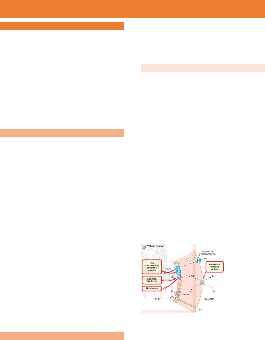 DISTÚRBIO HIDROELETROLÍTICO AUTOR: PEDRO V.F. MEDRADO INTRODUÇÃO - A respeito do sódio: · É o íon mais importante do espaço extracular, responsável pela manutenção do volume do LEC · Possui uma estreita relação entre a água e o sódio · Valor normal – Na+ 135 a 145 mEq/L - O equilíbrio hidroeletrolítico pode ser feito pelo sistema endócrino, principalmente por dois parâmetros: · Regulação de volume pelo SRAA · Osmolaridade mediada pelo ADH Entendendo o papel do ADH - A vasopressina ou hormônio anti-diurético (ADH) é um hormônio hipotalâmico secretado pela neuro-hipófise com ação de reabsorção de água nas porções finais do néfron. - Quais os estímulos que liberam ADH? · Aumento da osmolaridade plasmática – regulação osmótica · Hipovolemia e Hipertensão – regulação não osmótica - O ADH age em 3 tipos de receptores são V1a, V1b e V2 · V1a expresso no fígado, células endoteliais e vários outros tecidos periféricos, sendo o mais comum no cérebro · V1b expresso em células corticotróficas pituitárias anterior, cérebro, rim, timo, coração, pulmão, baço e útero · V2 expressão renal – é a mais importante, estando acoplada a uma proteína G o que estimula a produção de AMPc - Função primordial nos receptores V2, com efeito antidiurético por promover reabsorção de H20 livre nos túbulos distal e túbulos coletores do rim. Entendendo o papel do SRAA - Renina – cliva o angiotensinogênio em angiotensina I · Controlada pela: · Pressão sanguínea renal · Concentração de sódio do fluido tubular · Hemorragia, desidratação e hipocalemia aumentam os níveis de Renina. · Aumento do consumo de sal, vasoconstrição periférica e hipercalemia diminui os níveis de Renina. Aldosterona - É um hormônio secretado na zona glomerulosa da glândula adrenal derivado do colesterol. - Secreção regulada · Próprio SRAA · Potássio – aumenta diretamente a secreção da aldosterona pelo córtex da adrenal. Por sua vez a aldosterona aumenta a excreção renal de K, o que reduz os níveis de K sérico. - A aldosterona é crucial para conservação de sódio no rim e glândulas salivares – transporte ativo de Na+ e excreção de K+. · Aumento de canais ativos de Na+ · Aumenta a ação e número de bombas de Na+/K+ - Indiretamente essas ações, a aldosterona aumenta a reabsorção de água, o que auxilia no controle da volemia. O papel aqui da relação entre a aldosterona e os distúrbios ácido-base, residem no seu papel indireto, e mais diretamente dos níveis de Na+ sérico no trocador Na+/H+. - Hiperaldosteronismo – hipernatremia, hipocalemia · Por exemplo – Síndrome de Conn (tumor de glândula adrenal). - Hipoaldosteronismo – hiponatremia, hipercalemia · Por exemplo – Doença de Addison Diuréticos - Furosemida – inibe os canais de Na+/K+/Cl- · Intoxicação por furosemida – HipoNa, HipoK e alcalose · Síndrome de Bartter – hipovolemia, hipoK + hiperaldo, hipoNa, hipoCa (hipercalciúria) e hipoMg. - Tiazídicos – inibe a bomba de Na+/Cl- · Intoxicação por tiazídicos – HipoNa, HipoK e alcalose · Síndrome de Gitelman HIPONATREMIA - É o distúrbio HE mais comum em pacientes internados, tendo como perfil aquele paciente: mulher idosa em polifarmácia. - Conceitualmente – Na+<135mEq/L - Fatores de risco · Idade >75 anos · Mulheres · Uso de múltiplos medicamentos · Múltiplas comorbidades · Insuficiência renal - Nada mais é do que um déficit de sódio em relação à água corporal, em outras palavras os líquidos corporais estão diluídos e as células intumescidas devido a menor osmolaridade do LEC. - Ocorrem por: · Perda excessiva de sódio – dieta com baixo teor de sódio, vômito, diarreia, drenagem nasogástrica, sudorese excessiva, terapia diurética prolongada, queimaduras nefropatia · Hiponatremia dilucional – administração excessiva, ingestão compulsiva, hiperglicemia, aldosterona reduzida e SIADH - A hiponatremia é o DHA mais comum em pacientes hospitalizados incidência de 15-30% - Associados a desfechos desfavoráveis – necessidade de internamento em UTI, hospitalização prolongada e de maior custo, transferência para abrigos e mortalidade. - Taxa de mortalidade em pacientes com hiponatremia é 17,9% maior - Causalidade direta ou marcador de gravidade de doença de base?! · Associado como marcador de desfecho, mas não implica numa causalidade de desfecho. - Classificação · Leve – Na+ 130 a 135 mEq/L · Moderada – Na+ 121 a 129 mEq/L · Grave – Na+ sérico de 120 mEq/L ou menos - Sintomas ausentes – pacientes são frequentemente assintomáticos, particularmente se a hiponatremia é crônica e de gravidade leve ou moderada (Na>120mEq/L) · Na grande maioria não requer reposição aqueles assintomáticos · Agudo costuma causar mais sintomas - Desfechos adversos associado com leve a moderada hiponatremia crônica – não implica numa associação de causa-efeito, apenas uma associação · Declínio e prejuízo cognitivo · Quedas · Fraturas e osteoporose · Instabilidade postural · Mortalidade · Calcium-foming Kidney stones Quadro clínico - Assintomático – na maioria das vezes (até a concentração de 120-125mEq/L) - Sinais e sintomas nos casos graves, são: · Inespecíficos · Primariamente neurológicos · Relacionados à rapidez na mudança da concentração plasmática do sódio - Sintomas mais relacionados a quadros neurológicos – letargia, apatia, desorientação, câimbras musculares, anorexia, náuseas e agitação · Mais grave - Sinais – sensório anormal, reflexos profundos deprimidos, respiração de Cheyne-Stokes, hipotermia, reflexos patológicos, paralisia pseudobulbar e convulsões Diagnóstico diferencial - Pseudo Hiponatremia – hipertrigliceridemia, mieloma múltiplo · Sódio corporal normal, apenas alterou o intravascular por conta de lipídios e/ou proteínas - Medicamentos · Diuréticos tiazídicos