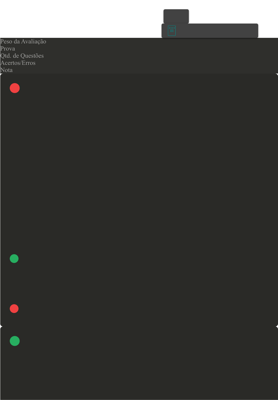 Prova Impressa GABARITO | Avaliação Final (Objetiva) - Individual (Cod.:823934) Peso da Avaliação 3,00 Prova 66010628 Qtd. de Questões 12 Acertos/Erros 8/4 Nota 8,00 "Em casos de lesões cerebrais, decorrentes de várias causas, a extensão e o impacto são avaliados por exames neurológicos, tomografia, ressonância magnética e avaliação neuropsicológica" (TABAQUIM; LIMA; CIASCA, 2012, p. 237). Sendo assim, associe os itens, utilizando o código a seguir: I- Lóbulo Occiptal. II- Área de Broca. ( ) Fica entre o lóbulo temporal e o lóbulo parietal e acima do cerebelo, se relaciona ao complexo fenômeno perceptivo da visão. ( ) Suas estruturas se relacionam com a percepção visual, mais especificamente que integram aspectos óculo-motores. ( ) Fica no hemisfério esquerdo, mais especificamente na parte inferior do lobo frontal. ( ) É responsável pela expressão da linguagem, sobretudo no que diz respeito à parte motora da linguagem verbal. Assinale a alternativa que apresenta a sequência CORRETA: FONTE: TABAQUIM, Maria de Lourdes Merighi; LIMA, Marlene Peres de; CIASCA, Sylvia Maria. Avaliação neuropsicológica de sujeitos com lesão cerebral: uma revisão bibliográfica. Rev. psicopedag., São Paulo, v. 29, n. 89, p. 236-243, 2012. Disponível em: http://pepsic.bvsalud.org/scielo.php?script=sci_arttext&pid=S0103- 84862012000200007&lng=pt&nrm=iso. Acesso em: 26 out. 2020. A I - I - II - II. B II - II - I - I. C I - II - II - I. D II - I - I - II. Para Serra-Pinheiro (et al, 2004) o TOD e o transtorno de conduta são correlacionados, porém, uma parte significativa de pessoas com TOD não desenvolve o transtorno de conduta. Tendo em vista o diagnóstico de TOD, classifique V para as afirmações verdadeiras e F para as falsas: ( ) Pessoas com TOD tendem ser irritáveis e a fazer coisas deliberadamente para aborrecer outras pessoas. ( ) Algumas das características do TOD são: discutir com adultos ou figuras de autoridade e padrão de humor raivoso. VOLTAR A+ Alterar modo de visualização 1 2 ( ) O TOD pode se manifestar por meio de comportamento questionador, atitude desafiante, índole vingativa e por encolerizar-se frequentemente. ( ) É dispensável verificar os diagnósticos diferenciais na avaliação médica que busca identificar o diagnóstico do TOD. Assinale a alternativa que apresenta a sequência CORRETA: FONTE: SERRA-PINHEIRO, Maria Antonia et al. Transtorno desafiador de oposição: uma revisão de correlatos neurobiológicos e ambientais, comorbidades, tratamento e prognóstico. Rev. Bras. Psiquiatr., São Paulo, v. 26, n. 4, p. 273-276, dez. 2004. Disponível em: http://www.scielo.br/scielo.php?script=sci_arttext&pid=S1516- 44462004000400013&lng=en&nrm=iso. Acesso em: 20 out. 2020. A F - V - F - V. B V - F - V - V. C F - F - V - F. D V - V - V - F. No que se refere à técnica Mindfulness, Siegel e Barros (2017, p. 1381) elucidam que: “Há exercícios imaginativos sobre a expansão da consciência. O texto também apresenta alguns desenhos de posições deitadas, flexão e extensão das pernas, deslizamento das mãos; movimento circular dos ombros; postura do gato; movimento do 8, fechando com postura de meditação”. Sobre a Mindfulness, assinale a alternativa INCORRETA: FONTE: SIEGEL, P.; BARROS, N. F. de. Manual Práctico. Mindfulness. Curiosidad y aceptación. Ciência & Saúde Coletiva [on-line], v. 22, n. 4, p. 1381-1382, 2017. Disponível em: https://doi.org/10.1590/1413-81232017224.20422015. Acesso em: 3 maio 2022. A Há exercícios dessa técnica que podem ser feitos entre pais e filhos. Eles auxiliam na atenção, foco e relaxamento das crianças. B Esse tipo de intervenção feita em crianças já se encontra embasada em resultados conclusivos e consistentes. C Esse treinamento realizado em crianças tem revelado maior apresentação de comportamentos pró-sociais. D Ao aplicar essa técnica, é ideal que o pai motive a criança a perceber qualidades das coisas recordadas, sem julgá-las. 3 Segundo o estudo de Braun e Nunes (2015), o desafio diante da deficiência intelectual e da formação de conceitos está em conhecermos as possibilidades para o aluno conservar as informações e conhecimentos adquiridos, para seguir adiante. Quando favorecidas situações de ensino, com apoio e recursos que lhe beneficiavam a organização do pensamento, como o uso de uma tabela de multiplicação de 1 a 10 para consulta, ou o uso da calculadora para operar grandes números, Ian (nome fictício de uma criança com deficiência intelectual) evoluía, significativamente, com maior autonomia na elaboração das propostas. Sobre o exposto, classifique V para as sentenças verdadeiras e F para as falsas: ( ) As causas mais comuns da deficiência intelectual são: condições genéticas, problemas durante a gravidez, problemas ao nascer, problemas de saúde. ( ) A maioria das crianças com deficiência intelectual consegue aprender a fazer muitas coisas úteis para a sua família, escola e sociedade. ( ) Todas crianças com deficiência intelectual podem aprender algo para sua utilidade e bem-estar da comunidade em que vivem. ( ) Geralmente, crianças com deficiência intelectual precisam de mais tempo e de apoios para lograrem sucesso no processo de aprendizagem. Assinale a alternativa que apresenta a sequência CORRETA: FONTE: BRAUN, Patricia; NUNES, Leila Regina d'Oliveira de Paula. A formação de conceitos em alunos com Deficiência Intelectual: o caso de Ian. Rev. bras. educ. espec., Marília, v. 21, n. 1, p. 75- 92, mar. 2015. A F - V - F - V. B V - V - V - V. C V - F - F - F. D F - F - V - F. “A ideia em Rousseau, de que o problema da virtude não é uma questão de esclarecimento e conhecimento, o colocará em posição diferenciada dos iluministas e isso o conduzirá aos movimentos que transformaram a cultura moderna” (HERMANN, 2013, p. 39). Sobre Rousseau, assinale a alternativa CORRETA: FONTE: HERMANN, Nadja. Virtude e amor em Rousseau. His