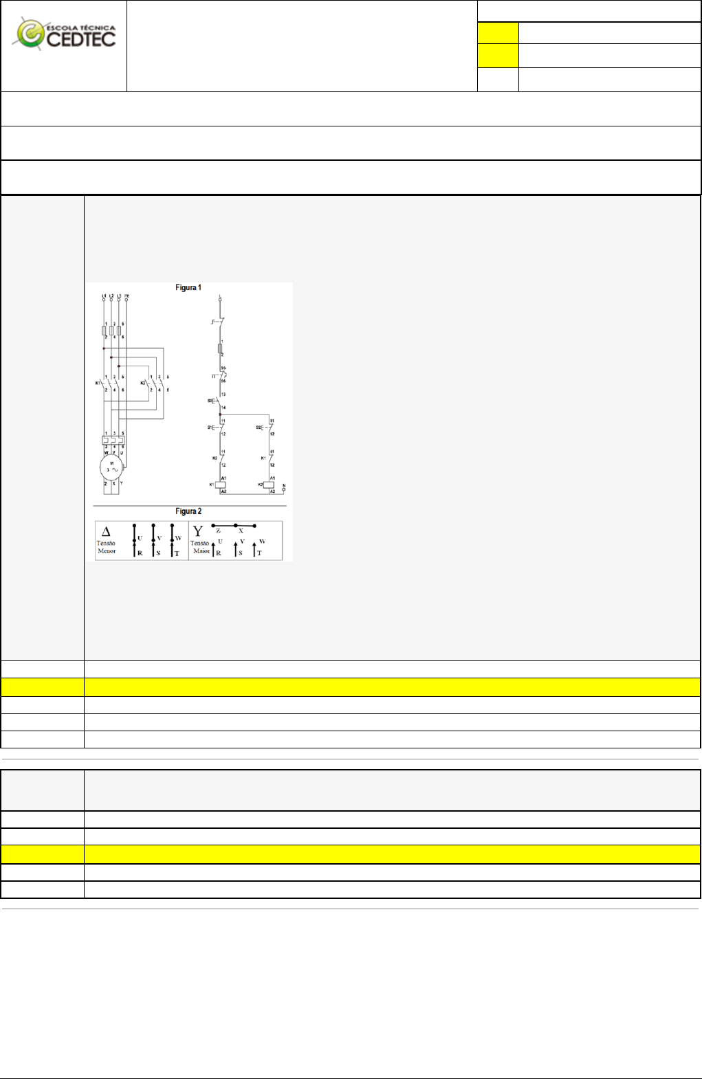 Pincel Atômico - 04/07/2023 09:46:37 1/2 EDERSON GUEDES DOS ANJOS Exercício Caminho do Conhecimento - Etapa 13 (24429) Atividade finalizada em 28/06/2023 15:20:05 (955206 / 1) LEGENDA Resposta correta na questão # Resposta correta - Questão Anulada X Resposta selecionada pelo Aluno Disciplina: COMANDOS ELÉTRICOS [492944] - Avaliação com 4 questões, com o peso total de 6,50 pontos [capítulos - 116] Turma: Curso Técnico: Refrigeração e Climatização - Grupo: BOLSATECNICA/22 - N.REF.CLIM.BolsaTécnicaA [70826] Aluno(a): 91342511 - EDERSON GUEDES DOS ANJOS - Respondeu 4 questões corretas, obtendo um total de 6,50 pontos como nota [349959_165242] Questão 001 Na figura, é apresentado um esquema de ligação para partida de um motor trifásico. O motor possui seis terminais (U, V, W, Z, X e Y) e as respectivas formas de ligação são apresentadas na Figura 2. Dadas as afirmativas quanto ao funcionamento desse esquema, I. O esquema trata de uma partida direta temporizada a contator. II. Os contatos auxiliares K1 (11;12) e K2 (11;12) fazem o papel do selo. III. O esquema apresenta erros de projeto quanto aos contatos das botoeiras S0 (13;14), S1 (11;12) e S2 (11;12), que deveriam ser normalmente fechada, normalmente aberta e normalmente aberta, respectivamente. IV. O contator K2 tem o mesmo papel do contator K1, ou seja, foi instalado de forma redundante como uma medida de segurança em caso de falha de K1. verifica-se que está(ão) correta(s) apenas: Dadas as afirmativas quanto ao funcionamento desse esquema 1. O esquema trata de uma partida direta temporizada a contator. 2. Os contatos auxiliares K1 (11;12) e K2 (11;12) fazem o papel do selo. 3. O esquema apresenta erros de projeto quanto aos contatos das botoeiras S0 (13;14), S1 (11;12) e S2 (11;12), que deveriam ser normalmente fechada, normalmente aberta e normalmente aberta, respectivamente. 4. O contator K2 tem o mesmo papel do contator K1, ou seja, foi instalado de forma redundante como uma medida de segurança em caso de falha de K1. Verifica-se que está(ão) CORRETO (s) apenas: IV X III I e II II, III e IV I, II e IV [349960_165229] Questão 002 Na partida de motores elétricos, a corrente pode atingir valores elevados, o que pode causar queda de tensão na rede. Esse efeito não é desejado, portanto, uma das técnicas para reduzir a corrente de partida de motores é a utilização de: Transformador de potencial Banco de capacitores X Partida Estrela-Triângulo Limitador de sobre-excitação elétrica Transformador defasador. Pincel Atômico - 04/07/2023 09:46:37 2/2 [349959_165234] Questão 003 Identifique o tipo de chave de partida referente aos circuitos de potência e de comando a seguir. Chave de partida estrela-triângulo Chave de partida compensadora Chave de partida direta X Chave de partida com reversão Chave de partida com sincronismo [349961_165233] Questão 004 A alta corrente proveniente da partida de motores pode causar queda de tensão na rede e esta redução não é conveniente. O elemento utilizado para minimizar/eliminar esse efeito indesejável durante a partida, é: O transformador defasador O compensador síncrono O limitador de subexcitação X A chave estrela-triângulo O limitador de sobre-excitação