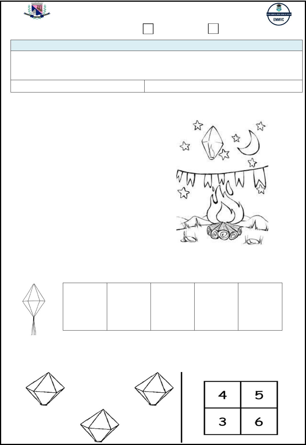 ESCOLA MUNICIPAL MARINA VIANNA DE CASTILHO “Educar é um ato de amor!” ATIVIDADE DE SALA PARA CASA PROJETO – VIDA SAUDÁVEL ALUNO (A): DATA: ____/____/2023 EDUCAÇÃO INFANTIL – 1º PERÍODO 1. COM AJUDA DE UM ADULTO, CANTE A CANTIGA ABAIXO. CAI CAI BALÃO CAI CAI BALÃO, CAI CAI BALÃO AQUI NA MINHA MÃO! NÃO CAI NÃO, NÃO CAI NÃO, NÃO CAI NÃO CAI NA RUA DO SABÃO! ________________________________________________________________________________________ 2. COMPLETE A PALAVRA ABAIXO COM AS LETRAS QUE ESTÃO FALTANDO. _________________________________________________________________________________________ 3. CONTE OS BALÕES ABAIXO E MARQUE O NÚMERO CORRESPONDENTE. B L Ã ESCOLA MUNICIPAL MARINA VIANNA DE CASTILHO “Educar é um ato de amor!” ATIVIDADE DE SALA PARA CASA PROJETO – VIDA SAUDÁVEL ALUNO (A): DATA: ____/____/2023 EDUCAÇÃO INFANTIL – 1º PERÍODO 1. A TURMA DA MÔNICA PREPAROU DOCES DELICIOSOS PARA A FESTA JUNINA! VAMOS CONTAR QUANTOS DOCES TÊM EM CADA BANDEJA? ESCOLA MUNICIPAL MARINA VIANNA DE CASTILHO “Educar é um ato de amor!” ATIVIDADE DE SALA PARA CASA PROJETO – VIDA SAUDÁVEL ALUNO (A): DATA: ____/____/2023 EDUCAÇÃO INFANTIL – 1º PERÍODO 1. CIRCULE E PINTE O MAIOR ELEMENTO DE CADA CONJUNTO. ESCOLA MUNICIPAL MARINA VIANNA DE CASTILHO “Educar é um ato de amor!” ATIVIDADE DE SALA PARA CASA PROJETO – VIDA SAUDÁVEL ALUNO (A): DATA: ____/____/2023 EDUCAÇÃO INFANTIL – 1º PERÍODO 1. NO SACO DE PIPOCAS PINTE AS LETRAS QUE COMPÕEM SEU NOME. ESCOLA MUNICIPAL MARINA VIANNA DE CASTILHO “Educar é um ato de amor!” ATIVIDADE DE SALA PARA CASA PROJETO – VIDA SAUDÁVEL ALUNO (A): DATA: ____/____/2023 EDUCAÇÃO INFANTIL – 1º PERÍODO 1. VAMOS COLORIR O DESENHO ABAIXO E DEPOIS FAZER UMA LINDA FOGUEIRA? ESCOLA MUNICIPAL MARINA VIANNA DE CASTILHO “Educar é um ato de amor!” ATIVIDADE DE SALA PARA CASA PROJETO – VIDA SAUDÁVEL ALUNO (A): DATA: ____/____/2023 EDUCAÇÃO INFANTIL – 1º PERÍODO 1. VAMOS CANTAR? SOPA O QUE QUE TEM NA SOPA DO NENÉM? O QUE QUE TEM NA SOPA DO NENÉM? SERÁ QUE TEM ESPINAFRE? SERÁ QUE TEM TOMATE? SERÁ QUE TEM FEIJÃO? SERÁ QUE TEM AGRIÃO? É UM, É DOIS, É TRÊS O QUE QUE TEM NA SOPA DO NENÉM? O QUE QUE TEM NA SOPA DO NENÉM? SERÁ QUE TEM FARINHA? SERÁ QUE TEM BALINHA? SERÁ QUE TEM MACARRÃO? SERÁ QUE TEM CAMINHÃO? É UM, É DOIS, É TRÊS O QUE QUE TEM NA SOPA DO NENÉM? O QUE QUE TEM NA SOPA DO NENÉM? SERÁ QUE TEM RABANETE? SERÁ QUE TEM SORVETE? SERÁ QUE TEM BERINJELA? SERÁ QUE TEM PANELA? É UM, É DOIS, É TRÊS. ESCOLA MUNICIPAL MARINA VIANNA DE CASTILHO “Educar é um ato de amor!” ATIVIDADE DE SALA PARA CASA PROJETO – VIDA SAUDÁVEL ALUNO (A): DATA: ____/____/2023 EDUCAÇÃO INFANTIL – 1º PERÍODO 1. CONTE NA IMAGEM ABAIXO QUANTAS FRUTAS IGUAIS VOCÊ ENCONTROU. E DEPOIS ESCREVA O NÚMERO NO QUADRADO CORRESPONDENTE A CADA FRUTA. ESCOLA MUNICIPAL MARINA VIANNA DE CASTILHO “Educar é um ato de amor!” ATIVIDADE DE SALA PARA CASA PROJETO – VIDA SAUDÁVEL ALUNO (A): DATA: ____/____/2023 EDUCAÇÃO INFANTIL – 1º PERÍODO 1. VEJA QUE DELÍCIA, UMA SOPA DE LETRINHAS. ENCONTRE AS LETRAS DO SEU NOME E CIRCULE. ESCOLA MUNICIPAL MARINA VIANNA DE CASTILHO “Educar é um ato de amor!” ATIVIDADE DE SALA PARA CASA PROJETO – VIDA SAUDÁVEL ALUNO (A): DATA: ____/____/2023 EDUCAÇÃO INFANTIL – 1º PERÍODO 1. COMPLETE O ALFABETO COM AS LETRAS QUE APARECEM NA SOPA DE LETRINHAS. ESCOLA MUNICIPAL MARINA VIANNA DE CASTILHO “Educar é um ato de amor!” ATIVIDADE DE SALA PARA CASA PROJETO – VIDA SAUDÁVEL ALUNO (A): DATA: ____/____/2023 EDUCAÇÃO INFANTIL – 1º PERÍODO 1. COLE DENTRO DA PANELA IMAGENS DOS INGREDIENTES QUE VOCÊ GOSTARIA DE COLOCAR NA SOPA DO NENÉM. ESCOLA MUNICIPAL MARINA VIANNA DE CASTILHO “Educar é um ato de amor!” ATIVIDADE DE SALA PARA CASA PROJETO – VIDA SAUDÁVEL ALUNO (A): DATA: ____/____/2023 EDUCAÇÃO INFANTIL – 1º PERÍODO 1. ESCREVA A LETRA INICIAL DOS INGREDIENTES QUE VAI À SOPA DO NENÉM.