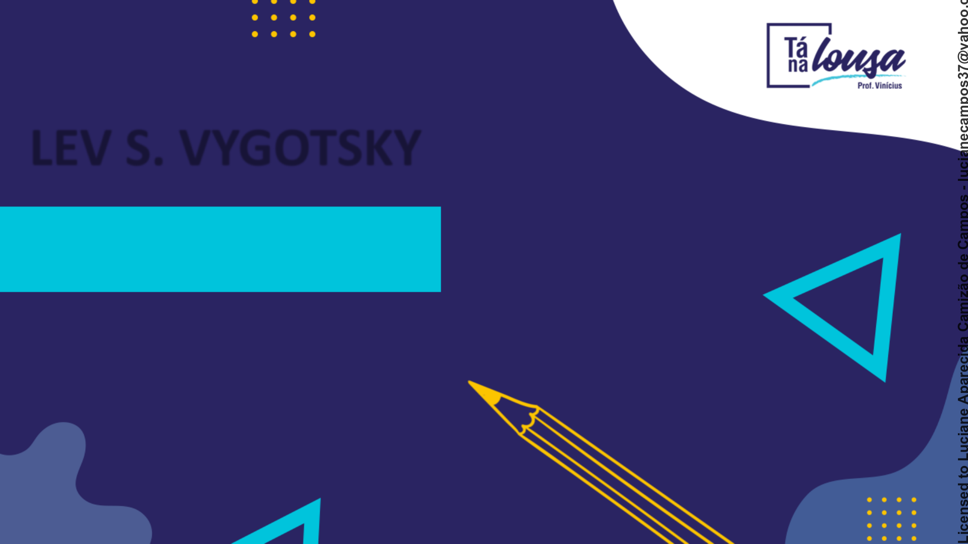 LEV S. VYGOTSKY Coletânea Prof. Vinícius Reccanello de Almeida L ic en se d t o L u ci an e A p ar ec id a C am iz ão d e C am p o s - lu ci an ec am p o s3 7@ ya h o o .c o m .b r L ic en se d t o L u ci an e A p ar ec id a C am iz ão d e C am p o s - lu ci an ec am p o s3 7@ ya h o o .c o m .b r INTRODUÇÃO • Oliveira (1993): A psicologia de Vygotsky pode ser conceituada em três pilares: • as funções psicológicas têm um suporte biológico pois são produtos da atividade cerebral; • o funcionamento psicológico fundamenta-se nas relações sociais entre o indivíduo e o mundo exterior, as quais se desenvolvem num processo histórico; • a relação homem-mundo é mediada por sistemas simbólicos. L ic en se d t o L u ci an e A p ar ec id a C am iz ão d e C am p o s - lu ci an ec am p o s3 7@ ya h o o .c o m .b r FUNÇÕES PSICOLÓGICAS • A criança nasce com funções psicológicas elementares, e a partir do aprendizado da cultura, estas se transformam em funções psicológicas superiores: as ações conscientes, a atenção voluntária, o pensamento abstrato e o comportamento intencional. • Processo de evolução: não ocorre de forma imediata e direta. As informações recebidas do meio social são intermediadas, de forma explícita ou não, pelas pessoas que interagem com as crianças; essa intermediação imprime às informações um caráter valorativo e significados sociais e históricos. • Funções psicológicas superiores: Aparecem primeiro nas relações sociais e através dos processos interpsicológicos ou intermentais (regulados e controlados pela interação com outras pessoas). Somente quando se tornam individuais é que podem ser efetuados no plano intrapsicológico ou intramental (reguladas e controladas pelo próprio indivíduo). • Justificativa para a origem social dos processos psicológicos superiores: está na ideia de que a relação entre o homem e o mundo não é direta, mas mediada por sistemas simbólicos. L ic en se d t o L u ci an e A p ar ec id a C am iz ão d e C am p o s - lu ci an ec am p o s3 7@ ya h o o .c o m .b r L ic en se d t o L u ci an e A p ar ec id a C am iz ão d e C am p o s - lu ci an ec am p o s3 7@ ya h o o .c o m .b r • Atividade: • Aguiar (2006): É por meio da atividade que o homem constitui suas relações humanas e transforma o mundo. Ao apropriar-se da realidade externa, ocorre uma atividade interna de apropriação e de articulação do novo, e o que marca essa atividade interna é a superação, a confrontação, a contradição e ambiguidade entre o novo e o velho. • É na atividade que o ser humano desenvolve a sua capacidade cerebral, ou seja, diferentemente do animal irracional, no qual a atividade está dirigida à satisfação biológica, o ser humano é motivado pela apropriação da experiência humana. • Isso porque na medida em que o indivíduo adquire a capacidade de planejar, de abstrair, de reconhecer conexões causais e de antecipar os acontecimentos imediatos, ele passa a produzir sua forma humana de existência. • Instrumentos que caracterizam a atividade: • do tipo físico (ferramentas que permitem a transformação do ambiente); • do tipo psicológico (signos, ou sistemas de signos, linguagem concreta, sistemas numéricos e de representação gráfica – toda forma de sistema convencional). L ic en se d t o L u ci an e A p ar ec id a C am iz ão d e C am p o s - lu ci an ec am p o s3 7@ ya h o o .c o m .b r L ic en se d t o L u ci an e A p ar ec id a C am iz ão d e C am p o s - lu ci an ec am p o s3 7@ ya h o o .c o m .b r • Sobre os signos: • São estímulos artificiais por meio dos quais o homem pode controlar e regular o seu comportamento. • Quando o homem introduz recursos auxiliares e artificiais para a memorização e cria/usa um estímulo como ferramenta para a memória, aparece uma característica de conduta especificamente humana. • Os sistemas de signos são elaborados lentamente a partir da evolução histórica e cultural da humanidade. • Caráter convencional e arbitrário: somente quando interagimos com outras pessoas que já os domina e são capazes de transmiti-los é que nos apropriamos deles. L ic en se d t o L u ci an e A p ar ec id a C am iz ão d e C am p o s - lu ci an ec am p o s3 7@ ya h o o .c o m .b r PENSAMENTO E LINGUAGEM • Sem a linguagem, a inteligência da criança permanece uma capacidade puramente prática, natural, semelhante à dos animais, como os macacos – uma capacidade limitada a funções mentais elementares e atividades animalescas, como sensações e percepções. Mas, com a linguagem, podemos interagir socialmente. • Desenvolvimento cognitivo: é fundamentalmente uma função da ampla interação verbal que ocorre entre a criança e os adultos. Por meio dessas interações, a criança desenvolve a linguagem e, como consequência, o pensamento lógico. • Conclusão a partir do Estudo dos Blocos: Discurso e pensamento são inicialmente independentes, mas a interação cultural e, especialmente, o nível de sofisticação da linguagem é instrumental na determinação do nível de sofisticação conceitual que a criança atinge. Desse modo, durante os primeiros meses, existe pouca relação entre o discurso e o pensamento; os dois se desenvolvem independentemente. Mas com a crescente sofisticação da linguagem, o pensamento e a linguagem se tornam cada vez mais estritamente relacionados. L ic en se d t o L u ci an e A p ar ec id a C am iz ão d e C am p o s - lu ci an ec am p o s3 7@ ya h o o .c o m .b r L ic en se d t o L u ci an e A p ar ec id a C am iz ão d e C am p o s - lu ci an ec am p o s3 7@ ya h o o .c o m .b r • Estágios da Linguagem e do Desenvolvimento Conceitual • FALA SOCIAL (2, 3 anos): O início desse estágio é essencialmente um estágio pré-fala. É caracterizado por sons que expressam emoções e estados psicológicos simples, como fome, raiva e contentamento. Posteriormente, aparecem so