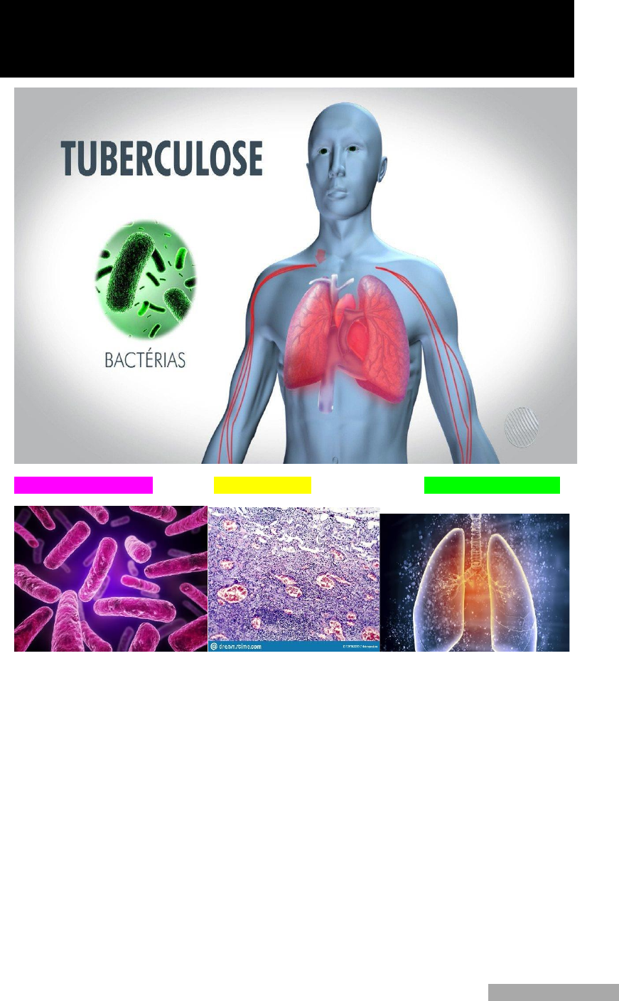 MICROBIOLOGIA PATOLOGIA FARMACOLOGIA BY: JOÃO PARO RESUMO - TUBERCULOSE MICROBIOLOGIA BACTÉRIA COLORAÇÃO DOENÇAS ASSOCIADAS FATORES DE VIRULÊNCIA / PATOGENICIDADE TRANSMISSÃO, DIAGNÓSTICO, TRATAMENTO E PROFILAXIA; MICOBACTERIAS -Bacilos pleomórficos; -Bacilos Álcool- ácido Resistentes (BAAR); -Aeróbios obrigatórios (estritos) -Sensível a ação de calor e radiação ultravioleta = sensível a luz solar -Resistente à dessecação e ao ambiente escuro – podem sobreviver por anos no ambiente externo (ATÉ 30 DIAS) -Parede: Complexa Lipídeos (60% lipídeos) -Produção destes lipídeos (Ácido micólico) Ziehl-Neelsen (FUCSINA, BAAR – BACILOS ALCOOL ACIDO, RESISTENTES E AZUL DE METILENO) *TUBERCULOSE: -CAUSADA PELO: 1-Mycobacterium tuberculosis (90% dos casos); 2-M. africanum; 3- M. bovis; 4-M. microti; 5-M. caprae; *OBS: M. leprae não causa tuberculose; *CARACTERISTICAS GERAIS DAS MICOBACTERIAS: -Membrana plasmática (+ ESPESSA, + LIPÍDEOS); -Peptidoglicano (PEG); -Arabinogalactana (AGA) - polissacarídeo ligado ao PEG; -Lipoarabinomanana coberta por manose (LAM) - fator imunogênico, sempre apresenta quando tem contato com o patógeno; -Proteínas associadas à membrana plasmática e à parede celular (PT); -Ácidos micólicos (AM) - ácidos graxos de cadeia longa (Atraem os macrófagos); -Moléculas de glicolipídios (GL) de superfície associadas aos ácidos micólicos; *Fator corda: Agrupamento para inibir os neutrófilos e atacar os macrófagos com enzimas líticas; *-MYCOBACTERIUM TUBERCULOSIS: -Bacilos Álcool-ácido Resistentes (BAAR); -Porinas – fator de seletividade / resistência a antibióticos; -Peptidoglicano (PEG); -Arabinogalactana (AGA) - polissacarídeo ligado ao PEG; -Lipoarabinomanana coberta por manose (LAM) - fator imunogênico, sempre apresenta quando tem contato com o patógeno; -Ácidos micólicos (AM) - ácidos graxos de cadeia longa (Atraem os macrófagos); -Moléculas de glicolipídios (GL) de superfície associadas aos ácidos micólicos; -Fosfolipase C; -PKnG (PROTEÍNA KINASE G) - bloquear a fusão do fagossomo com lisossomo, impede a digestão no macrófago; *TRANSMISSÃO: -VÍA RESPIRATÓRIA – ELIMINAÇÃO DE AEROSSÓIS PRODUZIDOS PELA TOSSE, FALA OU ESPIRRO DE UMA PESSOA COM TUBERCULOSE ATIVA (PULMONAR OU LARÍNGEA), SEM TRATAMENTO; -INALAÇÃO DE AEROSSOIS POR UM INDIVÍDUO SUSCETIVEL; *TB NÃO SE TRANSMITE POR OBJETOS COMPARTILHADOS (ROUPAS, TALHERES) *DIAGNÓSTICO: *CLÍNICO: -CONTATO COM PESSOAS COM BK (INFECÇÃO – BACILÍFEROS); -SINTOMAS E SINAIS SUGESTIVOS: TOSSE SECA OU PRODUTIVA POR 3 SEMANAS OU + FEBRE VESPERTINA, PERDA DE PESO, SUDORESE NOTURNA, DOR DE CABEÇA; -HISTÓRIA DE TRATAMENTO ANTERIOR PARA BK; -PRESENÇA FATORES DE RISCO: PESSOAS QUE VIVEM COM HIV (PVHIV), CÂNCER, ETILISMO; *LABORATORIAL: -BACILOSCOPIA (ESCARRO E COLORAÇÃO DE BARR); -CULTURA (CULTIVO EM ÁGAR LOWESTEIN JENSEN) E TESTE DE SENSIBILIDADE AOS ANTIMICROBIANOS; -TESTE RÁPIDO MOLECULAR PARA TUBERCULOSE (TRM-TB); -RAIO X; *TRATAMENTO: -DURAÇÃO DE NO MÍNIMO 06 MESES; -RIFAMPICINA, ISONIAZIDA, PIRAZINAMIDA E ETAMBUTOL; **OBS: COM O INÍCIO DO TTO A TRANSMISSÃO TENDE A DIMINUIR GRADATIVAMENTE, APÓS 15 DIAS O RISCO DE TRANSMISSÃO É BASTANTE REDUZIDO; *PROFILAXIA: -MANTER AMBIENTES BEM VENTILADOS E COM ENTRADA DE LUZ SOLAR; -HIGIENE DA TOSSE; -MÁSCARA KN-95; Joao Paro PATOLOGIA *FISIOPATOLOGIA DA TUBERCULOSE PULMONAR: • É UMA DOENÇA CRÔNICA DE NOTIFICAÇÃO OBRIGATÓRIA, CAUSADA PELO MYCOBACTERIUM TUBERCULOSIS; • ELA NORMALMENTE ACOMETE OS PULMÕES, MAS PODE AFETAR QUALQUER OUTRO ÓRGÃO OU TECIDO DO CORPO; • TIPICAMENTE, O CENTRO DO GRANULOMA SOFRE NECROSE CASEOSA. *IMPLICAÇÕES DA TB PRIMÁRIA: 1. INDUZ UMA HIPERSENSIBILIDADE E AUMENTO DA RESISTÊNCIA; 2. OS FOCOS DE CICATRIZAÇÃO PODEM ABRIGAR BACILOS VIÁVEIS POR ANOS, TALVEZ POR UMA VIDA E ENTÃO SER UMA FONTE PARA REATIVAÇÃO EM MOMENTOS DE DEFESA COMPROMETIDA DO HOSPEDEIRO; 3. PODE SE TORNAR UMA TUBERCULOSE PRIMÁRIA PROGRESSIVA (AIDS). *NÓDULO DE GOHN: LESÃO RESIDUAL ARREDONDADA CALCIFICADA DA PRIMO INFECÇÃO TUBERCULOSA PULMONAR; GRANULOMA COM FIBROSE E CALCIFICAÇÃO. *COMPLEXO DE GOHN: NÓDULO + COMPROMETIMENTO DO LINFONODO. *TB SECUNDÁRIA (TB DE REATIVAÇÃO): 1. SURGE EM HOSPEDEIRO PREVIAMENTE SENSIBILIZADO OU GRANDE INOCULAÇÃO DE BACILOS VIRULENTOS; 2. ESTÁ CLASSICAMENTE LOCALIZADA NO ÁPICE DE UM OU DOIS LOBOS SUPERIORES PULMONARES; 3. A CAVITAÇÃO OCORRE RAPIDAMENTE NA FORMA SECUNDÁRIA, RESULTANDO NA DISSEMINAÇÃO. CATARRO CONTAMINADO COM O BACILO; *DOENÇA PULMONAR MILIAR (PAINÇO): 1. ORGANISMOS DRENADOS PELO SISTEMA LINFÁTICO; 2. DESEMBOCAM NO SISTEMA VENOSO, ÁTRIO DIREITO; 3. ARTÉRIA PULMONAR; 4. PULMÃO; *TB MILIAR SISTÊMICA: • QUANDO OS MESMOS ORGANISMOS DRENADOS PELO SISTEMA LINFÁTICO ATINGEM A CIRCULAÇÃO ARTERIAL; *DIAGNÓSTICO – TB: 1. RADIOGRAFIA DE TÓRAX; 2. BACILOSCOPIA DO ESCARRO; 3. PPD (TESTE TUBERTULÍNICO); FARMACOLOGIA TUBERCULOSE -AEROBIOSE RESTRITA; -MULTIPLICAÇÃO LENTA; - MUITO RESISTENTES; TTO MÍNIMO 6 MESES: *ESQUEMA PARA > 10 ANOS: *FASE INTENSIVA: 2 MESES **RIPE: -RIFAMPICINA; -ISONIAZIDA; -PIRAZINAMIDA; -ETAMBUTOL; *FASE DE MANUTENÇÃO: 4 MESES **RI: -RIFAMPICINA; -ISONIAZIDA; *APÓS A FASE INTENSIVA DE TTO, REPETIR ESCARRO E RAIO X DE TORAX, POIS DEPENDENDO DO RESULTADO PODE ESTENTER O TTO PARA 09 MESES; **TRATA GESTANTES – RISCO BENEFÍCIO - CATEGORIAS A, B, C; **CRIANÇA NÃO TOMA ETAMBUTOL POR CONTA DA TOXICIDADE; -RIFAMPICINA; -INIBIÇÃO DA ENZIMA RNA – POLIMERASE (TRANSCRIÇÃO DE DNA); -ISONIAZIDA; PRÉ DROGA ATIVADA PELA CATALASE PEROXIDASE; -INIBIÇÃO DA SINTESE DE ACIDO MICOLICO; -É BACTERIOSTATICA SE O M. ESTIVER EM FASE DE REPOUSO E BACTERICIDA SE PEGAR FASE DE MULTIPLICAÇÃO; PIRAZINAMIDA; -GENE DO ACIDO GRAXO SINTETASE I (ÁCIDO MICOLICO); -ETAMBUTOL; -INIBIÇÃO DAS ARABINOSIL TRANSFERASE (BIOSSÍNTESE DA PAREDE CELULAR) -RIFAMPICINA; -CATEGORIA C – LACTAÇÃO; -SINDROME DE FLU- LIK: PACIE