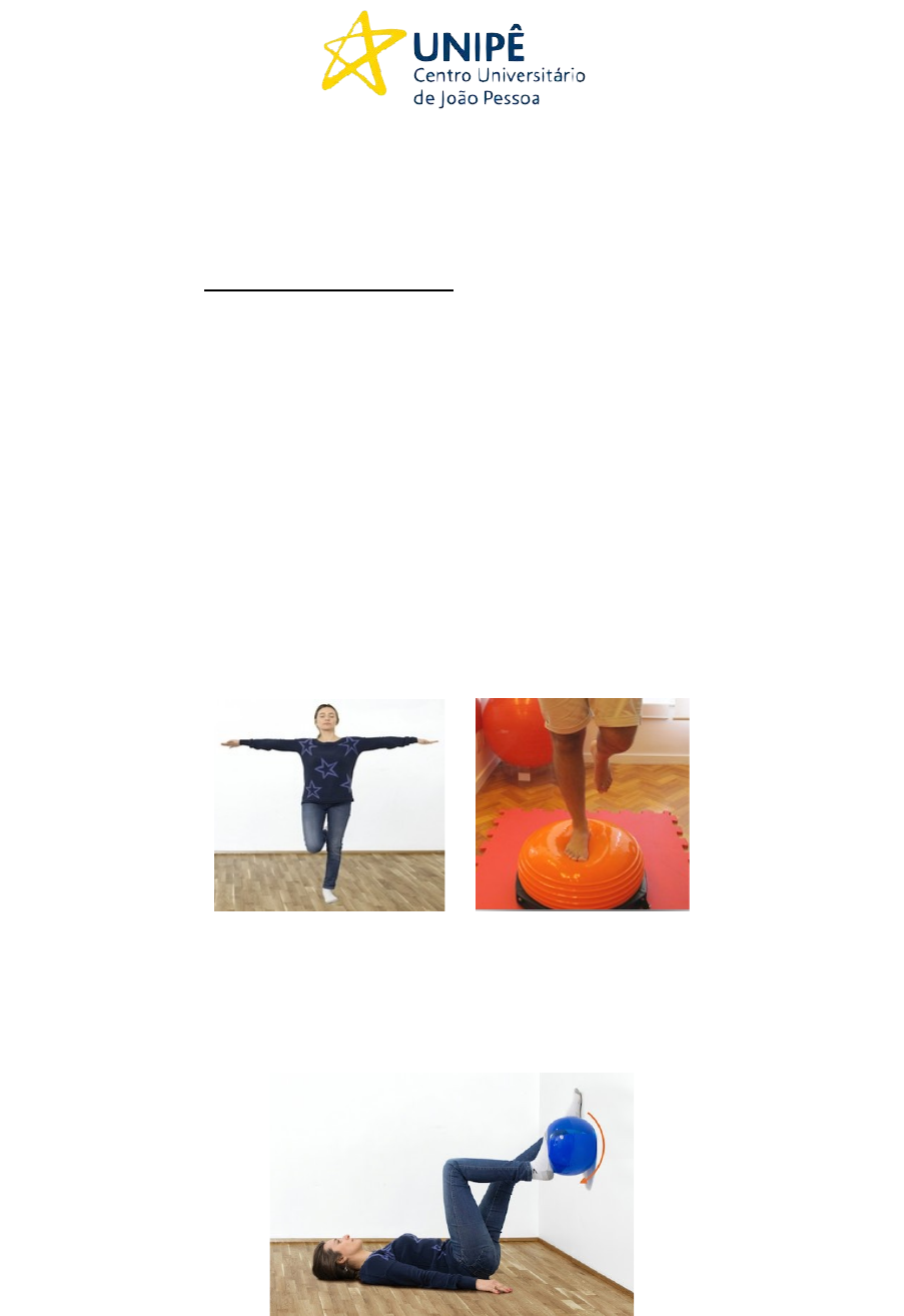 Exercícios proprioceptivos na reabilitação de lesões de joelho. Propriocepção: A propriocepção é a capacidade que o próprio corpo tem de avaliar em que posição se encontra a fim de manter o perfeito equilíbrio parado, em movimento ou ao realizar esforços. Na reabilitação do joelho os exercícios de propriocepção ajudam na recuperação de lesões na articulação ou ligamentos, pois fazem com que o corpo se adapte à lesão evitando que force muito o local afetado nas atividades diárias, como correr, caminhar ou subir escadas, por exemplo. Em que momento da reabilitação os exercícios proprioceptivos podem ser incluídos? A reeducação proprioceptiva é iniciada quando há completa cicatrização da lesão e arco completo de movimento, que acontece em torno da 16° semana. Alguns exercícios de propriocepção utilizados na recuperação do joelho são: Exercício 1: Ficar de pé e levantar o pé do lado contrário ao joelho lesionado, mantendo essa posição por 30 segundos e repetindo 3 vezes. A dificuldade do exercício pode ser aumentada colocando os braços para cima ou fechando os olhos, por exemplo ou utilizando o bosu. Exercício 2: Deitar de barriga para cima no chão com os pés junto a uma parede e, com o pé do joelho afetado, segurar uma bola de futebol contra a parede. Rodar a bola com o pé sem deixá-la cair, durante 30 segundos, repetindo 3 vezes. Exercício 3: Trote ântero-posterior: Também chamado de jogging, é uma forma de atividade física em que o ritmo e velocidade da marcha são mais rápidos que na caminhada e mais lentos que ao correr. Em espaço curto e delimitado pelo fisioterapeuta, a paciente irá percorrer o percurso seguindo a orientação de: “correr pra frente e voltar de costas”, seguindo seu próprio ritmo; Exercício 4: Equilíbrio do quadril: Paciente em posição ortostática e com auxílio de um cabo de vassoura para se manter em equilíbrio, realiza a flexão do quadril, alternando entre a superfície mais e alta e mais baixa do degrau, também poderá ser acrescentado o recurso da eletroestimulação neuromuscular, para fortalecimento dos músculos dorsiflexores do tornozelo; Exercício 5: Deslocamentos laterais: Em espaço curto e delimitado pelo fisioterapeuta, a paciente se deslocará lateralmente, seguindo seu próprio ritmo.