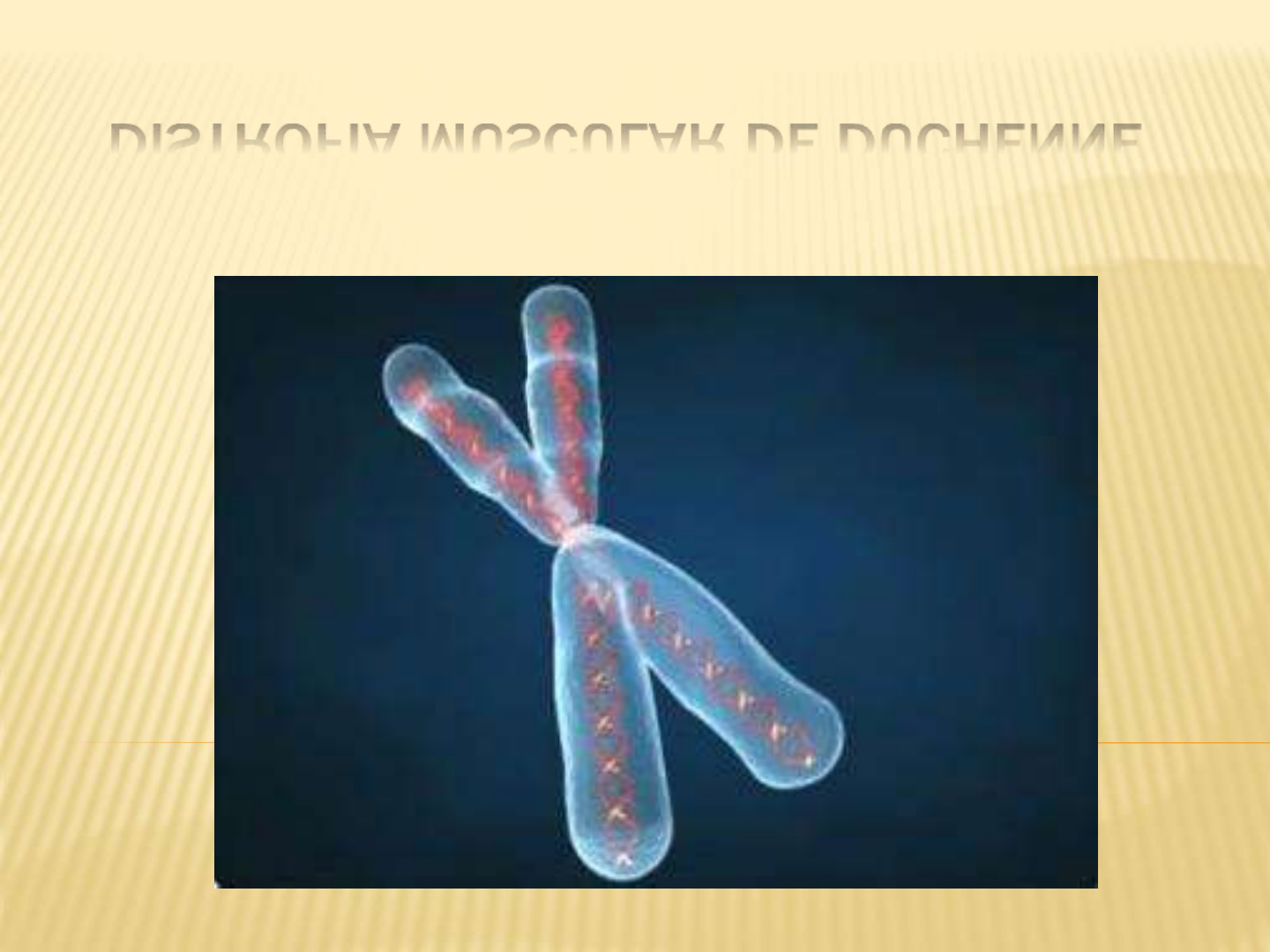DISTROFIA MUSCULAR DE DUCHENNE DISTROFIA MUSCULAR DE DUCHENNE A distrofia muscular de Duchenne (DMD), é uma doença neuromuscular causada por uma mutação genética no cromossomo X, afetando apenas crianças do sexo masculino. Porém a menina pode ser portadora da DMD, mas não desenvolve, tendo assim, chances de passar ao seu filho se no caso for do sexo masculino. A DMD leva à uma degeneração progressiva da musculatura esquelética e cardíaca. É causada por uma mutação no cromossomo X no gene Xp21, a qual codifica a proteína distrofina, onde na DMD essa proteína terá uma deficiência em sua produção, permitindo assim um maior ingresso de cálcio intracelular, determinando a necrose das fibras, fagocitose, reações inflamatórias e infiltração adiposa no tecido muscular. DISTROFIA MUSCULAR DE DUCHENNE A incidência da DMD é de 1 caso a cada 3.000 crianças do sexo masculino nascidos vivos. Os problemas respiratórios são os maiores causadores de mortalidade e morbidade nesses pacientes DISTROFIA MUSCULAR DE DUCHENNE DIAGNÓSTICO CLÍNICO É realizado uma biopsia muscular onde mostra alterações distróficas caracterizadas pela presença de necrose no tecido muscular, ao lado de fibras em regeneração com infiltração de tecido gorduroso. Porém o diagnóstico definitivo é feito pelo estudo molecular do DNA, já que é uma mutação genética, será então detectado a mutação no gene da distrofina. O estudo molecular é um exame muito caro e não acessível à muitos centros de doenças neuromusculares, devido a isso, é utilizado então a biopsia muscular. DISTROFIA MUSCULAR DE DUCHENNE O diagnóstico clinico é dado por volta dos dois meses de idade, porém as evidencias da DMD são notáveis a partir dos 3 – 5 anos de idade, pode ser observado um atraso no inicio da marcha, lentidão, quedas frequentes, dificuldade para correr, subir e descer escadas, dificuldades em levantar objetos, sustentar a cabeça e levantar-se do chão (sinal de gower). DISTROFIA MUSCULAR DE DUCHENNE Caracterizado por fraqueza muscular progressiva de predomínio proximal, cintura pélvica, escapular e flexores do pescoço. Progressivamente o paciente vai apresentando padrões miopáticos de compensações, realizando hiperlordose lombar, rotação interna de quadril com apoio dos pés em equino e alargamento da base de sustentação. Apresentando também uma psudohipertrofia de panturrilhas devido a infiltração de gordura no tecido muscular. Com o decorrer do tempo, por volta dos 12 anos de idade, a maior parte dos pacientes perdem a capacidade da deambulação, tornando assim um usuário da cadeira de rodas. Devido a perda da musculatura esses pacientes apresentam também problemas respiratórios, os quais levam a fadiga em pouco tempo de exercício. DISTROFIA MUSCULAR DE DUCHENNE Comprometimento respiratório: Devido à redução da musculatura, os pacientes portadores de DMD apresentam um comprometimento respiratório e cardíaco. Está associado com o aumento da insuficiência respiratória e da ineficiência da tosse, devido a fraqueza de diafragma e músculos do abdômen, tornando-os mais vulneráveis à atelectasias, pneumonias e retenção de secreções endobronquiais. O déficit muscular se agrava durante o sono, onde o paciente não consegue dormir na posição prona ou supina, pois sua musculatura não tem forças suficientes para vencer, levando o paciente em uma hipoxemia ( de O2) e hipercapnia ( de CO2). Com o passar dos anos a permanencia da hipoxemia e da hipercapnia sera agravada e apresentada durante sua vigília. DISTROFIA MUSCULAR DE DUCHENNE Tratamento Fisioterapêutico Alguns autores trazem em suas bibliografias que exercícios com cargas altas e altas intensidades apresentam efeitos deletérios sobre a DMD. Porém há controvérsias, pois a falta de atividade física acarreta na aceleração dos problemas respiratórios. Devido à essas justificativas, fica claro que as atividades com portadores de DMD devem ser cautelosas, mas devem ser feitas. Uma boa indicação para esses pacientes é a hidroterapia, onde A hidroterapia é um recurso capaz de retardar a progressão da Distrofia Muscular de Duchenne. DISTROFIA MUSCULAR DE DUCHENNE Em um artigo, uma criança do sexo masculino, sem nenhum tratamento fisioterapêutico anterior, diagnosticado desde 2002, idade cronológica compatível com idade motora ( 9 anos) foi selecionado para participar da hidroterapia. Foi utilizado para amostra de resultados o PEDI, um teste sobre a função motora. O teste foi realizado no inicio e no final de cada período de tratamento. A criança foi submetida a dois períodos de tratamento, um de 3 meses o outro de 5 meses, três vezes por semana, 40 minutos cada sessão, com um intervalo de 75 dias entre os períodos. DISTROFIA MUSCULAR DE DUCHENNE Hidroterapia Foram realizados durante as sessões de hidroterapia alongamentos dos músculos posteriores de MMII; fortalecimento dos membros superiores e inferiores; estimulação de equilíbrio com flutuadores entre as pernas; brincadeiras em ortostatismo, estimulando a criança a pegar objetos enquanto o terapeuta cria turbulência ao seu redor; oscilações de lado para o outro, com a criança segura pela parte proximal dos membros superiores; controle de tronco e equilíbrio realizados pela criança com movimentos ativos dos membros superiores unilateral, bilateralmente e alternadamente; controle de tronco e equilíbrio utilizando tapete flutuador; exercícios respiratórios com a criança sentada e na horizontal enquanto flutua; movimentos lentos proporcionando relaxamento e redução da dor, com o paciente flutuando com a ajuda do terapeuta. DISTROFIA MUSCULAR DE DUCHENNE No inicio do tratamento o paciente apresentou um total de 32 pontos, sendo 19 na área de mobilidade e 13 nas AVD’s. Ao final do mesmo (3 meses depois) apresentou um total de 30 pontos, sendo 18 na área da mobilidade e 12 nas AVD’s. Portanto houve uma perd