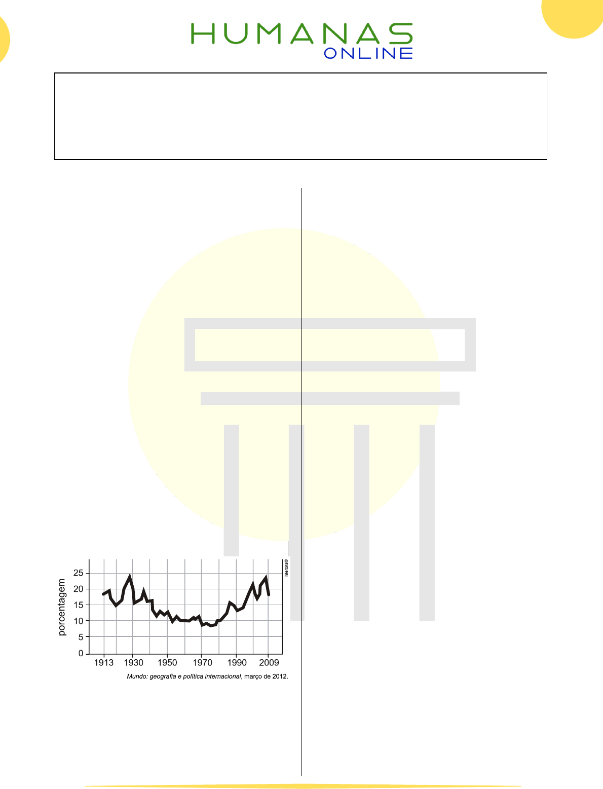 1 1. O que unia toda a oposição ao programa de Margaret Thatcher era uma suspeita de que a filha do merceeiro estava determinada a monetarizar o valor humano, de que ela não tinha coração. Mas, se os leitores de hoje voltassem no tempo até o fim dos anos 70, poderiam ficar irritados ao descobrir que a programação da TV do dia seguinte era um segredo de Estado que não se compartilhava com os jornais. Thatcher transformou de tal maneira a vida cotidiana que hoje mal nos damos conta. A morte de Margaret Thatcher, em abril de 2013, ocasionou muitos debates na imprensa acerca de suas ações como primeira-ministra do Reino Unido entre 1979 e 1990, como exemplifica o texto. Ian McEwan Adaptado de Folha de São Paulo, 14/04/2013 No contexto internacional da época, a política econômica da governante britânica foi associada a estratégias vinculadas à prática do: a) fordismo b) trabalhismo c) corporativismo d) neoliberalismo 2. O nível de concentração de renda em uma sociedade capitalista relaciona-se com as doutrinas econômicas que fundamentam as ações do Estado. Observe, no gráfico abaixo, a variação da participação da população que constitui o 1% mais rico na renda total nos Estados Unidos. Nos Estados Unidos, as doutrinas que predominaram na orientação das políticas públicas nos períodos de 1930 a 1980 e de 1980 a 2009 foram, respectivamente: a) liberalismo – estatismo b) estruturalismo – classicismo c) fisiocratismo – institucionalismo d) keynesianismo – neoliberalismo 3. O que precisamos, agora, não é apertar fortemente os coletes, mas adotar um humor de expansão, de atividades – fazer coisas, comprar coisas, produzir. [...] O mesmo é verdadeiro, e até mais, em relação ao trabalho da autoridade local. Este é o tempo de as municipalidades serem empenhadas e ativas em todos os tipos de melhoramentos importantes. [...] podemos, de qualquer forma, fazer algo por nós mesmos, e que esse algo deve assumir a forma de atividade, de realizações, de gastos, de lançamento de grandes empreendimentos. (John M. Keynes. Ensaios econômicos, 1976.) O excerto foi tirado de uma palestra radiofônica feita pelo economista britânico John Maynard Keynes, em janeiro de 1931. Sua posição sobre a economia era a) estatista e propunha o controle governamental dos investimentos bancários na produção de mercadorias. b) crítica à globalização dos capitais e sugeria a formação de um mercado comum entre as economias europeias. c) anticapitalista e defendia a divisão dos lucros das corporações industriais com os operários. d) contrária ao liberalismo econômico e visava encaminhar soluções para a crise econômica. e) monetarista e considerava a inflação dos preços das mercadorias como a causa principal da depreciação dos salários. 4. O advento de chefes de Estado-empresa marca uma transição sistêmica entre o enfraquecimento do Estado-nação e o fortalecimento da corporação apoiada em sua racionalidade técnico-econômica e gerencial. Essa transferência leva, por um lado, ao esvaziamento do Estado, reduzido à administração e à gestão, e, de outro, à politização da empresa, que expande sua esfera de poder muito além de sua atividade tradicional de produção. A corporação tende a se tornar o novo poder político- cultural. (Pierre Musso. “Na era do Estado-empresa”. http://diplomatique.org.br, 30.04.2019. Adaptado.) Coerentes com o neoliberalismo, as propostas do Estado-empresa convergem para GEOGRAFIA HUMANA (FRENTE B) EVOLUÇÃO DO CAPITALISMO Aulas 58 e 59 - Aula 58 – Capitalismo Comercial e Capitalismo Industrial; Aula 59 - Capitalismo Financeiro e Capitalismo Informacional Exercícios: Evolução do Capitalismo – Lista 32 2 a) a apropriação das forças produtivas pelo Estado e a defesa da igualdade social. b) o pluralismo democrático e a redistribuição de renda por programas de assistência social. c) a regulamentação da força de trabalho e a defesa da produção flexível. d) o protecionismo econômico e a implantação de políticas fiscais contra a inflação. e) a adoção de privatizações e a mínima intervenção do Estado na economia. 5. A partir dos anos 1980, uma doutrina política e econômica ganhou força em alguns países devido à crise do Estado de Bem Estar Social. Proposta por Margareth Thatcher (Reino Unido) e Ronald Reagan (Estados Unidos), destacava, entre outras coisas, que os investimentos antes empregados nas áreas sociais deveriam ser direcionados para a iniciativa privada. Qual é essa doutrina? a) Fisiocracia. b) Liberalismo Clássico. c) Keynesianismo. d) Fordismo. e) Neoliberalismo. 6. Analise o texto a seguir: Há um modo de pensar a superação da crise a partir da teoria keynesiana, mediante o aumento dos gastos sociais, socializando os custos da reprodução social, numa linha oposta à neoliberal, de privatização de tais custos em termos de previdência, de educação. A socialização de tais custos me parece um bom caminho inicial. A outra peça da teoria keynesiana é o investimento em infraestrutura. Os chineses perderam 30 milhões de empregos entre 2008 e 2009, por conta do colapso das indústrias de exportação. Em 2009, eles tiveram uma perda líquida de só três milhões de empregos, o que significa dizer que eles criaram 27 milhões de empregos em cerca de nove meses. Isso foi resultado de uma opção pela construção de novos edifícios, novas cidades, novas estradas, represas, todo o desenvolvimento de infraestrutura, liberando uma vasta quantidade de dinheiro para os municípios, para que suportassem o desenvolvimento. Essa é uma clássica solução “sinokeynesiana” e me parece que uma coisa semelhante aconteceu no Brasil, por meio do Bolsa-Família e de programas de investimento estatal em infraestrutura. David Harvey, 2012. Revista do IPEA. Adaptado. O autor cita a teoria Keynesiana e sua linha oposta, o neoliberalismo. Sobre as diferenças entre es