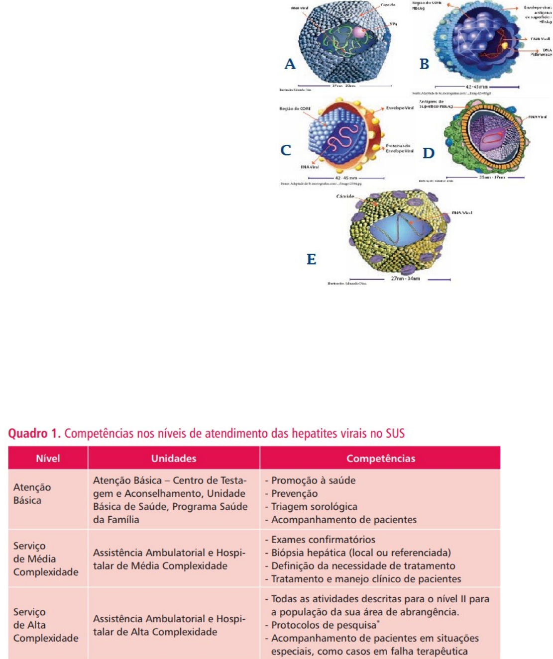 Hepatites virais Thaynara Silva Definição: Inflamação do parênquima hepático causada por vírus hepatotrópicos (lesão direta ou indireta do hepatócito). Infiltrado inflamatório local-> lesão tecidual-> necrose hepatocelular. · AGUDA: <6 MESES · CRÔNICA: > 6 MESES (“B” e “C”). RISCO CIRROSE. · FULMINANTE: ENCEFALOPATIA EM <8 SEMANAS. (PRINCIPALMENTE “B”) Hepatites virais e saúde pública: #Time to act (OMS)# 5 ações integradas 1. Vacinas: expansão de acesso (Hep A e Hep B); 2. Prevenção da transmissão materno-infantil HBV (pré-natal…) 3. Biossegurança (vacinação dos profissionais da saúde) 4. Redução de danos em populações vulneráveis (usuários de drogas) 5. Expansão do acesso ao tratamento (HBV e HCV) Doença de Notificação compulsória SINAN-NET Hepatites virais: notificação semanal #Em quem testar? Populações vulneráveis# · Homem Sexo Homem; · Usuários de drogas injetáveis; · Profissionais do sexo; · Pessoa Privada de Liberdade · Transfusões prévias (antes de 1990 não era testado) · Comunicante de pessoas com hepatite viral; · Acidente com material biológico; · Gestante; · Situação de violência sexual. Diagnóstico de Hepatite a Esclarecer HEPATITE A Agente etiológico: Vírus da Hepatite A (HAV) É um picornavírus RNA de fita simples Não possui envelope (o envelope viral se relaciona com a variabilidade genética), logo, há apenas um sorotipo. A primoinfecção e a vacinação conferem imunidade protetora permanente Epidemiologia: Idade média de acometimento no BR: 9,78 anos Disseminação está relacionada com a infraestrutura de saneamento básico. Transmissão: Fecal-oral. Ingestão de partículas virais infectantes, presentes na água ou em alimentos contaminados. Contato direto, compartilhamento de fômites com o indivíduo doente. # Surto mundial em HSH # O indivíduo infectado elimina partículas virais de 2 semanas antes até 2 semanas após o surgimento da icterícia Período de incubação: 15-45 dias Fisiopatologia: Infecção-> replicação nos hepatócitos-> partículas liberadas na bile-> luz intestinal-> eliminados nas fezes Estabelecimento da resposta imune-> anticorpos neutralizantes-> interrompe viremia e interrompe replicação viral no fígado # NÃO há cronificação nem sequela hepática Quadro clínico: Maioria dos casos: benigna e autolimitada < 1 %: insuficiência hepática aguda (+ comum em adultos acima dos 65 anos) Quando menor a idade mais assintomático · Fase prodrômica: dura alguns dias · Febre · Anorexia · Náuseas · Vômitos · Diarreia · Mialgia · Mal-estar · Fase ictérica: duas semanas · Icterícia · Colúria · Acolia fecal · Dor abdominal · Hepatomegalia · Fase de convalescência: dura meses · Regressão da icterícia · Recorrência em até 6 meses em até 10% Diagnóstico: Elevação das transaminases (TGO e TGP): em geral maior que 3x o LSN #O nível de elevação de TGO e TGP não é fator prognóstico nem faz parte dos critérios de definição de hepatite fulminante ou de indicação de transplante hepático Anti- HVA IgG e IgM Interpretação dos resultados sorológicos Anti-HVA total IgM Interpretações + + Infecção recente pelo HVA + - Infecção passada pelo HVA Pacientes vacinados - - Ausência de contato com o HVA, não imune IgG: já teve contato (doença ou vacina) Tempo de aparecimento dos marcadores na Hepatite A Fluxograma diagnóstico para Hepatite A Tratamento: NÃO há tratamento antiviral específico para hepatite A Suporte clínico e medicações sintomáticas (hidratação oral e antieméticos) Dieta leve e com baixo teor de lipídios Orientar a não ingestão de bebidas alcoólicas em nenhuma quantidade (evitar um nofo fator de lesão hepática) Ficar atento para qualquer sinal de evolução para insuficiência hepática aguda · INR> 1,5 · Alteração do nível de consciência Prevenção: · Saneamento básico · Pacientes internados devem ser mantidos em isolamento de contato · Vacinação (PNI- 1 dose de Vacina contra hepatite A aos 15 meses até 4a). 1 única dose protege em mais de 80%. Na rede privada: 2 doses · Vacina é indicada a adultos em situação de risco (profissionais que lidam com lixo, viagem para áreas endêmicas) · Vacina de vírus vivo inativado · São indicações de vacina contra Hepatite A nos CRIEs · Portadores de hepatopatia crônica (qualquer etiologia) · Coagulopatias e hemoglobinopatias · <13 anos com HIV/AIDS · Doenças de depósito e Fibrose Cística · Trissomias · Imunodepressão terapêutica · Candidatos a transplante e transplantados de órgão sólido ou medula óssea HEPATITE B Pelo menos 8% da população é HBsAg positivo Prevalência maior em asiáticos e seus descendentes Agente etiológico: Vírus da Hepatite B (HBV) Família Hepadnavírus DNA (único de DNA dentre as hepatites) Covalente Circular= ccc-DNA: genoma persistência Fita dupla incompleta Replicação do genoma viral por enzima de transcriptase reversa Envelope externo proteico: HBsAg É um vírus oncogênico Cronificação: cirrose, Carcinoma hepatocelular Transmissão: · Parental/sexual (IST)- Sangue contaminado · Vertical Período de transmissibilidade: · 2 a 3 sem antes dos primeiros sintomas e dura enquanto está presente o HBsAg · É permanente nos portadores crônicos Período de incubação: 30 a 180 dias (média de 75 dias) Cronificação: Depende da faixa etária Adultos: 5-10% Vertical > 90% Investigação na icterícia febril: · Sorologias · Notificação Diagnóstico: Significado dos marcadores sorológicos HBsAg É um marcador de superfície É o primeiro marcador a aparecer no curso da infecção pelo HBV HBeAg É um marcador de replicação viral. se positivo, indica alta infecciosidade Anti-HBc Total C de Contato com o vírus selvagem (sem ser o da vacina) Core Anti-HBc IgM É um marcador de infecção recente, encontrado no soro até 32 semanas após a infecção Anti-HBc IgG Marcador de lo