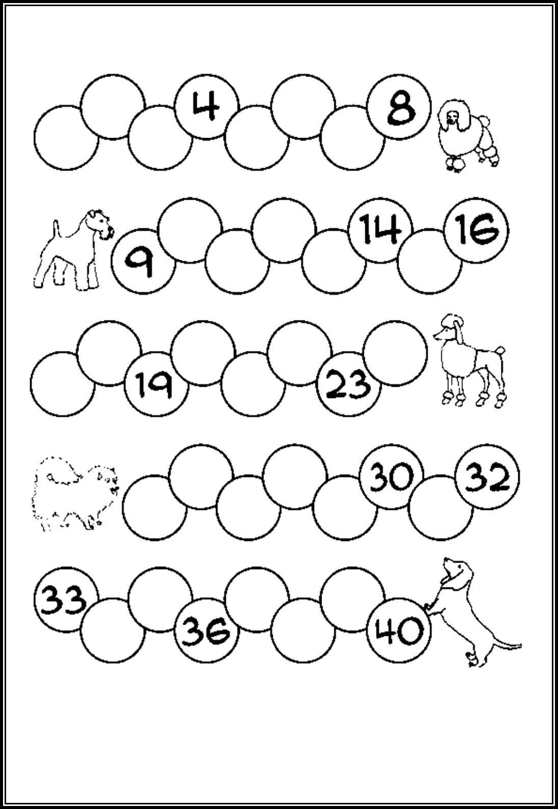 COMPLETE A SEQUÊNCIA NUMÉRICA ABAIXO: PINTE COM AS CORES SOLICITADAS OS NÚMEROS PEDIDOS A) PINTE DE AMARELO O NÚMERO QUE REPRESENTA 2 DEZENAS E 3 UNIDADES B) PINTE DE AZUL O NÚMERO QUE REPRESENTA 1 DEZENA E 7 UNIDADES C) PINTE DE ROSA O NÚMERO QUE REPRESENTA 4 DEZENAS D) PINTE DE VERDE O NÚMERO QUE REPRESENTA 3 DEZENAS E 3 UNIDADES E) PINTE DE LARANJA O NÚMERO QUE REPRESENTA 1 DEZENA E 9 UNIDADES