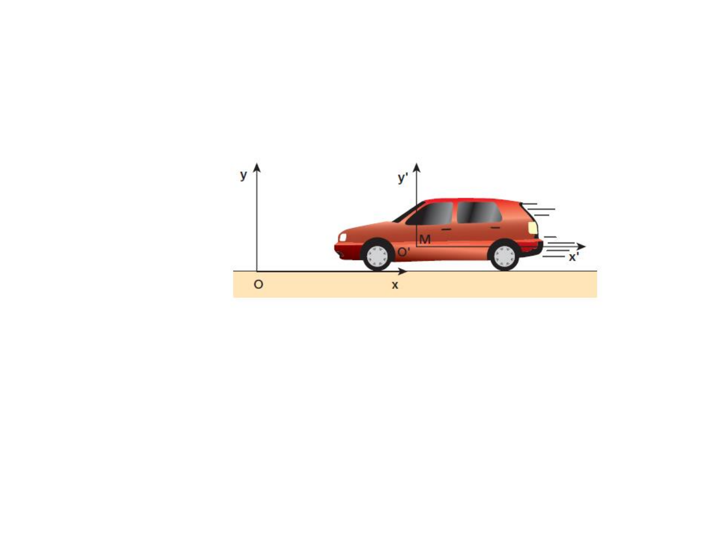 Considere um automóvel em movimento em relação a um referencial Oxy solidário ao solo. Seja O’x’y’ outro referencial, solidário à porta do veículo, como ilustra a figura a seguir: Determine se a maçaneta M está em repouso ou em movimento: a) em relação a Oxy. b) em relação a O’x’y’. Respostas: a) Em movimento. b) Em repouso Slide 2
