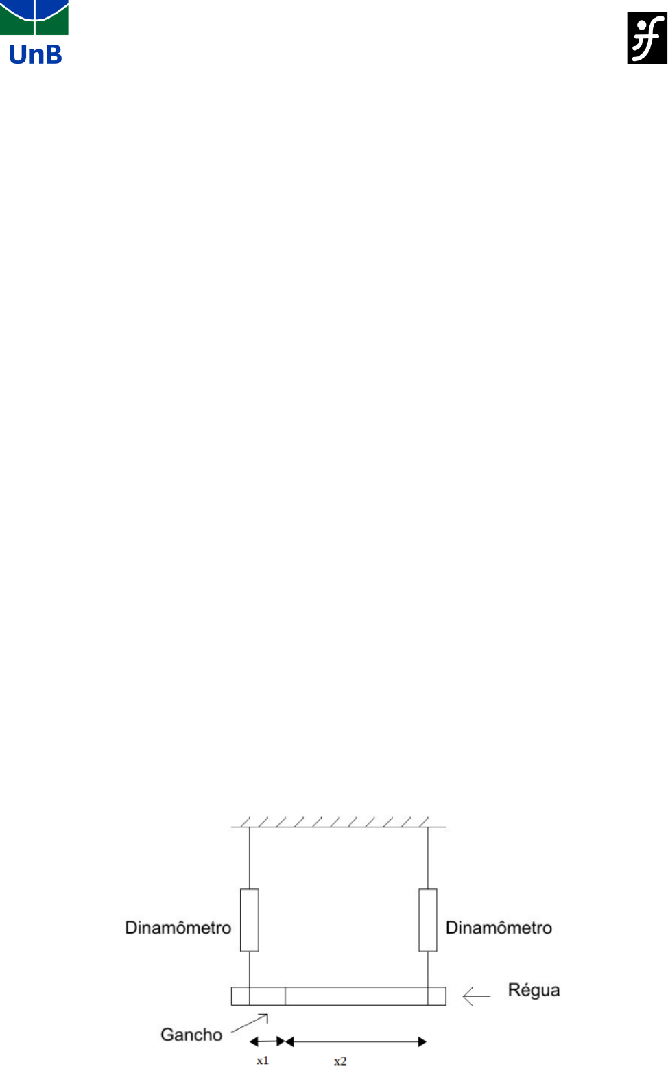 Física Experimental para Ciências Agrárias 1 Experimento 3 Equilíbrio de corpos rígidos Data: 25 de maio de 2023 Professor: Alessandra Turma: 02 Grupo: 04 Membros que efetivamente participaram da prática: Isabella de Souza Rodrigues (231000745), Helen de Souza Botelho (231000736), Kelly Vitória Souza da Silva (231016709). Objetivo: Observar quais as condições para que tal equilíbrio seja atingido. Introdução Teórica: O conceito de Equilíbrio de Corpos Rígidos considera como corpo um sistema de partículas sólidas que não se deforma, e é dito como rígido quando a distância entre quaisquer dois pontos fixos no corpo não muda com o tempo estando em repouso, ou seja, em equilíbrio estático. Além disso, o conceito explica que para o corpo esteja em equilíbrio sua força resultante deve ser igual a 0 (1° condição) como também a somatória dos torques (2°condição). Material Utilizado: (número do kit: 04) 1 • régua de madeira 2 • dois dinamômetros 3 • fios suspensos no teto 4 • ganchos de arame rígido 5 • peso móvel Procedimento: 1. Montar o sistema: Física Experimental para Ciências Agrárias 2 2. Pendurar o peso móvel e desloca-lo até os locais desajados. 3. Observar o resultado das forças obtidas nos dinanômetros e os anotas. Relatório 1 – Forças atuantes no sistema: Fa = força gravitacional, Fb = força do peso movél sobre a régua. 2 - Os valores indicados no dinamômetros sem o peso são F1= 0,8 N e F2= 0,8 N. 3 - Valores indicados nos dinamômetros e as distâncias x1 e x2. X1 (cm) F1 (N) X2 (cm) F2 (N) 10,0 +/- 0,1 5,0 +/- 0,1 88,0 +/- 0,1 1,2 +/- 0,1 20,0 +/- 0,1 4,6 +/- 0,1 78,0 +/- 0,1 1,7 +/- 0,1 30,0 +/- 0,1 4,1 +/- 0,1 68,0+/- 0,1 2,1 +/- 0,1 40,0 +/- 0,1 3,6 +/- 0,1 58,0 +/- 0,1 2,8 +/- 0,1 50,0+/- 0,1 3,1 +/- 0,1 48,0 +/- 0,1 3,1 +/- 0,1 60,0 +/- 0,1 2,6 +/- 0,1 38,0 +/- 0,1 3,8 +/- 0,1 70,0 +/- 0,1 2,2 +/- 0,1 28,0 +/- 0,1 4,1 +/- 0,1 80,0 +/- 0,1 1,7 +/- 0,1 18,0 +/- 0,1 4,7 +/- 0,1 90,0 +/- 0,1 1,2 +/- 0,1 08,0 +/- 0,1 5,0 +/- 0,1 Precisão do dinanômetros = 0,2 N Precisão da régua = 0,1 cm Fa Fb Física Experimental para Ciências Agrárias 3 4 - Gráfico dos valores das forças F1 e F2 em função da posição do peso na régua. 5 - O que acontece com a soma das duas forças: Como uma das condições em equilibrio de corpos rígidos, a somatória dos torques deve ser igual ou aproximadamente 0. Entretanto, ao comparar com os resultados obtidas pelo grupo, e pelo peso do objeto, é envidente que os resultandos são distintos. 6 – Tabela do resultado do cálculo dos torques das forças exercidas pelos suspensórios e pelo peso da régua em relação ao ponto de aplicação do peso móvel. 1 1 2 2 CM CM - 50,0 1,5 + 105,6 1,1 - 62,4 9,4 - 6,8 12,0 - 92,0 2,46 + 132,6 2,2 - 36,4 7,4 4,2 12,0 - 123,0 3,41 + 142,8 3,2 - 30,4 5,4 - 10,6 12,0 - 144,0 4,36 + 162,4 4,3 - 14,4 3,4 4,0 12,0 - 155,0 5,31 + 148,8 5,3 + 1,6 1,8 - 4,6 12,4 - 156,0 6,26 + 144,4 6,4 + 17,6 3,8 6,0 16,4 - 154,0 7,22 + 114,8 7,4 + 33,6 5,8 - 5,6 20,4 - 136,0 8,17 + 88,6 8,5 + 49,6 7,8 - 11,8 24,4 - 108,0 9,12 + 40,0 9,5 + 65,6 9,8 47,6 28,4 7 - O que acontece com a somatória dos torques: Em equilibrio de corpos rígidos, como uma das condições, a somatória dos torques deve ser igual ou aproximadamente 0, sendo esse o resultado espera porém não obtidos. 8 - Tabela de resultado do cálculo os torques das forças exercidas pelos suspensórios, Física Experimental para Ciências Agrárias 4 pelo peso móvel e pelo peso da régua em relação a uma das extremidades. Conclusão: Conclui-se, portanto, que a partir do conceito e das equações de Equilíbrio de Corpos Rígidos obtemos os resultados expostos nas tabelas e no gráfico. Por obstante, ao relacionarmos as condições das somatórias de torque e de força obtidas pelo grupo é visível a não aproximação ou igualdade com 0. PM PM 2 2 CM CM - 50,6 2,7 + 71,2 17,9 - 179,4 8,3 - 158,8 26,9 - 96,6 4,7 + 63,2 15,9 - 133, 4 6,3 - 166,8 26,9 - 142,6 6,7 + 55,2 13,9 - 87,4 4,3 - 174,8 24,9 - 188,6 8,7 + 47,2 11,9 - 41,4 2,3 - 182,8 22,9 + 234,6 10,7 - 39,2 9,9 + 4,6 0,7 200 21,3 + 280,6 12,7 - 31,2 7,9 + 50,6 2,7 300 23,3 + 326,6 14,7 - 23,2 5,9 + 96,6 4,7 400 25,3 + 372,6 16,7 - 15,2 3,9 + 142,6 6,7 500 27,3 + 418,6 18,7 - 7,2 1,9 + 188,6 8,7 600 29,3