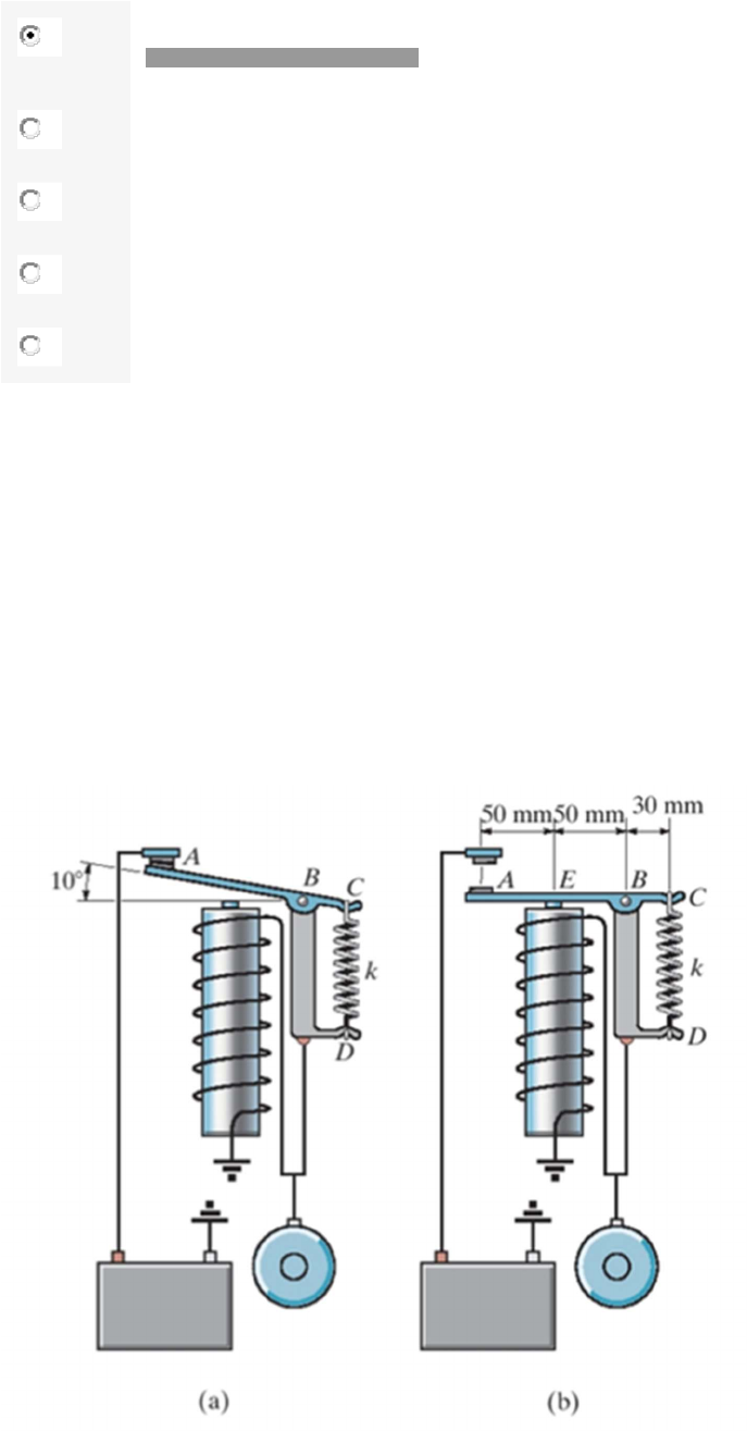 mola CD de k = 150 N/m e uma força vertical de 0,6 N em A (como mostra a figura). Assinale a