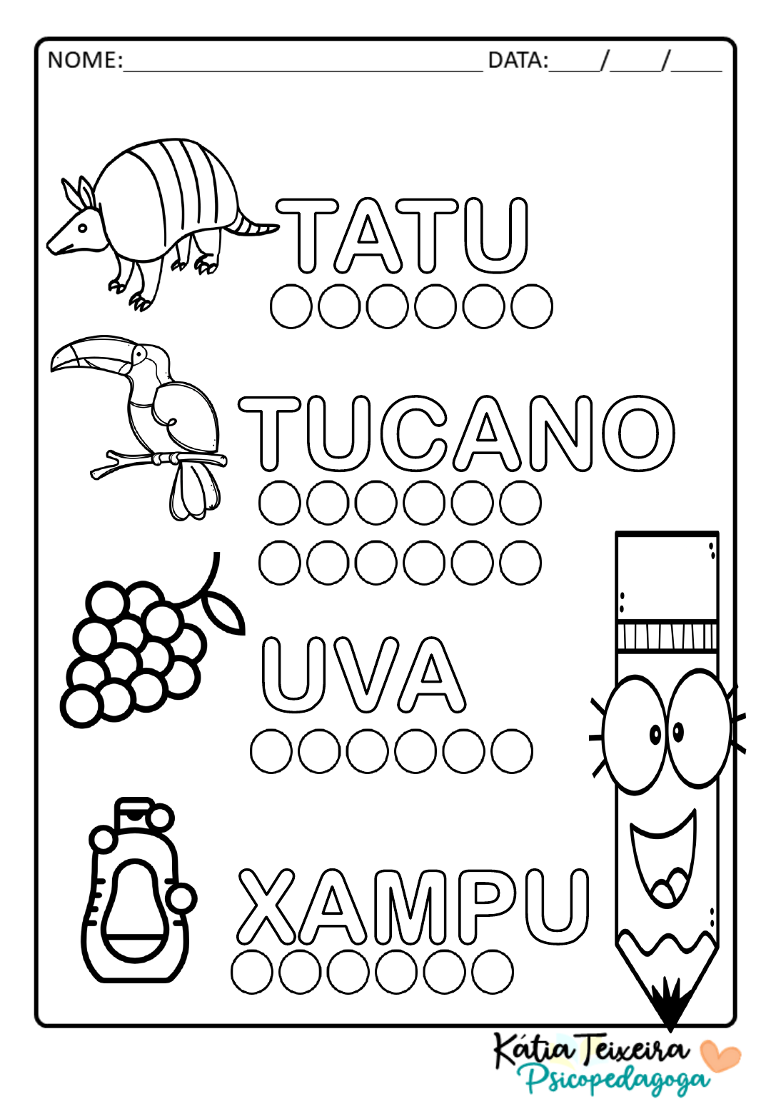 PINTE A VOGAL U DAS PALAVRAS ABAIXO.