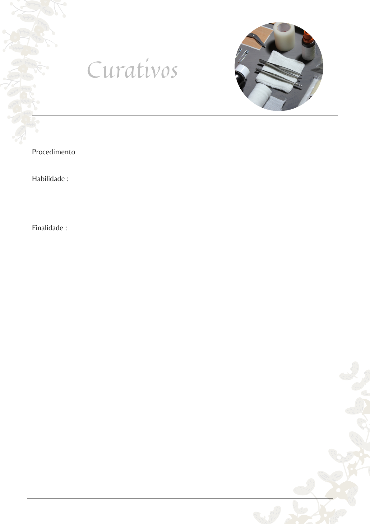 CurativosCurativos Habilidade :Habilidade : ProcedimentoProcedimento Finalidade :Finalidade : • Limpar a ferida; • Promover a cicatrização, eliminando fatores que possam retardá-la; • Tratar e prevenir infecções; • Prevenir contaminação exógena; • Remover corpos estranhos; • Proteger a ferida contra traumas mecânicos; • Promover hemostasia; • Fazer desbridamento mecânico e remover tecidos necróticos; • Reduzir edemas; • Drenar e/ou absorver secreções e exsudatos inflamatórios; • Diminuir odor; • Manter a umidade da ferida; • Fornecer isolamento térmico •Dar conforto psicológico ao paciente; •Diminuir a intensidade da dor; •Limitar a movimentação em torno da ferida. Realizar a técnica de curativo auxiliando o organismo a promover a cicatrização, eliminando os fatores desfavoráveis que retardam a cicatrização da lesão, diminuindo infecções cruzadas, através de técnicas e procedimentos adequados. Técnica de Curativos CurativosCurativos Material :Material : Pinças Cirúrgicas do tipo kelly ou kocker com ou sem dente; Pinça anatômica; Pinça dente de rato; Gaze; Solução Fisiológica 0,9% morno; Agulha estéril para realizar no frasco de soro pequenos orifícios na forma de chuveiro; Adesivo para fixação das ataduras; Conforme rotina da instituição coberturas descartáveis ou cobertura com gaze ou Zobec. CurativosCurativos Revisão teórica :Revisão teórica : A pele tem várias funções, como por exemplo: Quando ocorre a descontinuidade do tecido epitelial, das mucosas ou de órgãos, as funções básicas de proteção da pele são comprometidas. A ferida resultante dessa descontinuidade pode ser causada por fatores extrínsecos, como incisão cirúrgica, trauma, e por fatores intrínsecos, como as produzidas por infecção. A cicatrização é um processo fisiológico e dinâmico que busca restaurar a continuidade dos tecidos. Conhecer a fisiopatologia da cicatrização e os fatores que podem acelerá-la ou retardá-la proporciona uma melhor avaliação e a escolha do tratamento mais adequado. - Proteger o organismo contra a ação de agentes externos (físicos, químicos e biológicos); - Impedir a perda excessiva de líquidos; - Manter a temperatura corporal; - Sintetizar a vitamina D; - Agir como órgão dos sentidos. Características das Feridas :Características das Feridas : As feridas podem ser classificadas quanto à causa, ao conteúdo microbiano, ao tempo de cicatrização, ao grau de abertura e ao tempo de duração. Cirúrgicas, feridas provocadas intencionalmente, mediante: Incisão: quando não há perda de tecido e as bordas são geralmente fechadas por sutura; Excisão: quando há remoção de uma área de pele (por exemplo: área doadora de enxerto); Punção: quando resultam de procedimentos terapêuticos diagnósticos (por exemplo, cateterismo cardíaco, punção de subclávia, biópsia, entre outros). Quanto à causa, as feridas podem ser: CurativosCurativos Características das Feridas :Características das Feridas : Traumáticas, feridas provocadas acidentalmente por agente: Mecânico: contenção, perfuração ou corte; Químico: iodo, cosméticos, ácido sulfúrico etc.; Físico: frio, calor ou radiação. Ulcerativas, feridas escavadas, circunscritas na pele (formadas por necrose, sequestração do tecido), resultantes de traumatismo ou doenças relacionadas com o impedimento do suprimento sanguíneo. As úlceras de pele representam uma categoria de feridas que incluem úlceras por pressão, de estase venosa, arteriais e diabéticas. Limpas: feridas em condições assépticas, sem micro-organismos Limpas contaminadas: feridas com tempo inferior a 6 horas entre o trauma e o atendimento, sem contaminação significativa Contaminadas: feridas ocorridas com tempo maior que 6 horas entre o trauma e o atendimento, sem sinal de infecção; Infectadas: feridas com presença de agente infeccioso no local e com evidência de intensa reação inflamatória e destruição de tecidos, podendo conter exudato purulento. Quanto ao conteúdo microbiano, as feridas podem ser: CurativosCurativos Características das Feridas :Características das Feridas : De cicatrização por primeira intenção: feridas fechadas cirurgicamente com requisitos de assepsia e sutura das bordas; nelas não há perda de tecidos e as bordas da pele e/ou seus componentes ficam justapostos; De cicatrização por segunda intenção: feridas em que há perda de tecidos e as bordas da pele ficam distantes, nelas a cicatrização é mais lenta do que nas de primeira intenção; De cicatrização por terceira intenção: feridas corrigidas cirurgicamente após a formação de tecido de granulação ou para controle da infecção, a fim de que apresentem melhores resultados funcionais e estéticos. Abertas: feridas em que as bordas da pele estão afastadas; Fechadas: feridas em que as bordas da pele estão justapostas. Agudas: quando são feridas recentes; Crônicas: feridas que têm um tempo de cicatrização maior que o esperado devido a sua etiologia. São feridas que não apresentam a fase de regeneração no tempo esperado, havendo um retardo na cicatrização. Quanto ao tipo de cicatrização, as feridas podem ser: Quanto ao grau de abertura, as feridas podem ser: Quanto ao tempo de duração, as feridas podem ser: CurativosCurativos Avaliação da Ferida :Avaliação da Ferida : Para a escolha de um curativo adequado, é essencial uma avaliação criteriosa da ferida e o estabelecimento de um diagnóstico de enfermagem acurado. Para tanto, é necessário levar em consideração as evidências clínicas observadas quanto à localização anatômica, forma, tamanho, profundidade, bordos, presença de tecido de granulação e quantidade de tecido necrótico, sua drenagem e as condições da pele perilesional. A sistematização do tratamento de feridas ocorre por meio de ações simples que visam remover as barreiras que impedem a cicatri