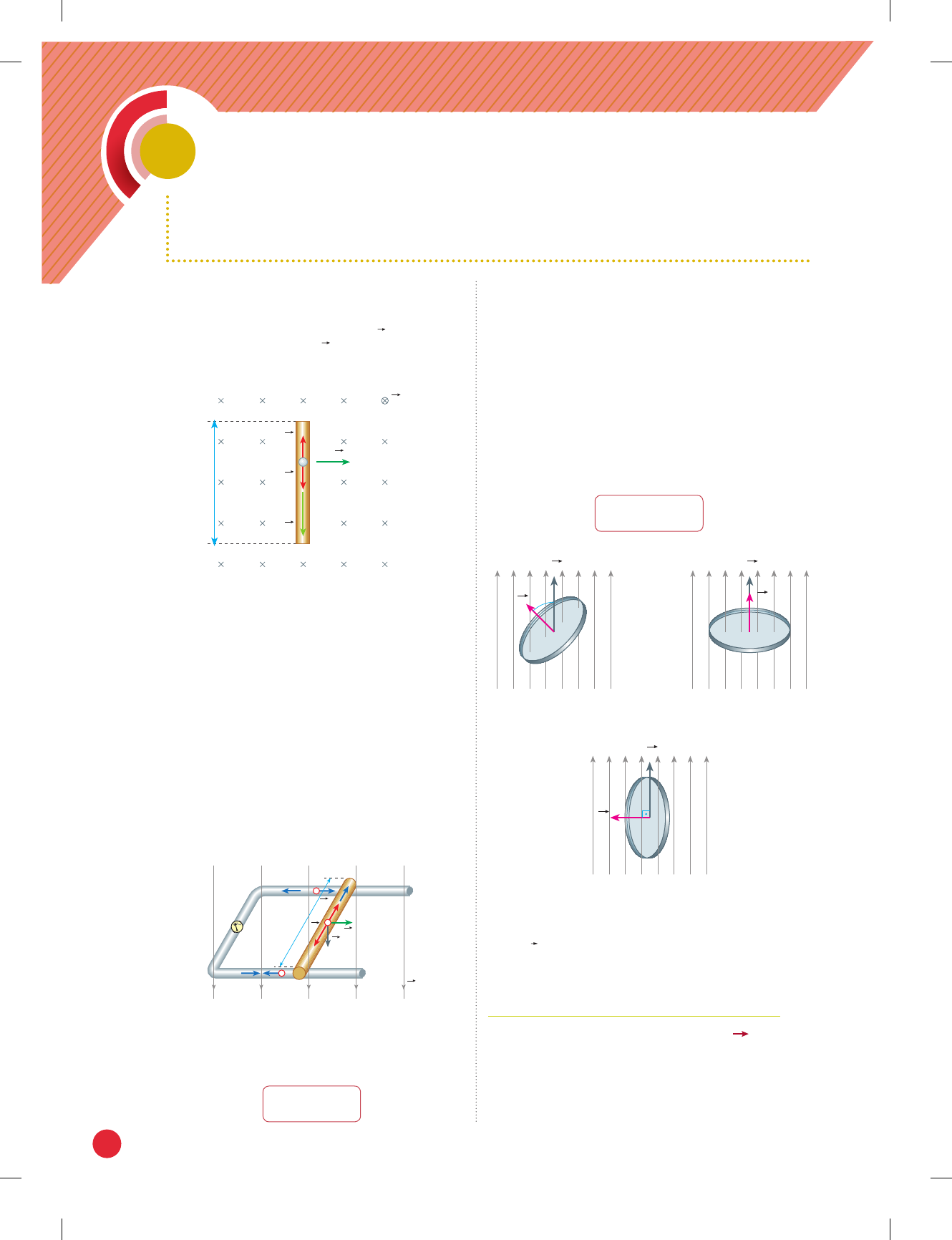 v B A i i – – – ++ + – – i – Fm Fe L B ++ – – n B A θ cos θ , 1 e Φ 5 BA 3 cos θ cos θ 5 1 e Φ 5 BA A n B cos θ 5 0 e Φ 5 0 A n B ––– –– +++ ++ – L Fm Fe E v B A B Suplemento de reviSão • FÍSiCA R ep ro d uç ão p ro ib id a. A rt . 1 84 d o C ód ig o P en al e L ei 9 .6 10 d e 19 d e fe ve re iro d e 19 98 . Suplemento de reviSão • FÍSiCA TEMA 23 Indução eletromagnética Os motores elétricos e circuitos de corrente alternada provocaram grandes transformações nas relações de produção. Hoje, seu uso é tão disseminado que é difícil imaginar a vida sem eletricidade. Agora, vamos revisar a base de funcionamento de transformadores e geradores de corrente alternada: a indução eletromagnética. Fem induzida Considere uma barra condutora AB que se desloca para a direita com velocidade constante v , numa região sujeita a um campo magnético B perpendicular ao vetor velocidade, e que entra no plano do papel. Casos de variação do fluxo magnético Variação na intensidade do campo B Enquanto o ímã se move, há variação na intensidade do campo magnético induzido na espira. O comportamento da corrente induzida durante o movimento do ímã pode ser observado na figura 4. Na situação da figura 1, os elétrons livres da barra ficam sujeitos a uma força magnética de direção paralela à barra e no sentido de A para B. Desse modo, a extremidade A fica positivamente carregada e a B fica negativamente carregada. As cargas continuam a se concentrar nas extremidades até que se estabeleça um equilíbrio. Nessa situação, há um campo elétrico vertical para baixo e igualdade de módulo entre a força magnética para baixo e a força elétrica para cima. Entre os terminais da barra, existe a força eletromotriz (fem) induzida. Se fecharmos o circuito adaptando um contato com outro fio em forma de U, surgirá uma corrente induzida i fluindo pelo circuito, com sentido anti-horário, enquanto a barra se move para a direita (fig. 2). A barra se comporta como um gerador de fem induzida e. Figura 2 Quando o condutor desliza sobre o outro, formando um circuito fechado, o amperímetro A indica a passagem de induzida. Fluxo magnético Faraday descreveu todos os fenômenos de indução baseado no conceito de fluxo das linhas de campo mag- nético (fig. 3). Essa grandeza exprime a densidade de linhas de campo que atravessam determinada superfície e depende de três fatores: • intensidade B do campo magnético; • área A a ser atravessada pelas linhas; • ângulo J entre as linhas de campo e a normal à superfície considerada. O fluxo magnético é dado por: A = BA $ cos J Figura 3 Valores particulares do fluxo magnético através de uma espira plana em um campo magnético uniforme de indução B. Figura 1 Condutor movendo-se perpendicularmente ao campo magnético. Se a barra tem comprimento L, pode-se demonstrar que a fem induzida vale: e = B $ L $ v 216216 PDF-ALTA-216-225-MPF1SR-TM23-M.indd 216 7/31/15 11:30 AM N S i O 0 ii i O 0 i i N S A S i N v 0 A S i 0 v N θ ω B Y X n i B T i 1imáx. 2imáx. t0 tema 23 • indução eletromagnética R ep ro d uç ão p ro ib id a. A rt . 1 84 d o C ód ig o P en al e L ei 9 .6 10 d e 19 d e fe ve re iro d e 19 98 . A Variação na área A atravessada pelas linhas de campo A área da espira retangular (fig. 5), efetivamente atra- vessada pelas linhas de campo, é reduzida ou aumentada de acordo com o movimento do ímã. Variação no ângulo J entre as linhas de campo e a normal à superfície A espira retangular (fig. 6) gira na região de influência do campo magnético, variando continuamente o ângulo determi- nado pelas linhas de campo e a normal à superfície da espira. Figura 4 Sentido da corrente induzida em relação ao observador O. (A) Anti-horário; (B) horário. Figura 5 Deslocando-se o ímã, varia o número de linhas de indução que atravessam a espira supostamente fixa. B Figura 6 Espira girando em campo magnético uniforme, com velocidade angular constante. Lei de Lenz O sinal negativo na expressão da lei de Faraday descreve um resultado conhecido como lei de Lenz: O sentido da corrente induzida é tal que ela origina um fluxo magnético induzido que se opõe à variação do fluxo magnético denominado indutor. Lei de Faraday-Neumann Qualquer que seja a grandeza a sofrer variação, só existe fem induzida se o circuito experimentar variação no fluxo magnético através dele, com o passar do tempo. Portanto, a lei de Faraday-Neumann afirma que a fem induzida média em vale: em = A tS S - Correntes de Foucault Em um percurso fechado dentro de um condutor ma- ciço submetido a um campo magnético variável, como o cubo da figura 7, o fluxo magnético varia com o tempo e, portanto, forças eletromotrizes induzidas fazem circular, no interior do cubo, correntes induzidas, denominadas correntes de Foucault. As correntes de Foucault podem atingir grande inten- sidade e, nessa situação, há grande dissipação de energia na forma de calor. Corrente elétrica alternada Correntes alternadas são correntes induzidas que variam periodicamente em intensidade e sentido, provocadas por indução eletromagnética mediante a rotação de espiras em regiões atravessadas por um campo magnético uniforme. Podemos dizer que a expressão geral da corrente i depen- de do seu valor máximo e de uma função trigonométrica. Por exemplo, a variação pode ser senoidal (fig.8): Figura 7 Quando um cubo de cobre fixo é submetido a um campo magnético variável, surgem as correntes de Foucault. i = imáx. $ sen ht em que h = 2sf é a pulsação, f é a frequência com que a corrente varia no tempo, e t o instante considerado. Figura 8 Gráfico corrente # fase, exibindo variação senoidal da função. 217217 PDF-ALTA-216-225-MPF1SR-TM23-M.indd 217 7/31/15 11:30 AM Bobina primária Bobina secundária Núcleo UP US NSNP P S P S Suplemento de reviSão • FÍSiCA R ep ro d uç ão p ro ib id a. A rt . 
