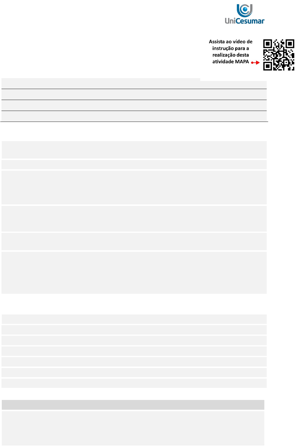 M.A.P.A – Patologia Geral Nome: R.A: Disciplina: Curso: INSTRUÇÕES PARA REALIZAÇÃO DA ATIVIDADE 1. Todos os campos acima (cabeçalho) deverão ser devidamente preenchidos. 2. O(A) aluno(a) deverá utilizar este modelo padrão para realizar a atividade. 3. Esta atividade deverá ser realizada individualmente. Caso identificada cópia indevida de colegas, as atividades de ambos serão zeradas. Também serão zeradas atividades que contiverem partes de cópias da Internet ou livros sem as devidas referências e citações de forma correta. 4. Para realizar esta atividade, leia atentamente as orientações e atente-se ao comando da questão. Procure argumentar de forma clara e objetiva, de acordo com o conteúdo da disciplina. 5. Neste arquivo resposta, coloque apenas as respostas identificadas de acordo com as questões. 6. Após terminar o seu arquivo resposta, salve o documento em PDF e o nomeie identificando a disciplina correspondente, para evitar que envie o MAPA na disciplina errada. Envie o arquivo resposta na página da atividade MAPA, na região inferior no espaço destinado ao envio das atividades. ARQUIVO ÚNICO. FORMATAÇÃO EXIGIDA 1. O documento deverá ser salvo no formato PDF (.pdf). 2. Tamanho da fonte: 12 3. Cor: Automático/Preto. 4. Tipo de letra: Arial. 5. Alinhamento: Justificado. 6. Espaçamento entre linhas de 1.5. 7. Arquivo Único. ATENÇÃO VALOR DA ATIVIDADE: 3.0 Esta atividade deve ser realizada utilizando o formulário abaixo. Apague as informações que estão escritas em vermelho, pois são apenas demonstrações e instruções para te auxiliar, e, posteriormente, preencha todos os campos com suas palavras/imagens. Leia com bastante atenção todas as informações disponibilizadas no campo da atividade no seu Studeo, e depois coloque as repostas para: a) IDENTIFIQUE o tipo de alcalose envolvida no caso clínico apresentado e JUSTIFIQUE a sua resposta. (Apague este texto em vermelho e coloque aqui apenas a sua resposta, de forma clara e objetiva). b) EXPLIQUE o mecanismo de compensação envolvido com a alcalose identificada na letra a. (Apague este texto em vermelho e coloque aqui apenas a sua resposta, de forma clara e objetiva). c) EXPLIQUE o mecanismo de adaptação celular referente a hipotrofia subcutânea e muscular, RELACIONANDO com os dados apresentados no caso clínico. (Apague este texto em vermelho e coloque aqui apenas a sua resposta, de forma clara e objetiva). d) RELACIONE a hipernatremia com a desidratação e oligúria. (Apague este texto em vermelho e coloque aqui apenas a sua resposta, de forma clara e objetiva). e) JUSTIFIQUE a leucocitose e RELACIONE com o aumento na concentração das proteínas PCR e PSA. (Apague este texto em vermelho e coloque aqui apenas a sua resposta, de forma clara e objetiva). REFERÊNCIAS (Apague este texto em vermelho) Insira aqui as referências que você utilizou para responder a este trabalho dentro das normas da ABNT. Você pode assistir ao curso PLÁGIO NÃO ROLA em palestra/Nivelamento/Outros Ambientes. Você também poderá utilizar o manual institucional para elaboração de referências disponível para download em ARQUIVOS GERAIS no menu lateral. (Apague este texto em vermelho) Salvar o arquivo final em PDF antes de enviar. Enviar em arquivo ÚNICO.